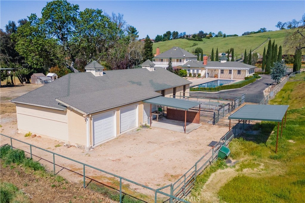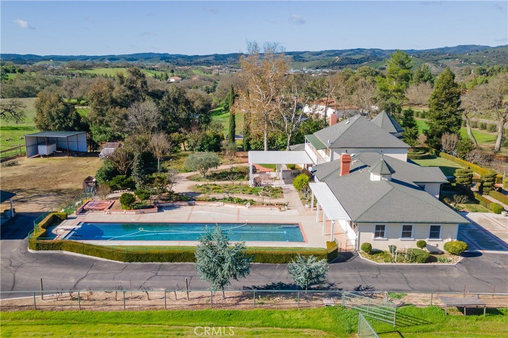 You must see this stunning Country Ranch home with lovely views in each direction in a highly desirable neighborhood. This distinctive Spanish Camp beauty on almost 5 acres is located just outside the city limits of Paso Robles. Nestled in the heart of this prized community you will find more of what your heart seeks than almost anywhere. The 4 bedroom plus office home of 3930 square feet has a primary bedroom and office downstairs plus 3 bedrooms upstairs one of which is en suite. From the marble tiled entry with sweeping staircase to mahogany cabinetry and woodwork throughout this classic home to the Vermont slate floors and native rock wall fireplace, you will be delighted with the attention to detail in this 1988 built home. This horse ready property will delight any equestrian with its 4 stall barn, tack room, and storage garage for an 4 additional vehicles. Steel pipe fencing surrounds the acreage and is used as cross fencing for the pastures. It also encompasses a riding arena of approximately 230 X 100 with a raised viewing stand. This arena would please any ranch or dressage rider. Or perhaps you need a private soccer field? And for those who love a summertime party, the covered patio which overlooks the 75 X 17 lap pool is ready for fun and exercise. The land includes an olive orchard of over 30 trees as well as an organic pomegranate orchard with over 50 bushes. There are raised garden beds, fruit trees and grape vines planted throughout this lovely property. An owned solar system and on demand hot water unit help with utility costs. This property is designed to be lived in, lived on and loved for all it has to offer.So much to see and experience. Homes of this quality rarely hit the market. Now is your chance to buy a property that is ready and waiting to answer your dreams. Call us now to view this dream come true.
