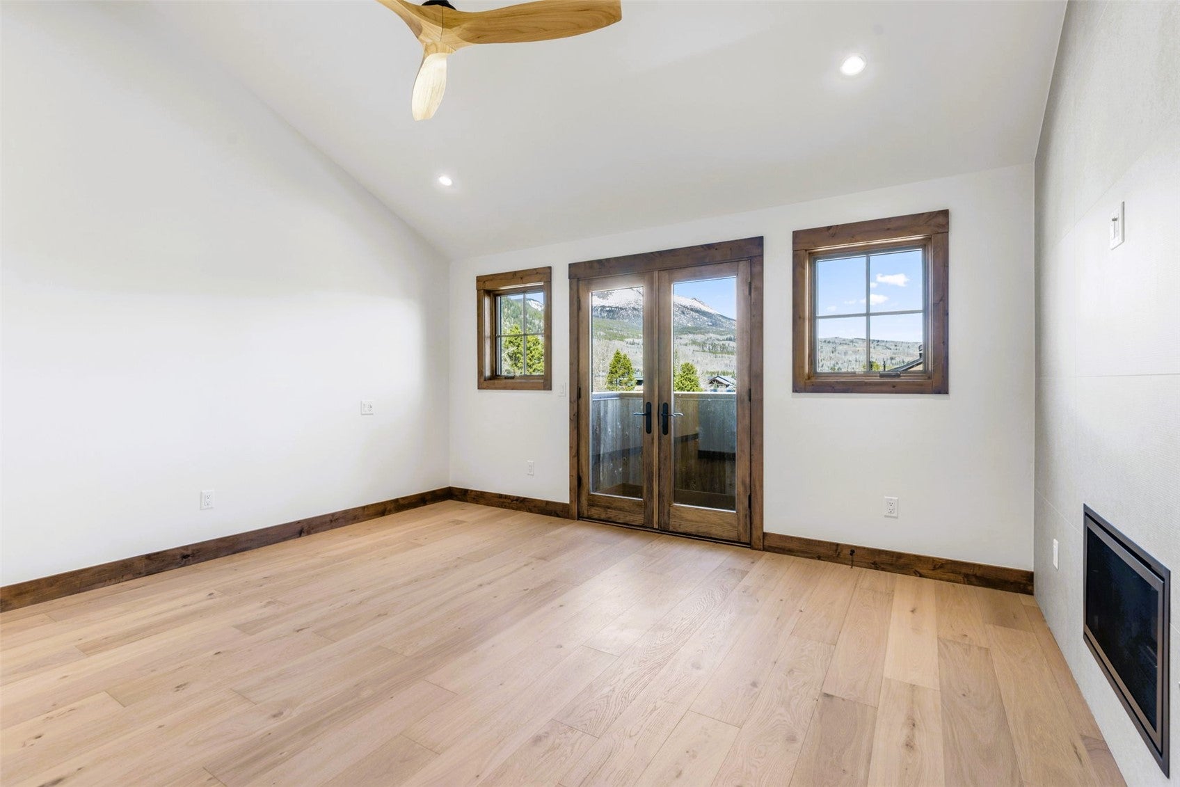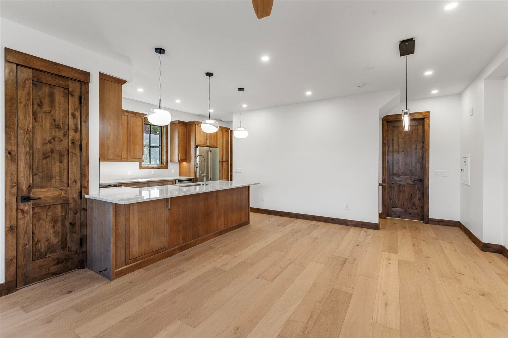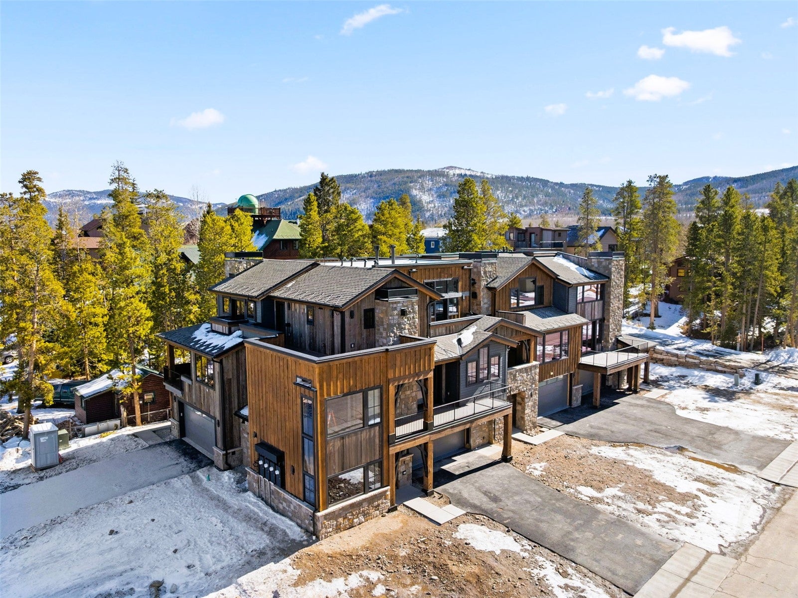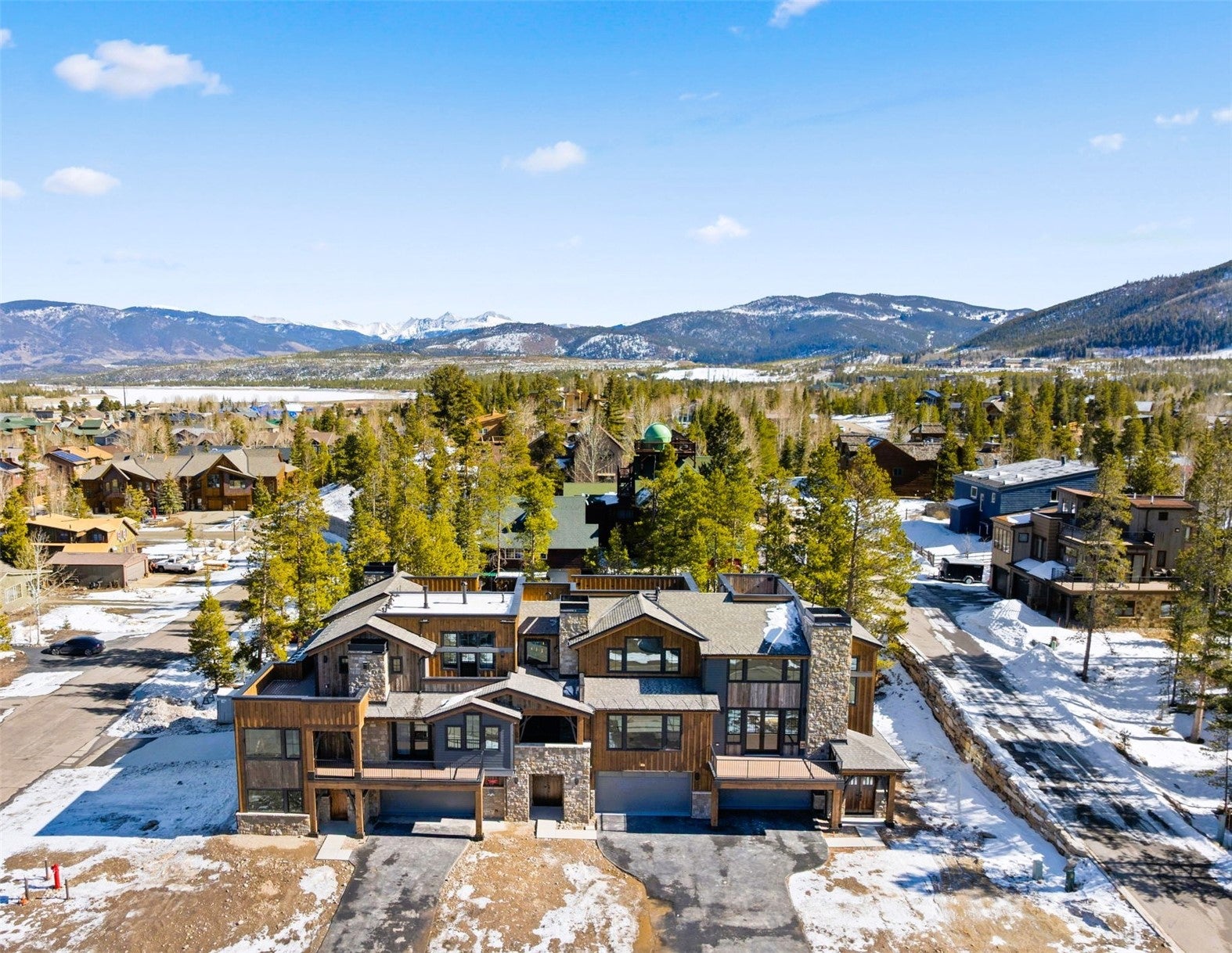 NEW CONSTRUCTION COMPLETE AND READY TO MOVE IN! TWO BLOCKS FROM DOWNTOWN FRISCO, COLORADO. NEW PHOTOS, END UNIT, South side of town close to trails. This exceptional townhome offers beautiful mountain modern finishes, open living area, large primary bedroom with five-piece baths, covered main level deck, roof top deck and two-car heated garage with large driveway for extra parking. Privacy fence installed on the east side of the property. Incredible mountain views from multiple decks, showcasing all the surrounding mountain ranges. The rooftop deck is structurally designed to support a hot tub or firepit. 3 bedrooms, 3 bathrooms, loft (4th bedroom) two laundry locations, stone-surround gas fireplace, and designer tile accents. The primary bedroom features an additional gas fireplace surrounded by designer tile. All units have their own unique tile and light fixture selections, Monogram appliances, hardwood and tile flooring, metal railings, natural stone countertops in the kitchen and primary bath, quartz countertops in secondary bathrooms, pre-wired EV charging station and pre-wired solar hookups. Ideally located just steps from the bike path and trail system, offering easy access for hiking, biking, running, snowshoeing, and backcountry skiing or riding. The free Summit Stage is only 3 blocks away for convenient transportation, and Frisco is just minutes from multiple world-class ski areas. Walk to Main Street and the Frisco Marina for concerts, restaurants, festivals, and more. Homes are energy efficient with HERS Home Energy Ratings and Zero Energy Ready Home (ZERH) certification. Includes a one-year builders warranty from date of closing. Low HOA dues cover all exterior maintenance, roof, landscaping, and snow removal. Townhome platting, you own from the ground to the roof. This unit has a private side entrance with added yard space. Located only 1.5 hours from the Denver Airport. Beautiful Mountain Home. Landscape will begin soon. Must See!