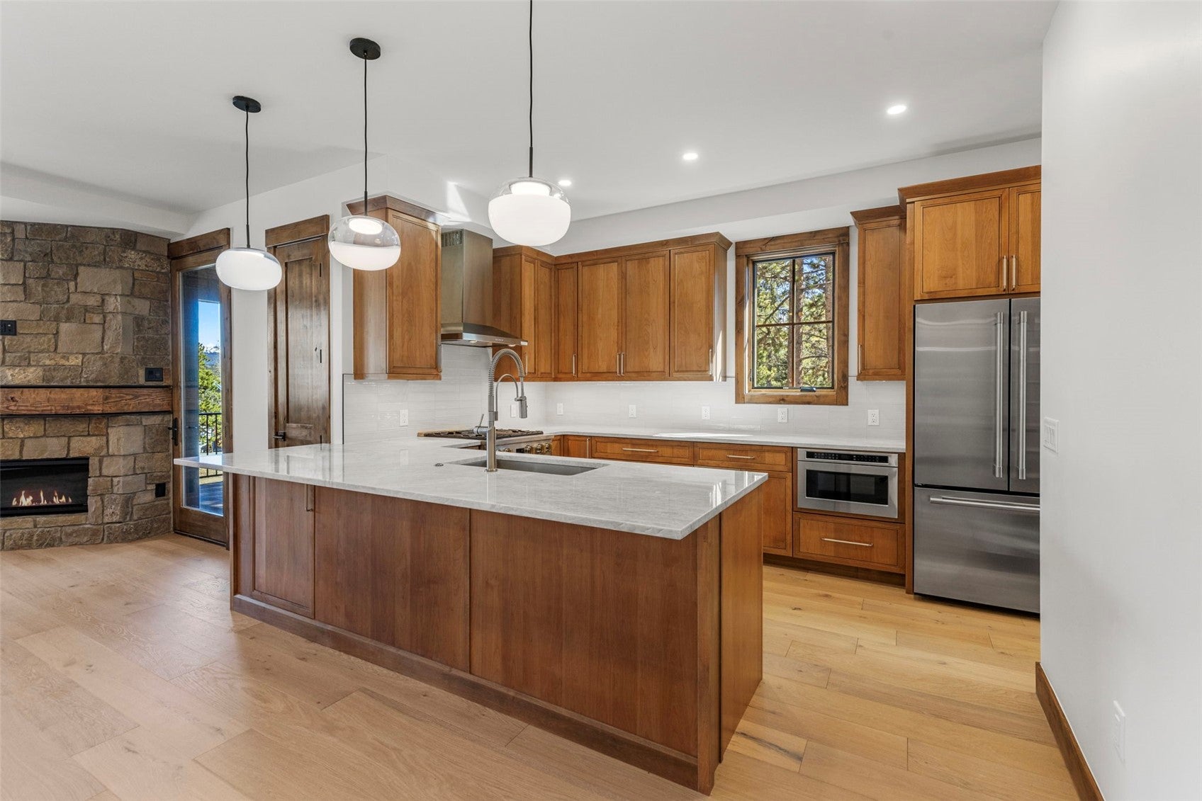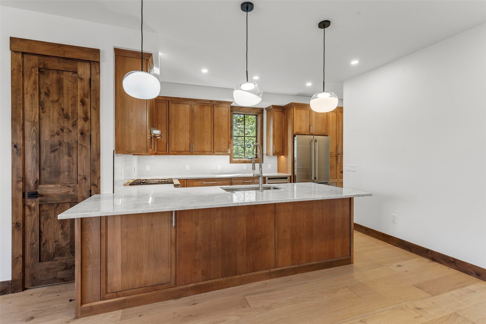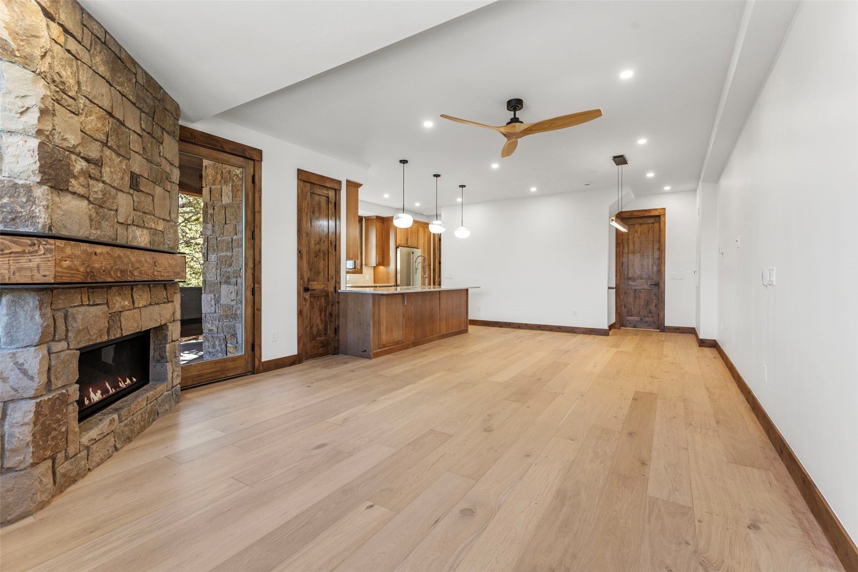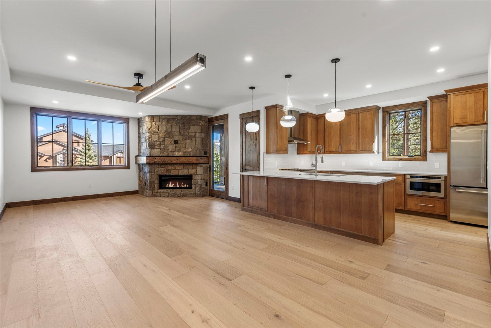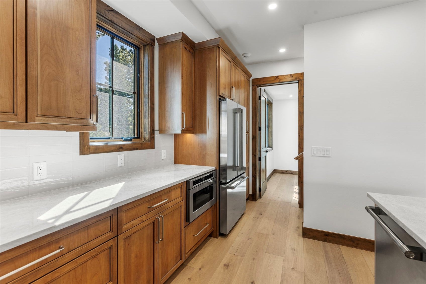 NEW CONSTRUCTION COMPLETE AND READY TO MOVE IN! TWO BLOCKS FROM DOWNTOWN FRISCO, COLORADO. NEW PHOTOS, END UNIT, South side of town close to trails. This exceptional townhome offers beautiful mountain modern finishes, open living area, large primary bedroom with five-piece baths, covered main level deck, roof top deck and two-car heated garage with large driveway for extra parking. Privacy fence installed on the east side of the property. Incredible mountain views from multiple decks, showcasing all the surrounding mountain ranges. The rooftop deck is structurally designed to support a hot tub or firepit. 3 bedrooms, 3 bathrooms, loft (4th bedroom) two laundry locations, stone-surround gas fireplace, and designer tile accents. The primary bedroom features an additional gas fireplace surrounded by designer tile. All units have their own unique tile and light fixture selections, Monogram appliances, hardwood and tile flooring, metal railings, natural stone countertops in the kitchen and primary bath, quartz countertops in secondary bathrooms, pre-wired EV charging station and pre-wired solar hookups. Ideally located just steps from the bike path and trail system, offering easy access for hiking, biking, running, snowshoeing, and backcountry skiing or riding. The free Summit Stage is only 3 blocks away for convenient transportation, and Frisco is just minutes from multiple world-class ski areas. Walk to Main Street and the Frisco Marina for concerts, restaurants, festivals, and more. Homes are energy efficient with HERS Home Energy Ratings and Zero Energy Ready Home (ZERH) certification. Includes a one-year builders warranty from date of closing. Low HOA dues cover all exterior maintenance, roof, landscaping, and snow removal. Townhome platting, you own from the ground to the roof. This unit has a private side entrance with added yard space. Located only 1.5 hours from the Denver Airport. Beautiful Mountain Home. Landscape will begin soon. Must See!