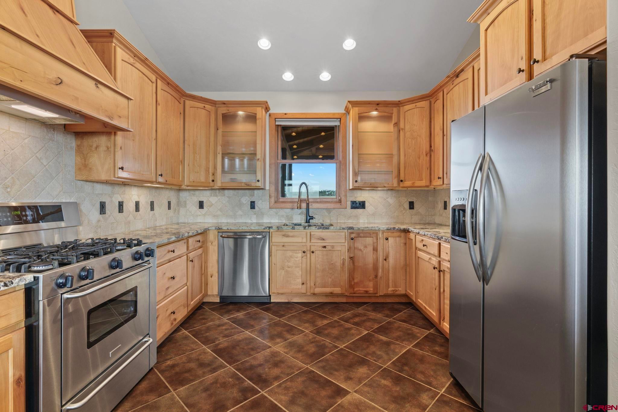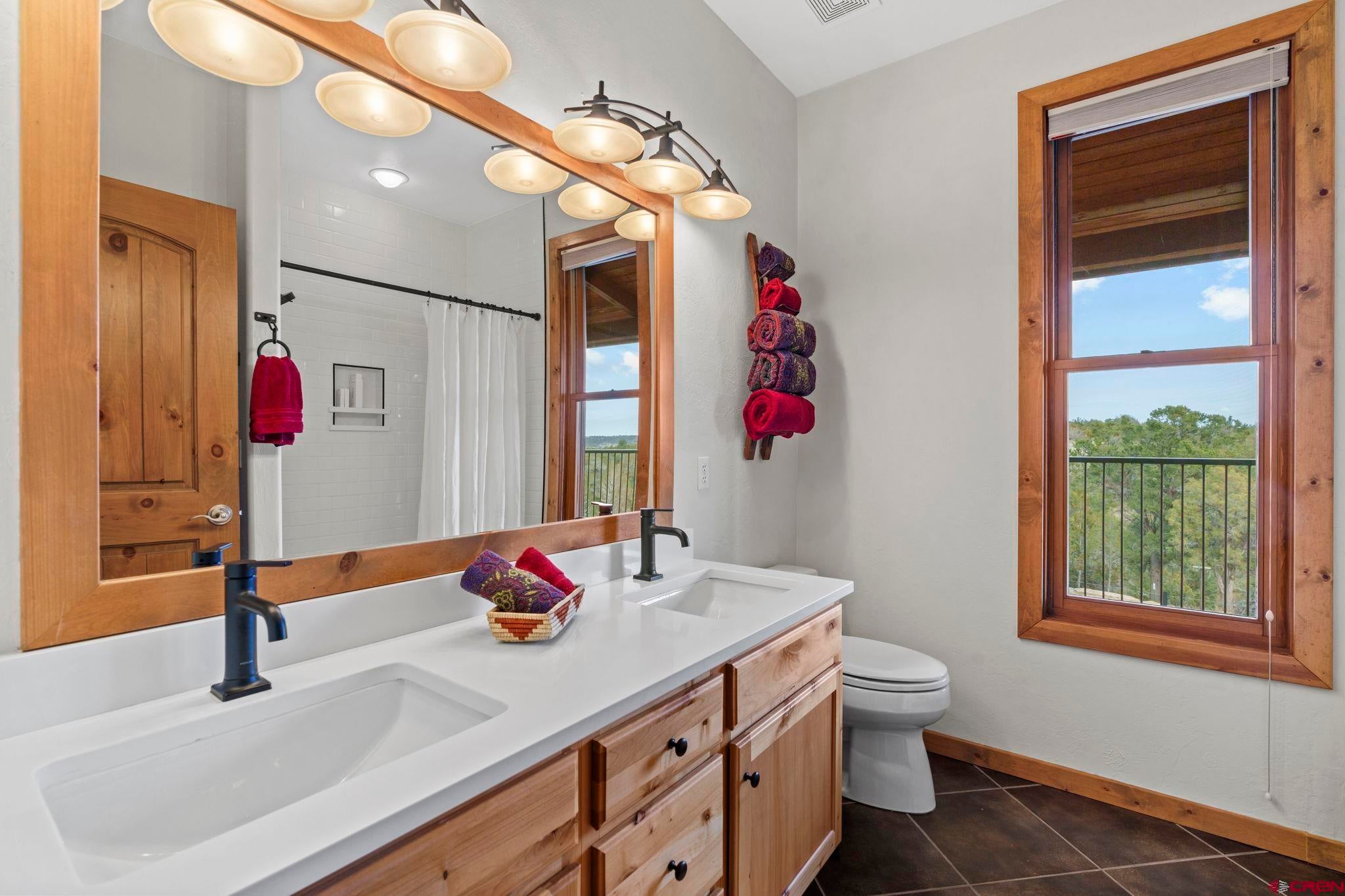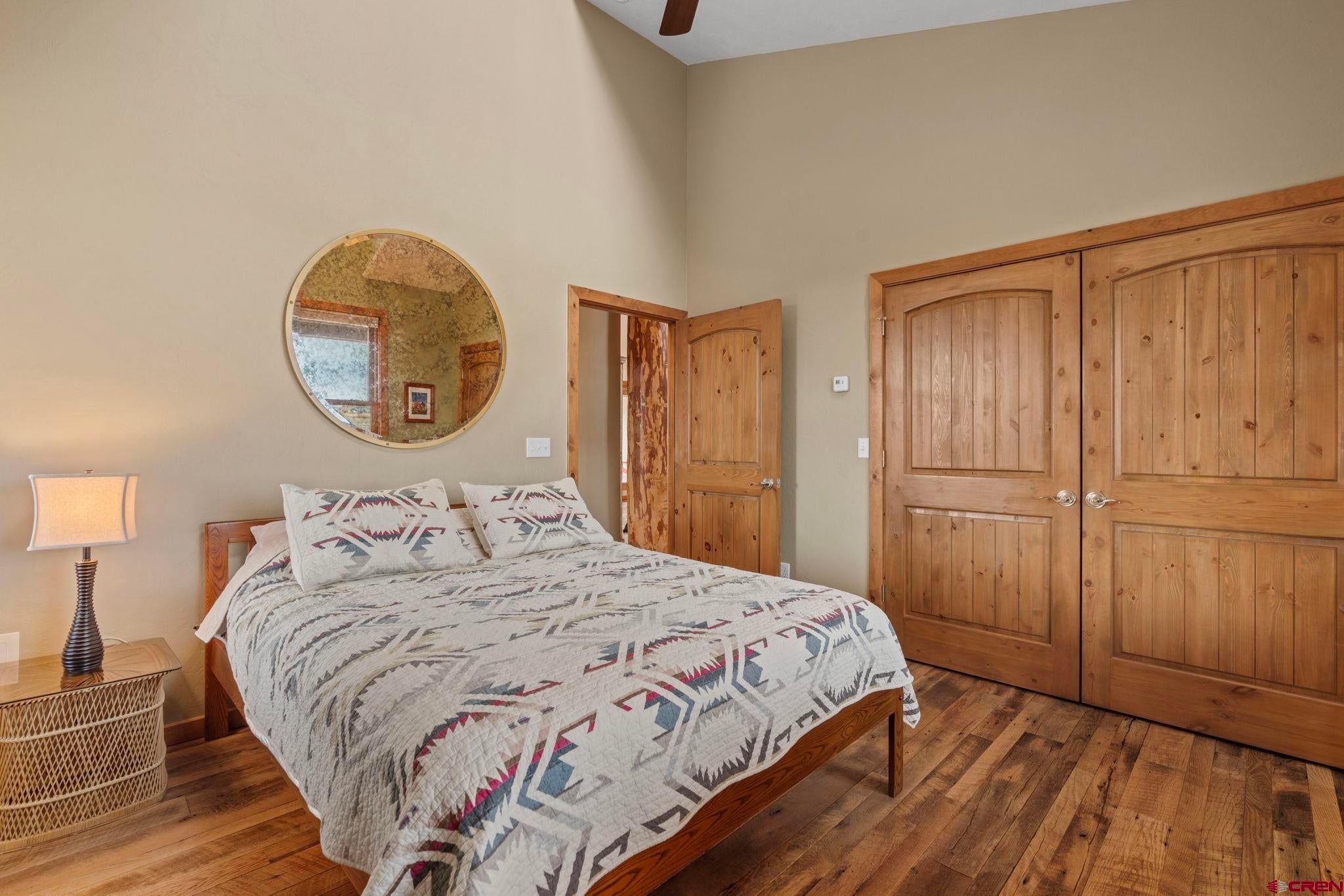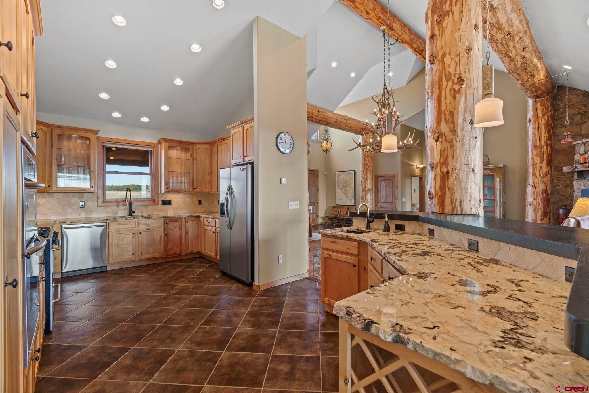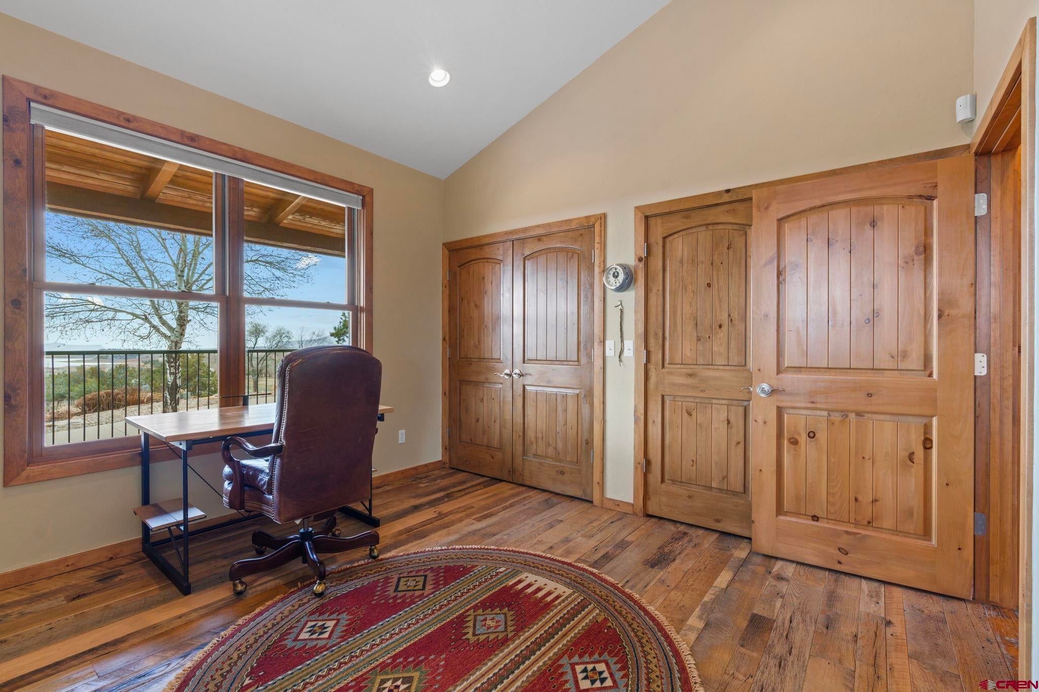 Colorado ranchers paradise on 172 breathtaking acres overlooking Narraguinnep Reservoir. This custom-built, recently updated single-level home offers 3 bedrooms, 2 baths, and 2,733 square feet of refined mountain living. Framed by Mesa Verde, Sleeping Ute, and the La Plata Mountains, the property delivers exceptional privacy, valuable water features, functional ranch infrastructure, and borders 897 acres of public land. A 1,385-square-foot wraparound deck embraces much of the homean ideal setting for sunrise coffee and unforgettable Southwest sunsets. Inside, rustic elegance defines the open living room with reclaimed barn wood floors, exposed Douglas fir beams, soaring cathedral ceilings, and a dramatic moss rock fireplace with pellet stove insert. Expansive windows capture panoramic mountain views. The gourmet kitchen features stainless steel appliances, new granite countertops, updated tile and cabinetry, a walk-in pantry, an island with prep sink, and a generous laundry/mudroom designed for everyday ranch life. The primary suite is privately positioned apart from two additional bedrooms and a full bath, providing ideal separation for family or guests. Both the primary bedroom and the charming dining nook open directly to the covered back porch for effortless indoor-outdoor living. Recent improvements include remodeled bathrooms, fresh interior paint, new wood flooring in the bedrooms, new carpet, a new garage door, and updated stucco siding with exterior stain. Ranch amenities include a livestock shelter and holding pen, large hay barn, workshop, fenced and cross-fenced pastures, two ponds, a year-round live spring, improved internal road system, designated riding arena site with panels included (not installed), and a full RV pad with hookups or potential space for future guest quarters. Rolling meadows dotted with pion, juniper, and cedar complete this extraordinary propertyrich with wildlife and classic Southwest Colorado beauty.