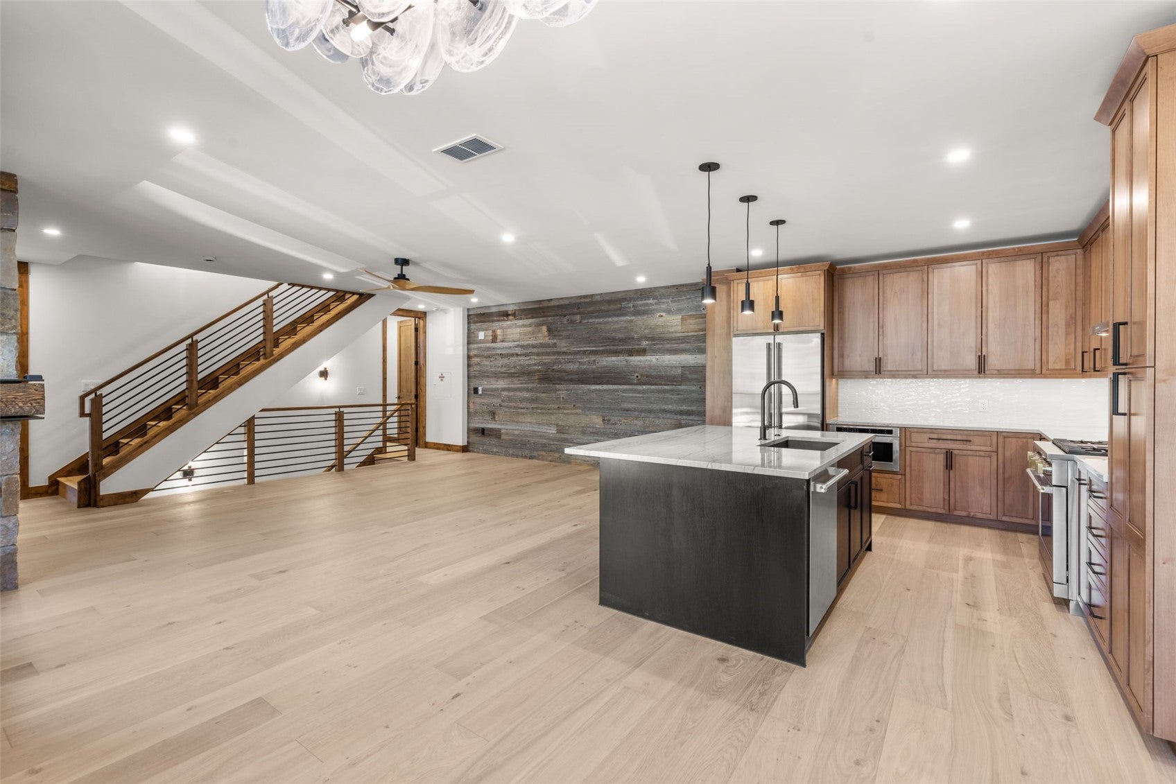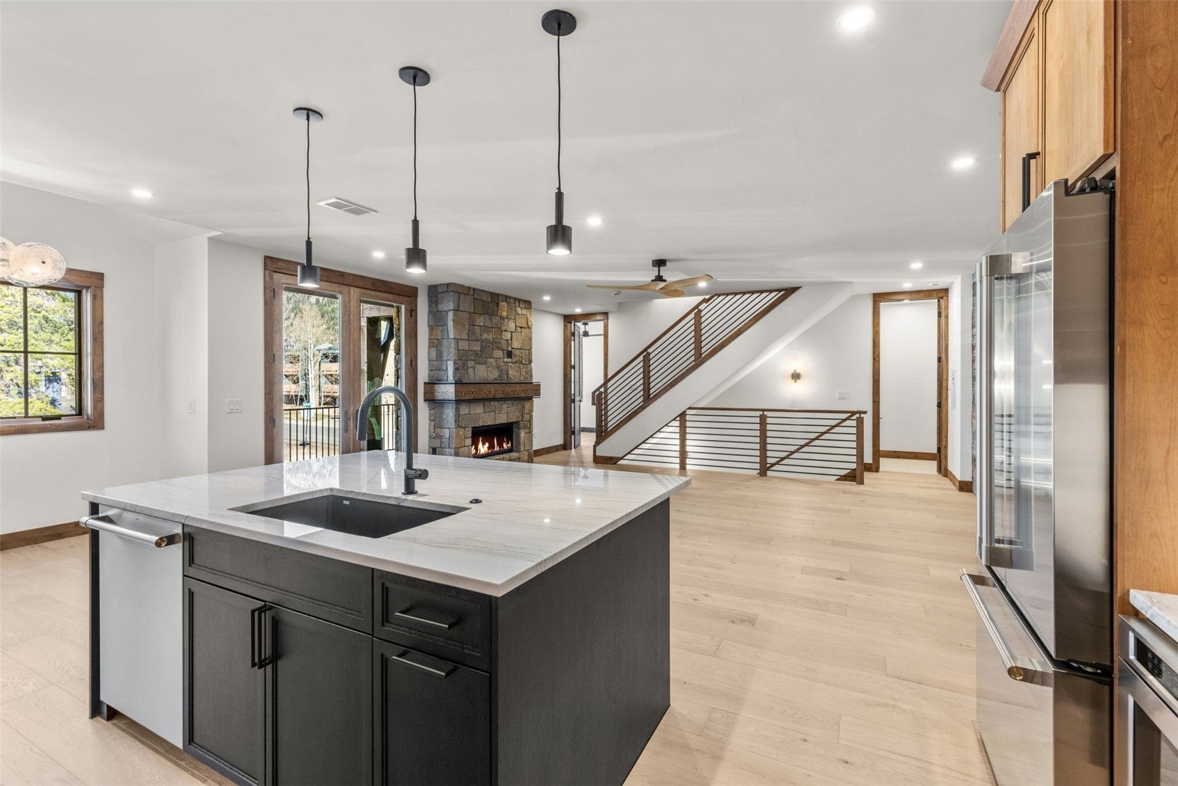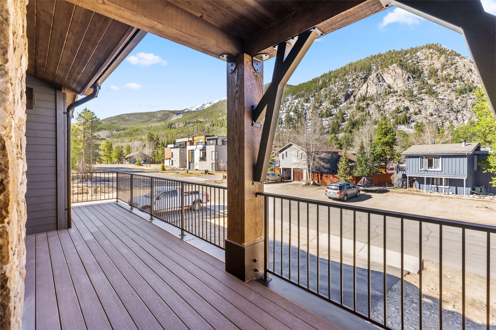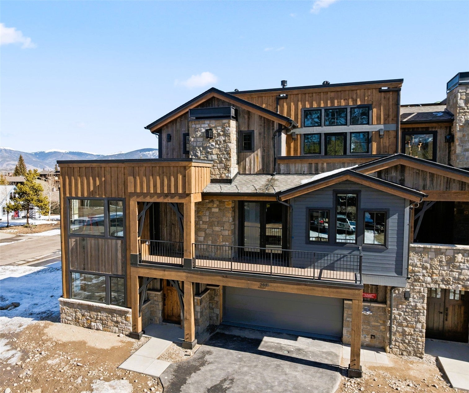 COMPLETE - NEW CONSTRUCTION IN THE HEART OF FRISCO! NEW PHOTOS - located just two blocks from Main Street on the south side of town. This exceptional townhome offers beautiful mountain modern finishes, a spacious open living area, large primary bedroom with five-piece bath, and two-car garage. Incredible mountain views from multiple decks, showcasing all the surrounding mountain ranges. The top deck is structurally designed to support a hot tub. 3 bedrooms, 3 bathrooms, powder room, two laundry locations, stone-surround gas fireplace, and barnwood accents. The primary bedroom features an additional gas fireplace surrounded by reclaimed barnwood. All units have their own unique tile and light fixture selections, Monogram appliances, hardwood and tile flooring, metal railings, natural stone countertops in the kitchen and primary bath, quartz countertops in secondary bathrooms, pre-wired EV charging station and pre-wired solar hookups. Ideally located just steps from the bike path and trail system, offering easy access for hiking, biking, running, snowshoeing, and backcountry skiing or riding. The free Summit Stage is only three blocks away for convenient transportation, and Frisco is just minutes from multiple world-class ski areas. Walk to Main Street and the Frisco Marina for concerts, restaurants, festivals, and more. Homes are energy efficient with HERS Home Energy Ratings and Zero Energy Ready Home (ZERH) certification. Includes a one-year builders warranty from date of closing. Low HOA dues cover all exterior maintenance, roof, landscaping, and snow removal. Townhome platting, you own from the ground to the roof. Located only an hour and half from the Denver Airport. Beautiful Mountain Home. Come and See! Landscaping will be complete soon. Landscape plan in attachments.