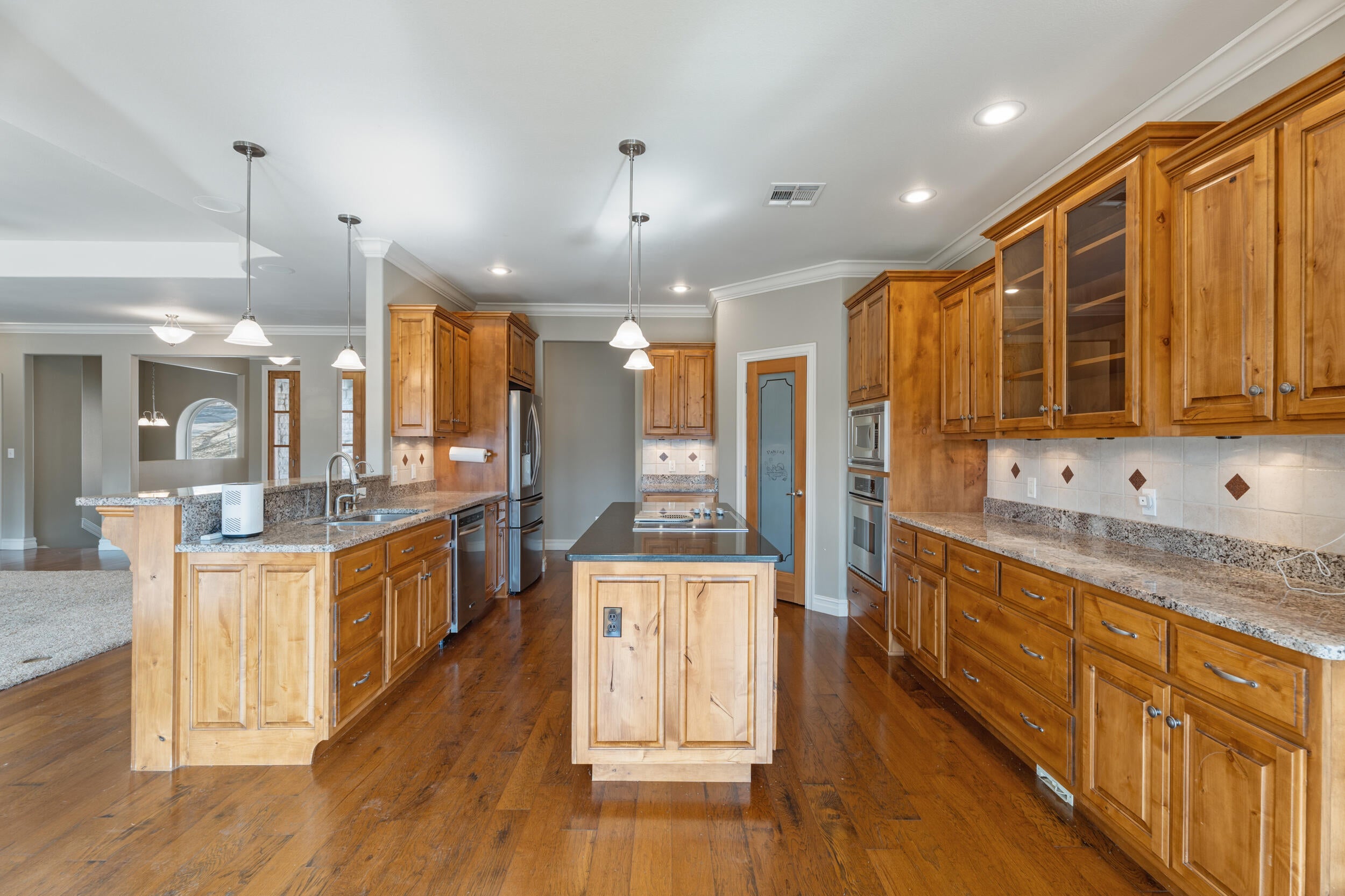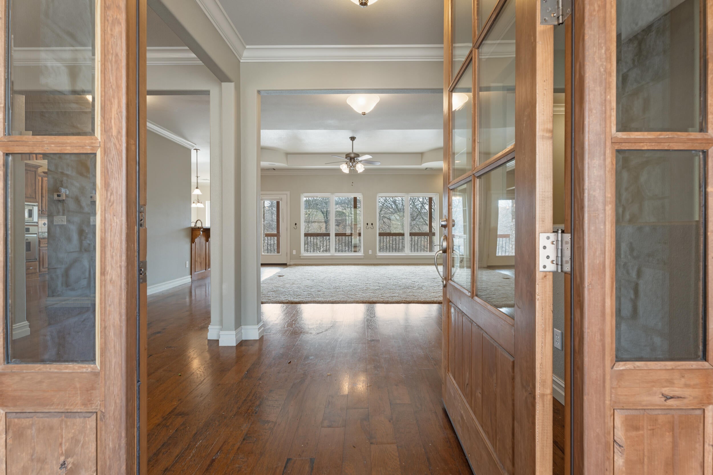 Welcome to your dream lake retreat in Governors Retreat on Grand Lake of the Cherokees. Perfectly positioned in a great cove with calm waters & just a short boat ride to Shangri-La Resort, this 4,092 sq ft two-level luxury waterfront home sits on two lots & is designed for unforgettable entertaining, investment potential, & multi-generational living.With 5 bedrooms, 5 baths, & 2 spacious living areas, this home offers room for everyone while still feeling warm & inviting. Soaring ceilings, crown molding, freshly painted walls, & expansive windows frame stunning lake views from nearly every angle. The luxury kitchen is built to impress, while the lower level features a second kitchen complete with a butlers bar & wine cooler, making hosting effortless. The primary suite is a true retreat with new carpet, a spa-inspired bath, & a generous walk-in closet. Additional features include a fireplace, safe room, & heated driveway for year-round comfort & peace of mind.Step outside to enjoy the new covered double-deck patio overlooking the water, a fire pit at the shoreline for evening gatherings, & breathtaking sunsets across the cove. The large 2-slip dock includes boat lifts & automatic covers, ready for your lake toys. A separate 3-car garage with apartment, golf cart bay, & extra storage provides flexibility for guests, rental income, or extended family.This is more than a lake house, it is a lifestyle. Whether you are looking for a luxury personal getaway, a investment opportunity, or a place to create lasting family memories, this Grand Lake waterfront gem checks every box!
