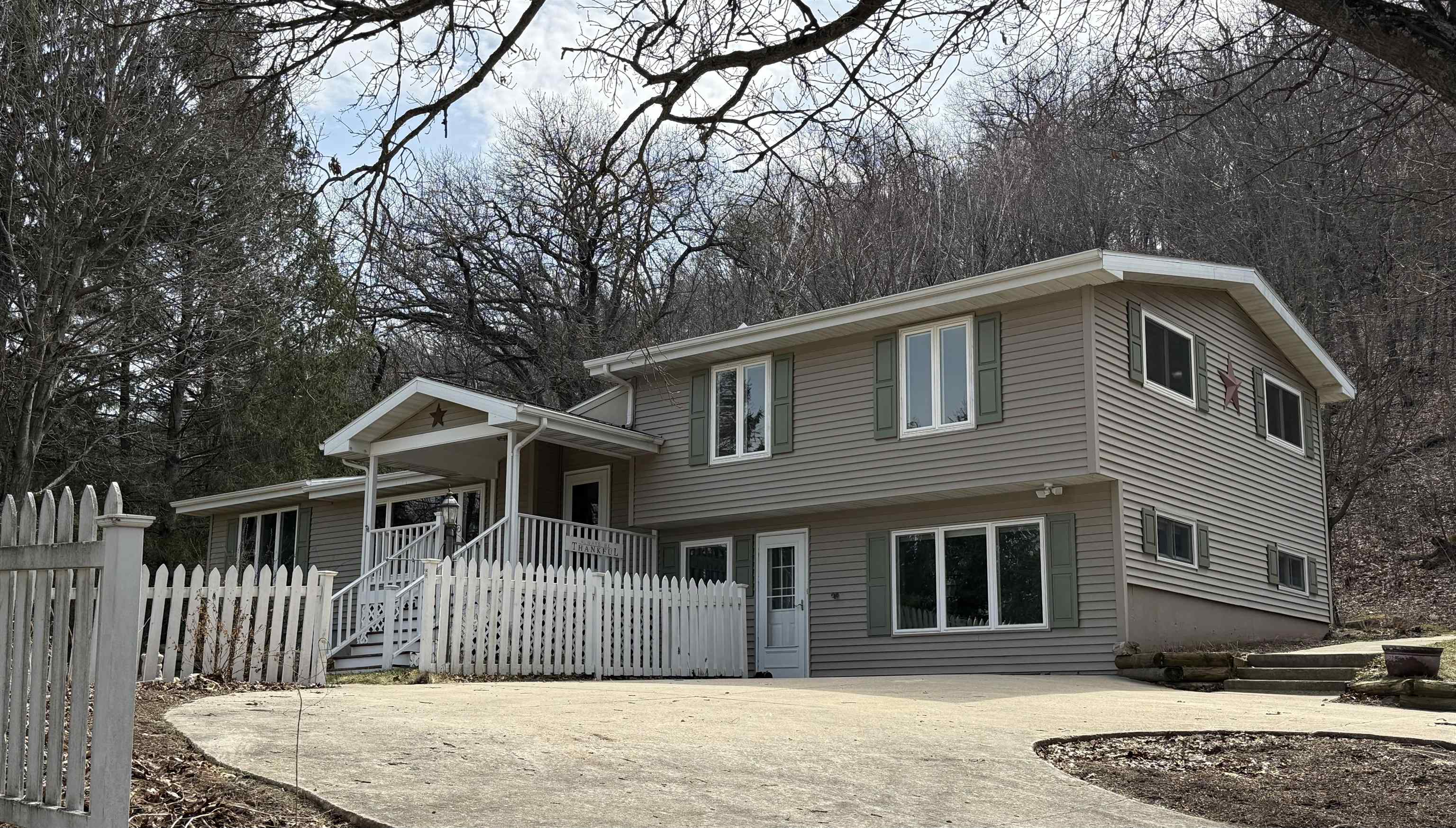 Very nice home tucked away on 24.8 acres at the base of a wooded hillside. Scenic trails wind throughout the property, leading to breathtaking views of the Wisconsin River Valley from the top. This 3-bedroom, 3-bath home offers inviting main-floor living spaces filled with abundant natural light.