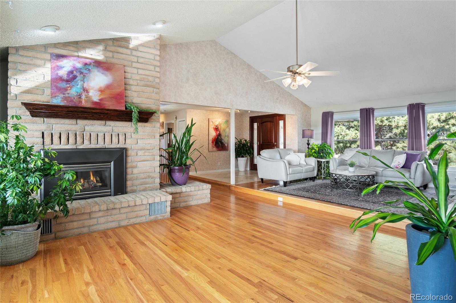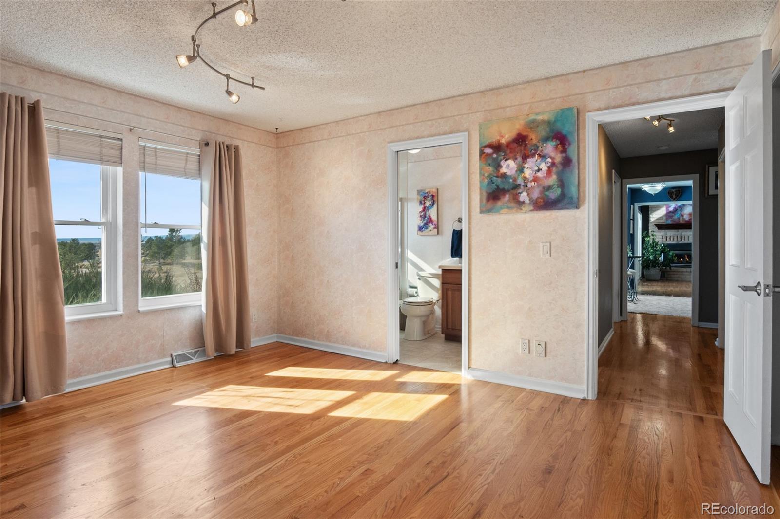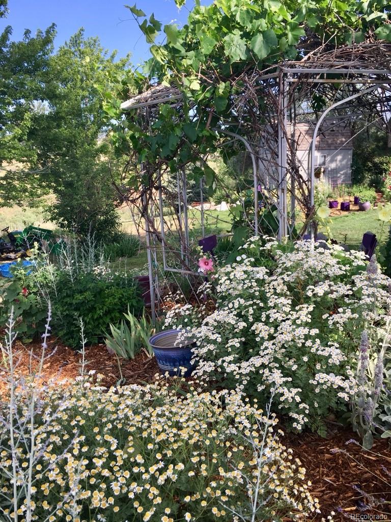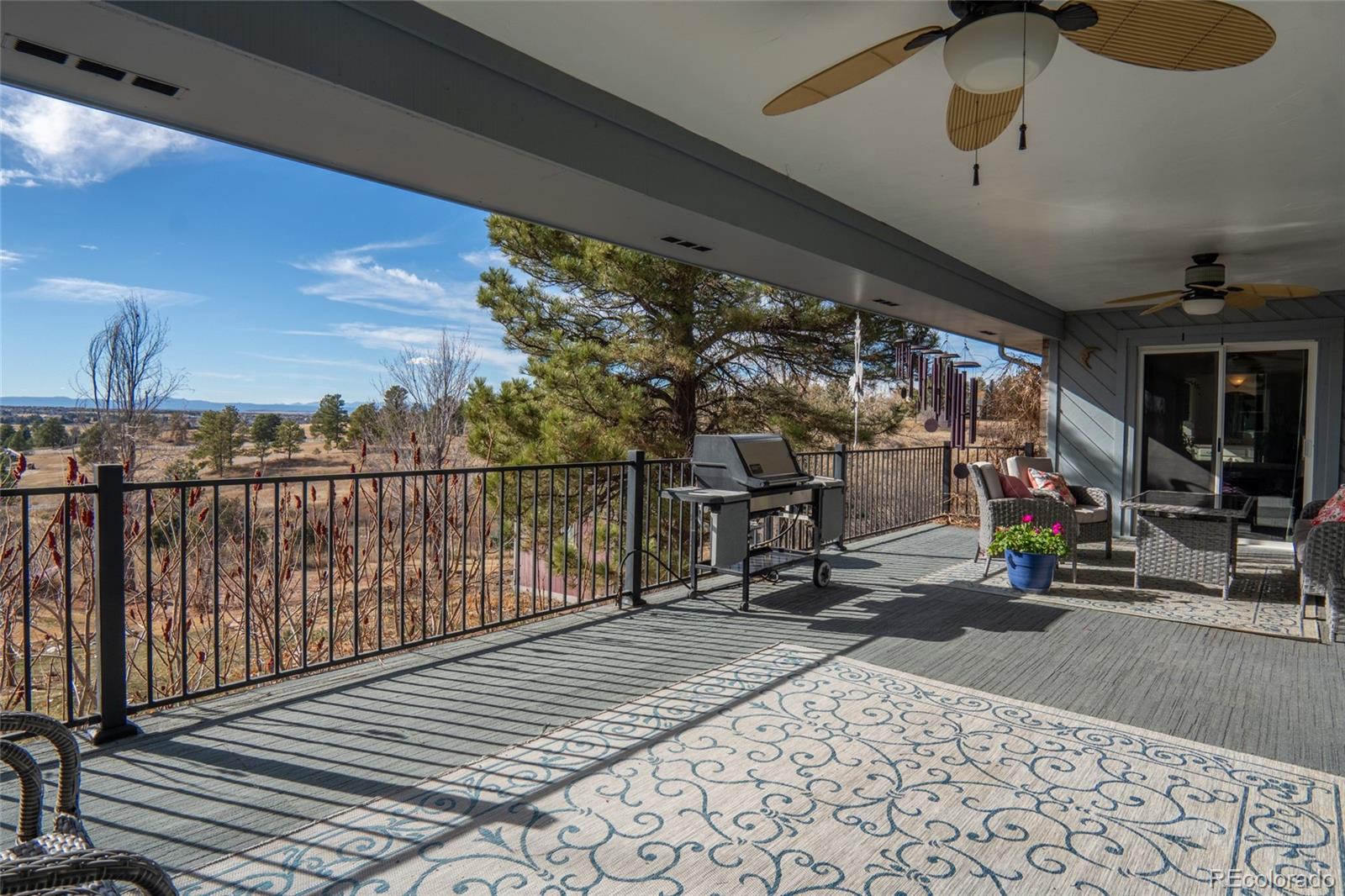 Nestled on almost 5 acres, beautifully landscaped with unobstructed views of Pikes Peak, this gorgeous brick ranch-style home offers the perfect blend of luxury, comfort, and country charm. Surrounded by mature pine trees and open meadowland, the property provides privacy, tranquility, and breathtaking Colorado sunsetsall just minutes from town amenities. Boasting 5108 square feet of living space, this spacious home features five bedrooms and four full baths. The inviting main level showcases high ceilings, gleaming hardwood floors, expansive windows, and a cozy fireplace that anchors the main living area. The open-concept living and dining spaces are ideal for entertaining, while the chefs kitchen is equipped with premium appliances, abundant custom cabinetry, and generous workspace. The luxurious main-level primary suite offers a double-door entry, private balcony, and stunning mountain views. The spa-inspired five-piece ensuite features a bay window and is filled with natural light, creating a bright and relaxing retreat. A convenient main-floor laundry room adds everyday functionality. The finished walk-out basement offers exceptional versatility, complete with two additional bedrooms, a full bath, a second fireplace, its own laundry room, a separate entrance, and a full kitchenmaking it ideal for multi-generational living or extended guests. Step outside to a private covered patio, creating an additional outdoor living space perfect for relaxing or entertaining while enjoying the peaceful surroundings. Outside, the beautifully landscaped acreage features mature trees, vibrant flower gardens, a charming grape-covered gazebo, and a 10-foot privacy fence. Zoned for horses and surrounded by neighboring acreage protected from development, this property preserves its serene rural setting while offering modern comforts and energy efficiency with new solar panels (2025).