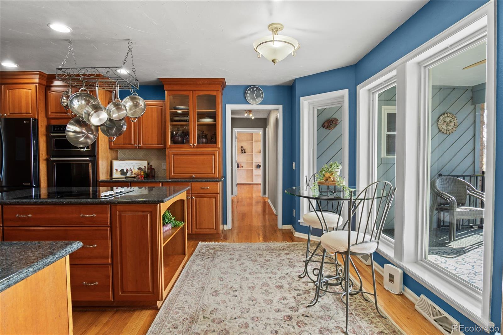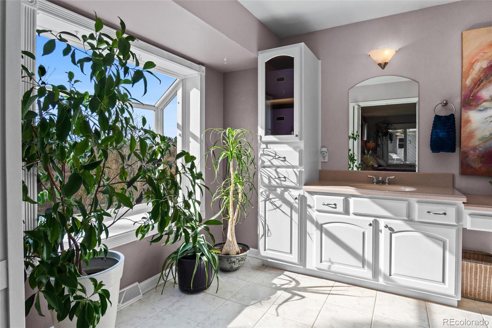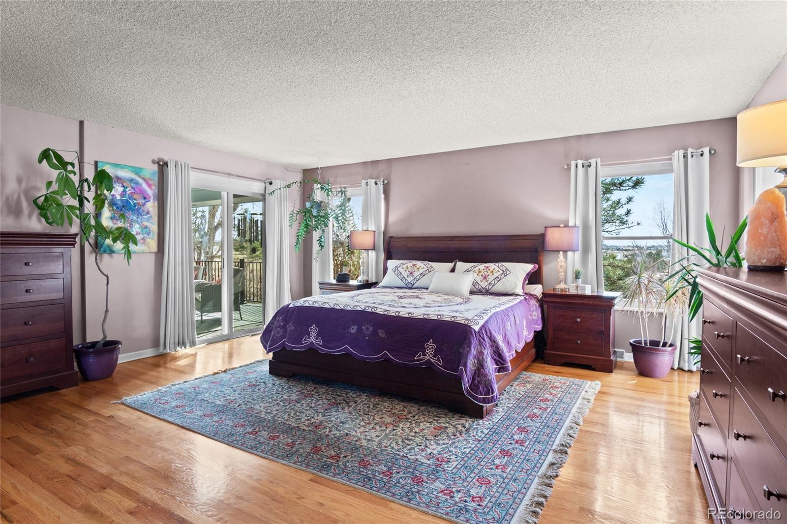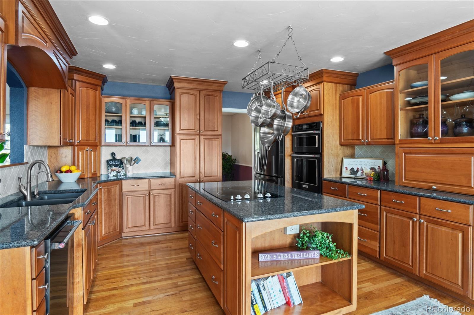 Nestled on almost 5 acres, beautifully landscaped with unobstructed views of Pikes Peak, this gorgeous brick ranch-style home offers the perfect blend of luxury, comfort, and country charm. Surrounded by mature pine trees and open meadowland, the property provides privacy, tranquility, and breathtaking Colorado sunsetsall just minutes from town amenities. Boasting 5108 square feet of living space, this spacious home features five bedrooms and four full baths. The inviting main level showcases high ceilings, gleaming hardwood floors, expansive windows, and a cozy fireplace that anchors the main living area. The open-concept living and dining spaces are ideal for entertaining, while the chefs kitchen is equipped with premium appliances, abundant custom cabinetry, and generous workspace. The luxurious main-level primary suite offers a double-door entry, private balcony, and stunning mountain views. The spa-inspired five-piece ensuite features a bay window and is filled with natural light, creating a bright and relaxing retreat. A convenient main-floor laundry room adds everyday functionality. The finished walk-out basement offers exceptional versatility, complete with two additional bedrooms, a full bath, a second fireplace, its own laundry room, a separate entrance, and a full kitchenmaking it ideal for multi-generational living or extended guests. Step outside to a private covered patio, creating an additional outdoor living space perfect for relaxing or entertaining while enjoying the peaceful surroundings. Outside, the beautifully landscaped acreage features mature trees, vibrant flower gardens, a charming grape-covered gazebo, and a 10-foot privacy fence. Zoned for horses and surrounded by neighboring acreage protected from development, this property preserves its serene rural setting while offering modern comforts and energy efficiency with new solar panels (2025).