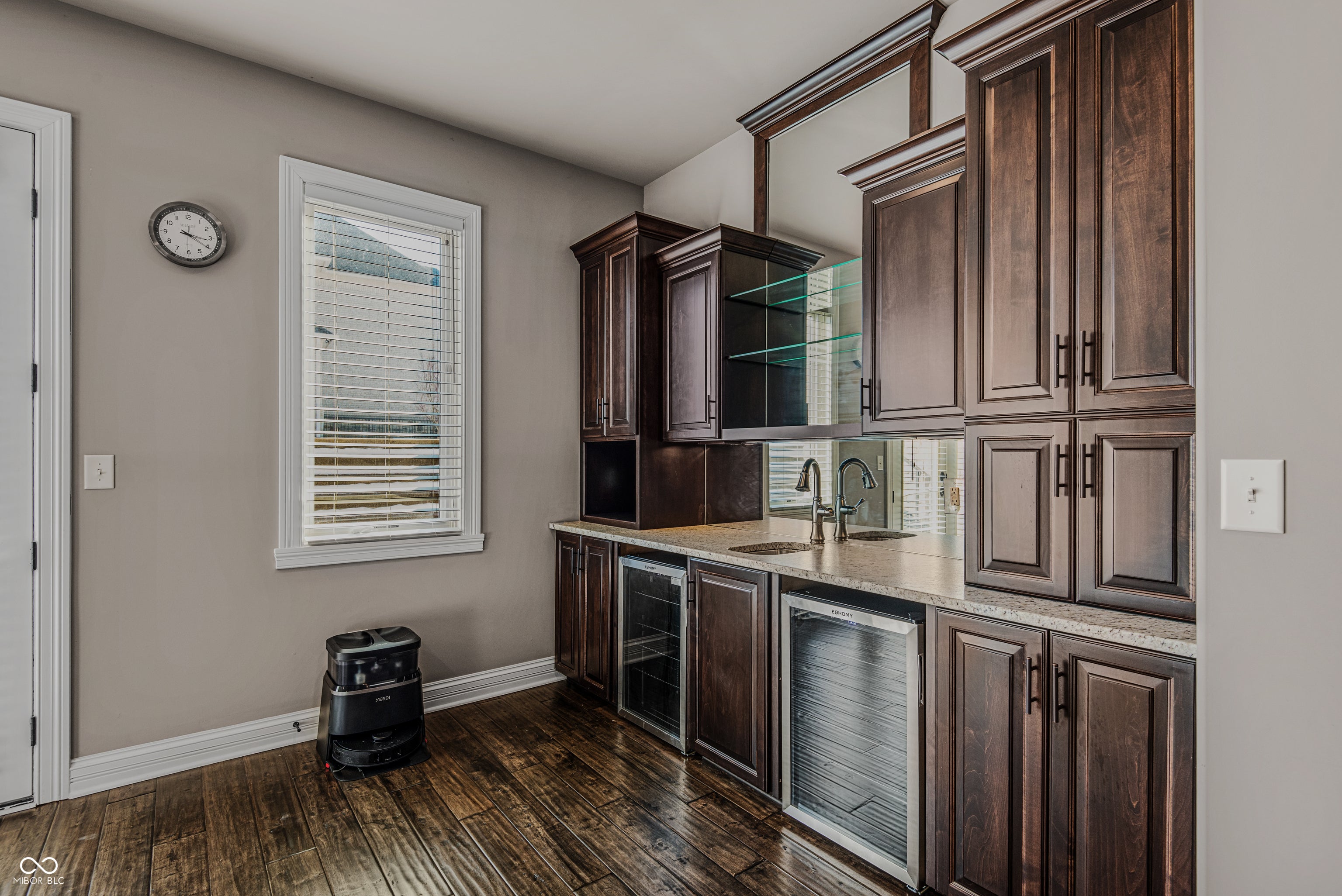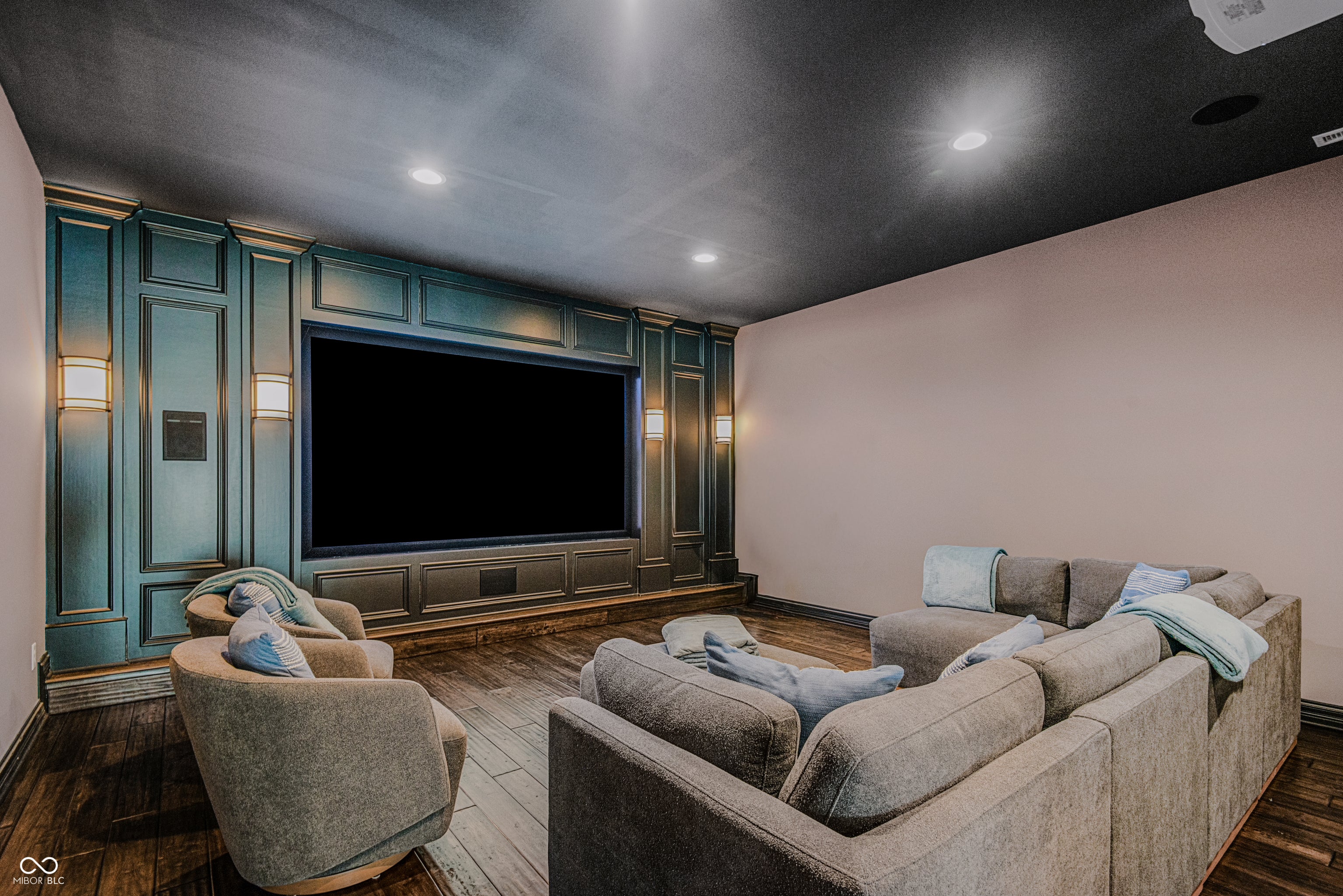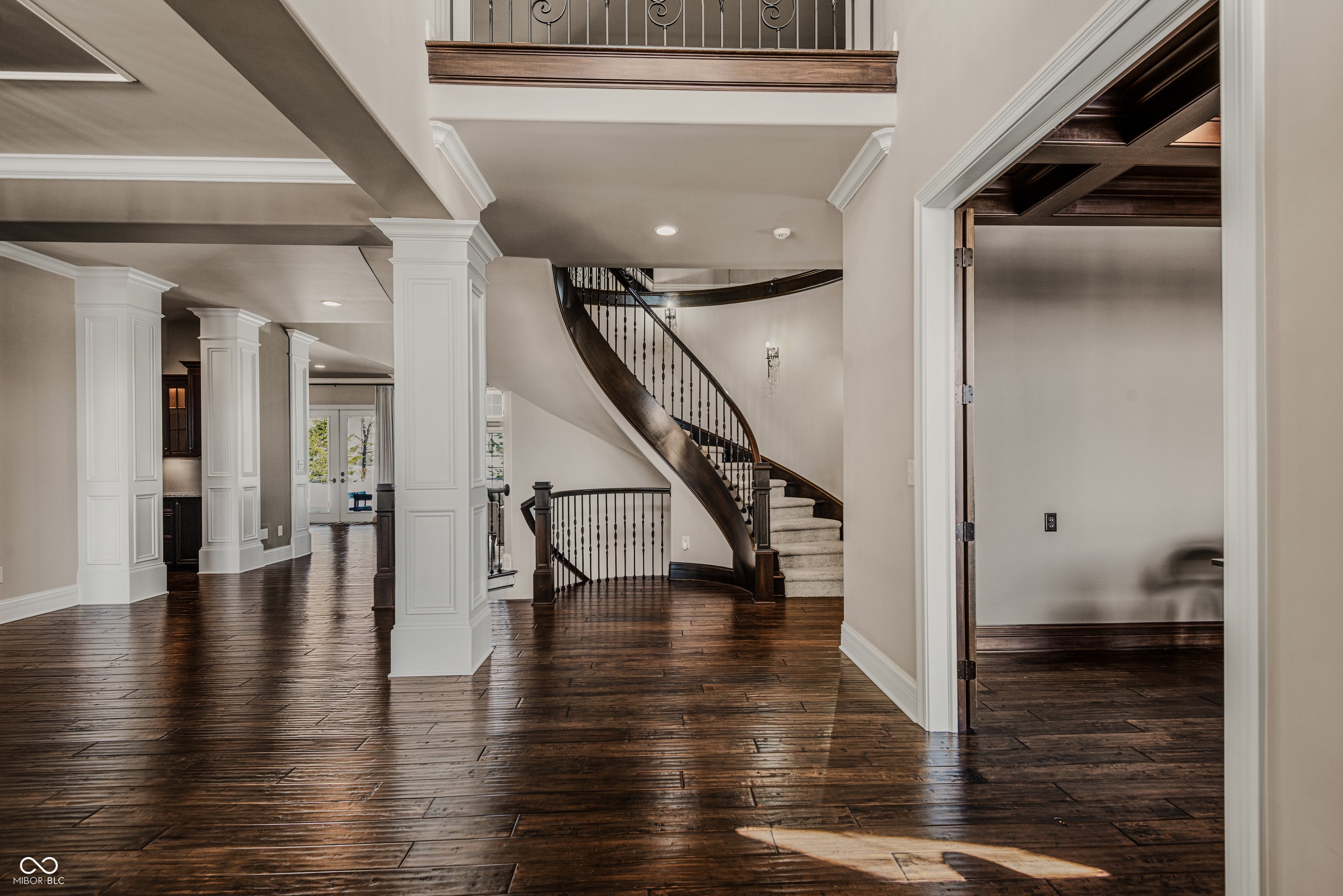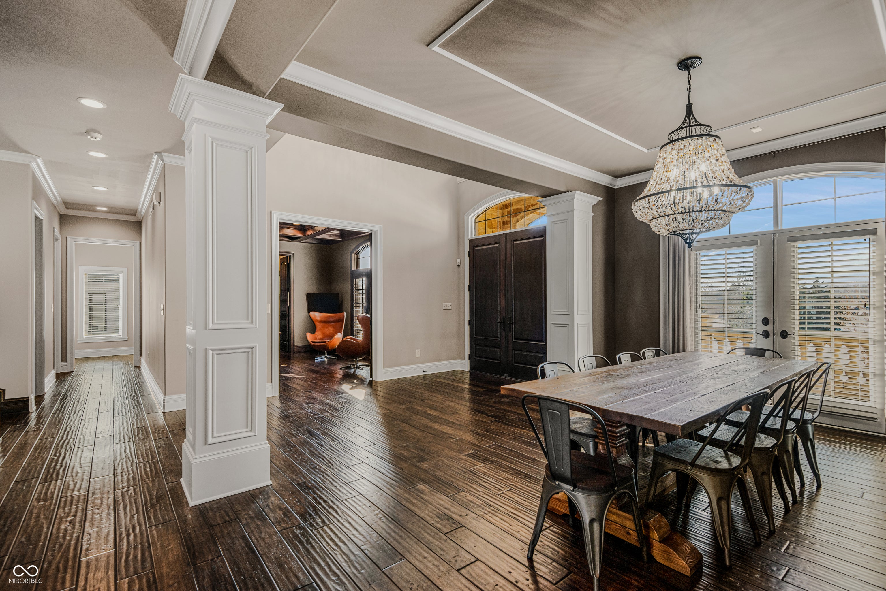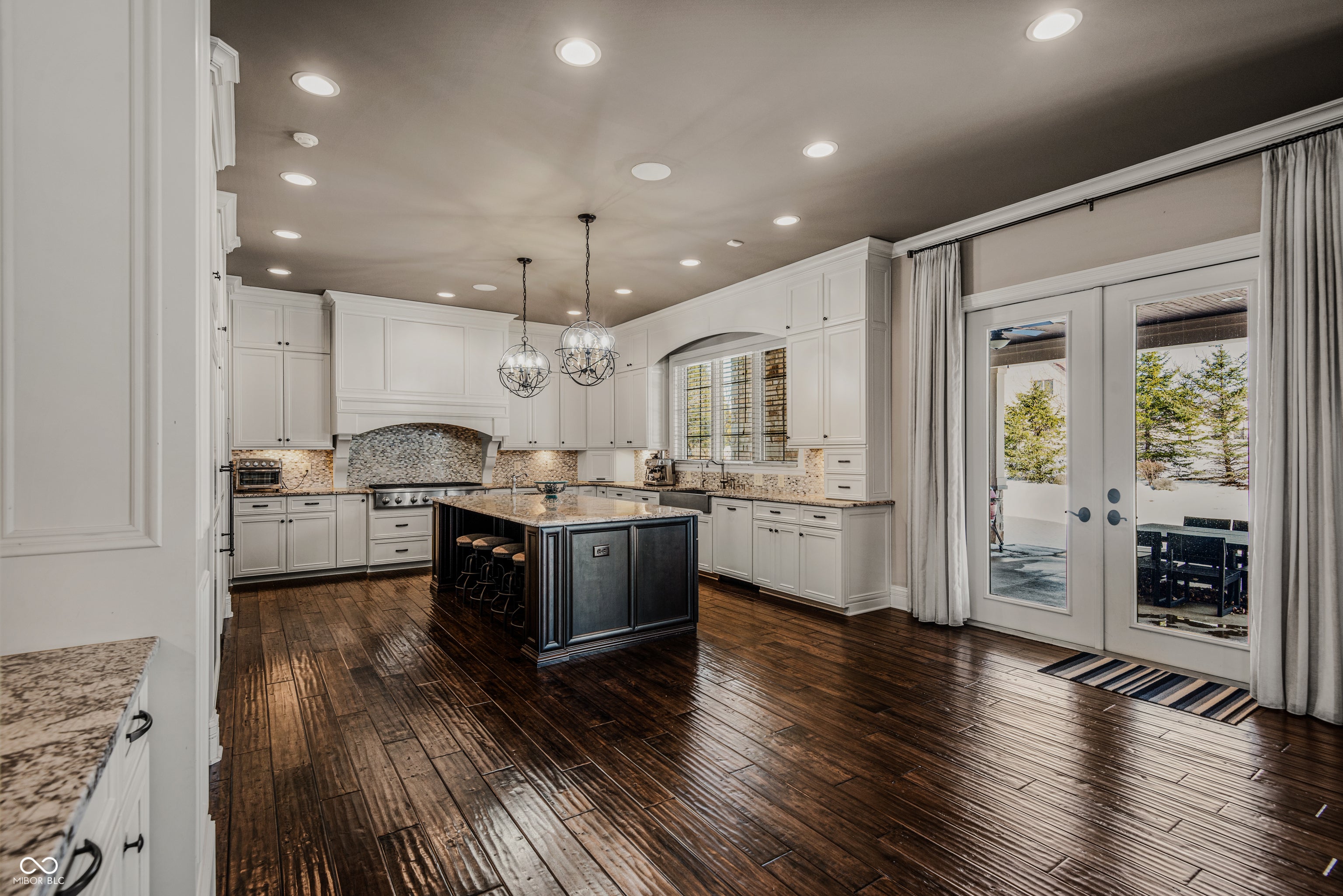 Stunning Custom-Built Estate in Tipton Lakes. Experience timeless elegance blended with modern innovation in this exceptional custom residence located in the prestigious Tipton Lakes community. Spanning approximately 9,000 square feet, this remarkable home combines classic architectural detail with advanced smart-home technology, creating a refined yet highly functional living environment. A grand foyer welcomes you with a sweeping staircase that introduces the craftsmanship and custom finishes found throughout. The sunlit family room features a dramatic two-story cathedral ceiling with exposed beams and flows seamlessly into the gourmet kitchen. Designed for both beauty and performance, the kitchen offers custom Amish cabinetry, a generous center island, granite countertops, GE Monogram appliances, and custom wall refrigerators, ideal for everyday living and effortless entertaining. The formal dining room provides an elegant setting for memorable gatherings. The main level also includes a walk-in pantry, butlers pantry, mudroom, powder room, and a private guest suite. A dedicated office offers flexibility for work or quiet retreat. Upstairs, the primary suite serves as a true sanctuary with a sitting area, custom walk-in closet, and spa-inspired bath featuring heated floors and a luxurious shower. Two additional ensuite bedrooms with walk-in closets, a guest room or playroom, and a conveniently located laundry room complete the upper level. The lower level is designed for recreation and relaxation, showcasing a theater room, billiards area, spacious rec room, fitness room, bonus room, and guest suite. Outdoor living is equally inviting with a covered patio, cozy fireplace, and built-in gas stovetop for year-round enjoyment. An oversized garage with epoxy flooring, additional washer and dryer hookup, and abundant storage enhances the thoughtful layout. This estate is more than a home; it is a lifestyle defined by comfort, quality, and exceptional craftsmanship.