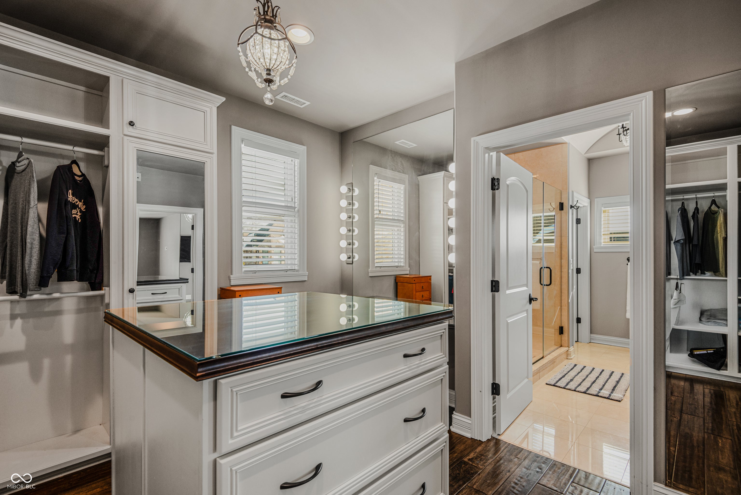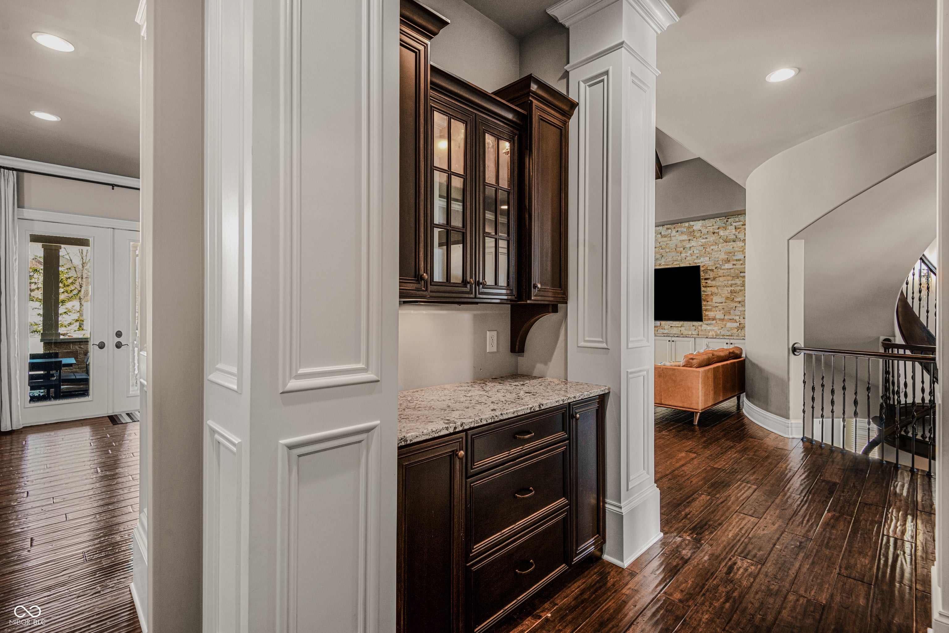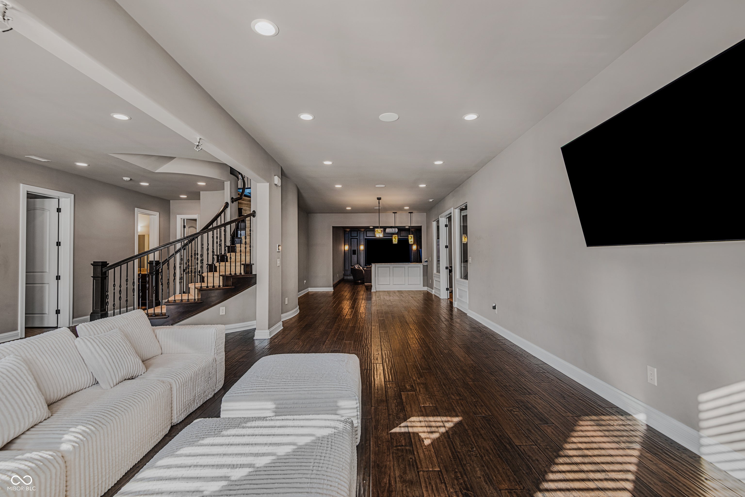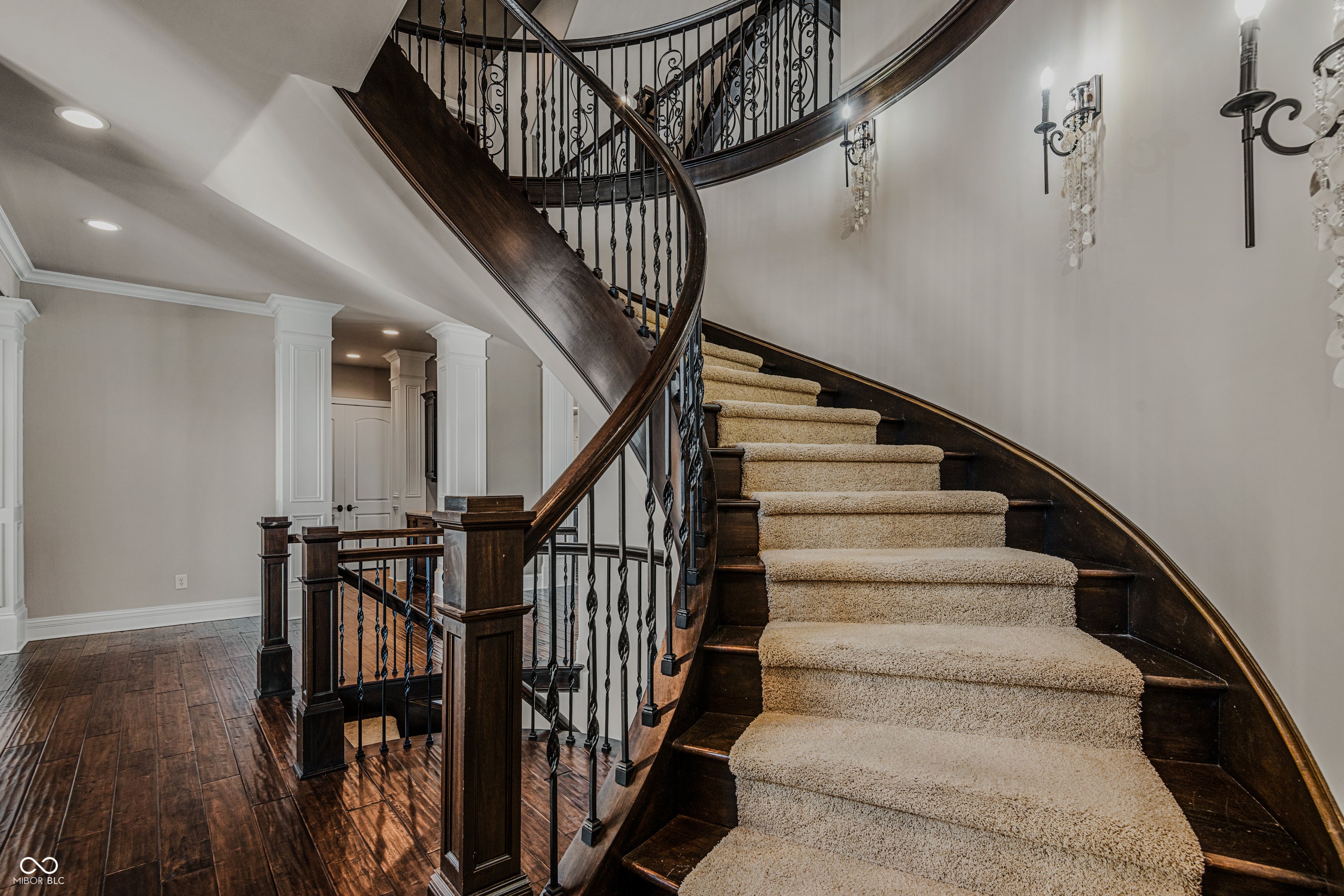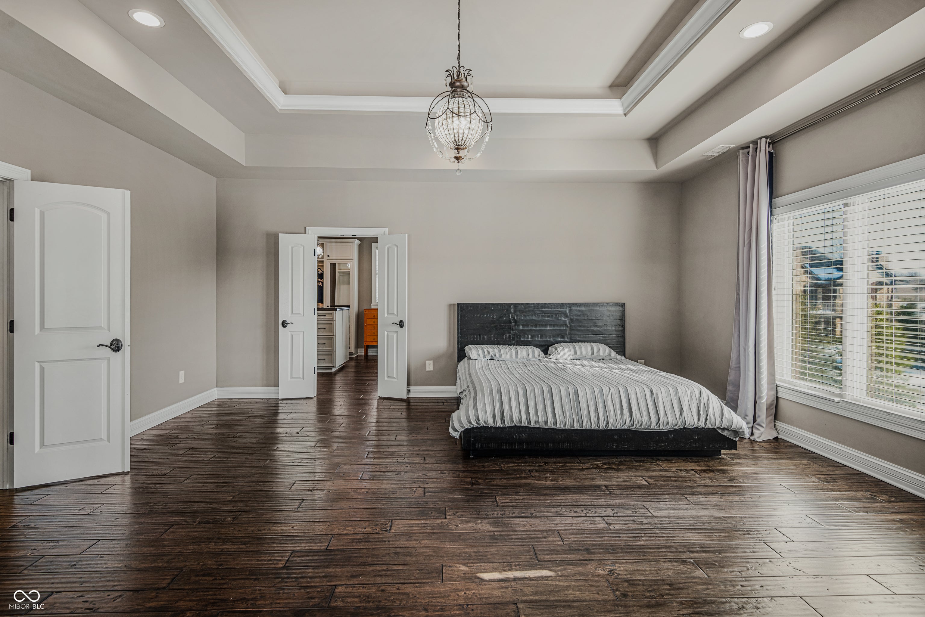 Stunning Custom-Built Estate in Tipton Lakes. Experience timeless elegance blended with modern innovation in this exceptional custom residence located in the prestigious Tipton Lakes community. Spanning approximately 9,000 square feet, this remarkable home combines classic architectural detail with advanced smart-home technology, creating a refined yet highly functional living environment. A grand foyer welcomes you with a sweeping staircase that introduces the craftsmanship and custom finishes found throughout. The sunlit family room features a dramatic two-story cathedral ceiling with exposed beams and flows seamlessly into the gourmet kitchen. Designed for both beauty and performance, the kitchen offers custom Amish cabinetry, a generous center island, granite countertops, GE Monogram appliances, and custom wall refrigerators, ideal for everyday living and effortless entertaining. The formal dining room provides an elegant setting for memorable gatherings. The main level also includes a walk-in pantry, butlers pantry, mudroom, powder room, and a private guest suite. A dedicated office offers flexibility for work or quiet retreat. Upstairs, the primary suite serves as a true sanctuary with a sitting area, custom walk-in closet, and spa-inspired bath featuring heated floors and a luxurious shower. Two additional ensuite bedrooms with walk-in closets, a guest room or playroom, and a conveniently located laundry room complete the upper level. The lower level is designed for recreation and relaxation, showcasing a theater room, billiards area, spacious rec room, fitness room, bonus room, and guest suite. Outdoor living is equally inviting with a covered patio, cozy fireplace, and built-in gas stovetop for year-round enjoyment. An oversized garage with epoxy flooring, additional washer and dryer hookup, and abundant storage enhances the thoughtful layout. This estate is more than a home; it is a lifestyle defined by comfort, quality, and exceptional craftsmanship.