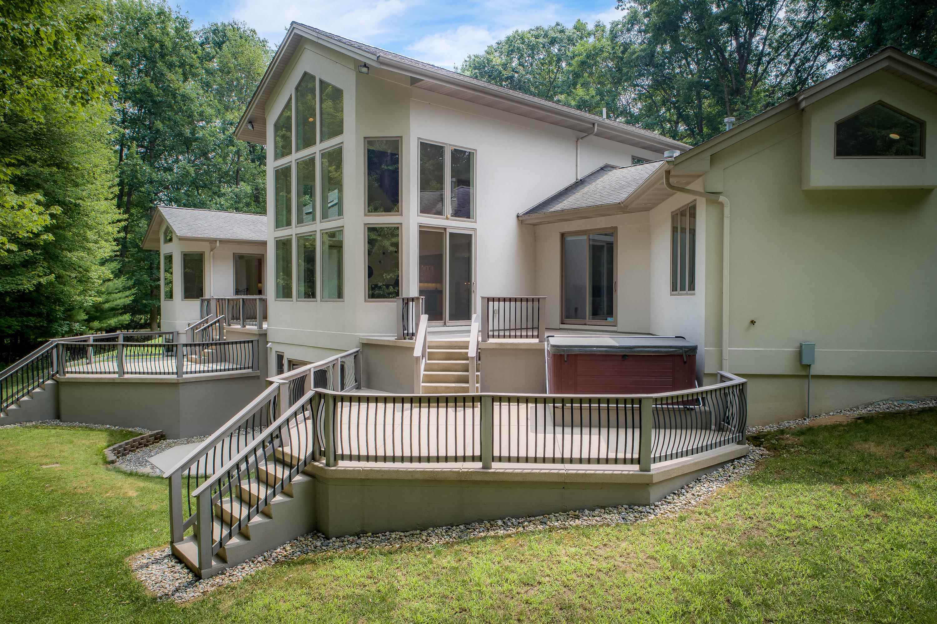 A true architectural statement, this Bill Phillips‹“designed estate stands among the most exceptional homes currently on the market. Set on 5.54 private, wooded acres, the residence offers four bedrooms and 4.5 baths, blending refined elegance with thoughtful, high-end functionality throughout. The custom main-floor primary suite is a private retreat, exuding understated luxury. Highlights include a personal fireplace, private deck, and a spa-inspired bath complete with its own fireplace, soaking tub, expansive shower, and exceptional closet space‹” with bespoke shoe storage. Every detail has been curated to support a sophisticated, yet livable lifestyle. Designed with both entertaining and everyday comfort in mind, the main living areas overlook the serene acreage beyond. Extra-thick Canadian maple flooring flows throughout the home, providing a warm, timeless foundation that beautifully supports transitional dÁÂcor. A striking three-way gas or wood-burning fireplace anchors the space, while floor-to-ceiling windows flood the interior with natural light. The gourmet kitchen is nothing short of stunning, featuring Dacor professional-grade appliances, expansive granite countertops and backsplash, a designer hood vent, generous pantry space, and a custom cookbook cabinet. Dining options are equally impressive, offering seamless transitions from the statement island to a quiet eat-in area, and on to the formal dining room. A butler's pantry with upscale wine refrigeration, abundant storage, and refined lighting provides a second serving area ideal for entertaining. The finished lower level extends the home's versatility, offering a fourth bedroom with private access to a full bath, a dedicated fitness room, workshop, walk-out access to the back patio, and tremendous storage. From construction quality to the strategic sourcing of materials, this home reflects a level of professional design and craftsmanship that is both evident and enduring. The oversized three-car garage easily accommodates more than vehicles, while plans for future expansion are already in place: a designated pole building site with underground electric and a prepared driveway await. Outdoor living is equally remarkable. Four decks invite you to relax, entertain, or simply observe the deer and turkeys that frequent the property‹”all while enjoying complete privacy and natural beauty. Perfectly positioned just seven miles from shopping, medical offices, and schools, this estate delivers the rare balance of luxury living and peaceful seclusion. A home of this caliber, scale, and setting is seldom available. Ideally suited for executives and buyers relocating, this property offers the exceptional design, refined finishes, and convenient proximity to essential amenities that discerning buyers seek. It is a rare opportunity to transition seamlessly into luxury living without compromise.