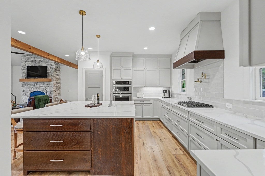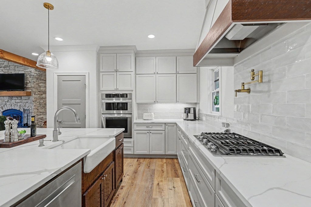 Welcome to 1105 Waterloo Rd, a 3 bedroom, 2 1/2 bath home, set on a full acre in the heart of Easttown Township. Enter through the foyer, to the left is a large, bright family room with lots of windows and a stone fireplace. There is a lovely updated powder room and a storage room with the washer, dryer, built -in storage closets and the entrance to the 2-car garage. Head up the stairs to the main living area - there is a living room with fireplace and a dining room - perfect for those holiday gatherings. Hardwood floors, crown molding, chair rail detailing and abundant natural light throughout the home combine for classic elegance with modern updates. The beautifully renovated kitchen is the heart of the home with quartz countertops, a large center island, tile backsplash and newer stainless steel appliances. There is even a dedicated coffee bar making this space equally suited for daily use and casual hosting. The kitchen flows directly into an enclosed porch, which leads to a newer maintenance -free deck overlooking the side yard, an ideal setting for outdoor dining, quiet mornings or weekend gatherings. Also on this level are the bedrooms. The Primary bedroom offers privacy and comfort, complete with a walk-in closet and an updated ensuite bathroom. There are two additional bedrooms and a hall bath on this level - providing flexibility for guests, home office or family living. This home is in the award winning T/E School District - convenient to all major highways and everything the Main Line has to offer- this is a perfect home for todays lifestyle.