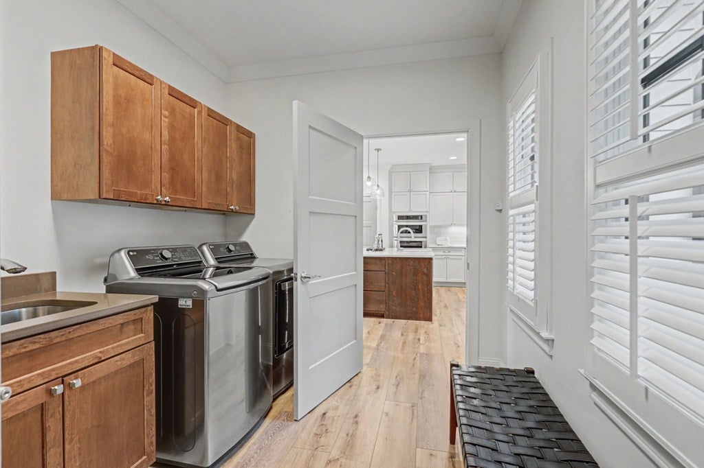 Truly unique and beautifully reimagined, this chic single-level home in Lake Oswegos coveted Palisades neighborhood offers refined living centered around an enchanting gated courtyard that sets the tone for both privacy and effortless entertaining. Completely remodeled down to the studs in 2016, this residence blends modern design with warmth and flow, featuring open-loop living, kitchen, dining, and bonus spaces ideal for gatherings large or small. Sunlight pours through walls of windows, highlighting bamboo floors, two Ember Glow gas fireplaces, custom built-ins, and French doors that open to a sunny courtyard in front and a Trex deck with lovely easterly views toward Rosemont Summit at the back. The island kitchen impresses with gas cooking, quartz countertops, and built-in appliances, while the formal dining area offers seamless indoor-outdoor connection and flexible entertaining space. Enjoy the private retreat feel of the primary suite, complete with a spa-inspired bath, Finnish sauna, and a showstopping custom walk-in closet designed with display cabinetry, drawers, and valet rods. Two additional bedrooms provide comfort and versatility, complemented by beautifully updated bathrooms and a well-appointed laundry room with built-ins and exterior access. Set on a generous 10,000-square-foot fenced lot with oversized garage (600sf), EV charger, ample parking, newly installed sidewalk, and exceptional full-height crawl space storage. This truly unique home is ideally located within half a mile of parks, pool, golf course, high school, scenic trails, and Luscher Farms beloved CSA offering a rare blend of luxury living and everyday lifestyle convenience. This home is eligible for a Lake Easement at Palisades Easement.