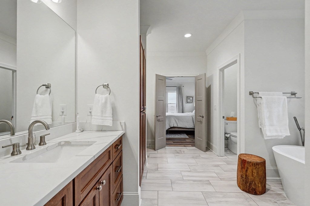This exceptional custom-built 5-bed, 5-bath home in Double Oak showcases modern design, luxurious finishes, and thoughtful functionality. The open-concept living area features sleek lines, abundant natural light, and expansive views of the outdoor living spaces.The primary suite offers a true retreat with a private coffee bar, a spacious patio, a stunning spa-inspired bathroom, and an oversized custom closet. The home also includes remarkable built-ins, extensive storage, a second primary suite with a large closet and oversized beach-entry shower, plus an RV garage in addition to the oversized 3-car garage. Upstairs, youll find a studio-style bedroom with its own full bathroom and living room. The gourmet kitchen is a chefs dream, equipped with commercial-grade appliances and premium enhancementsincluding two dishwashers and a warming drawer.Step outside to the impressive main patio and extended outdoor living area, complete with an outdoor kitchen, infrared heaters, motorized screens, a fire pit, and a spa.Experience all the exquisite details this home has to offer and schedule your private tour today.