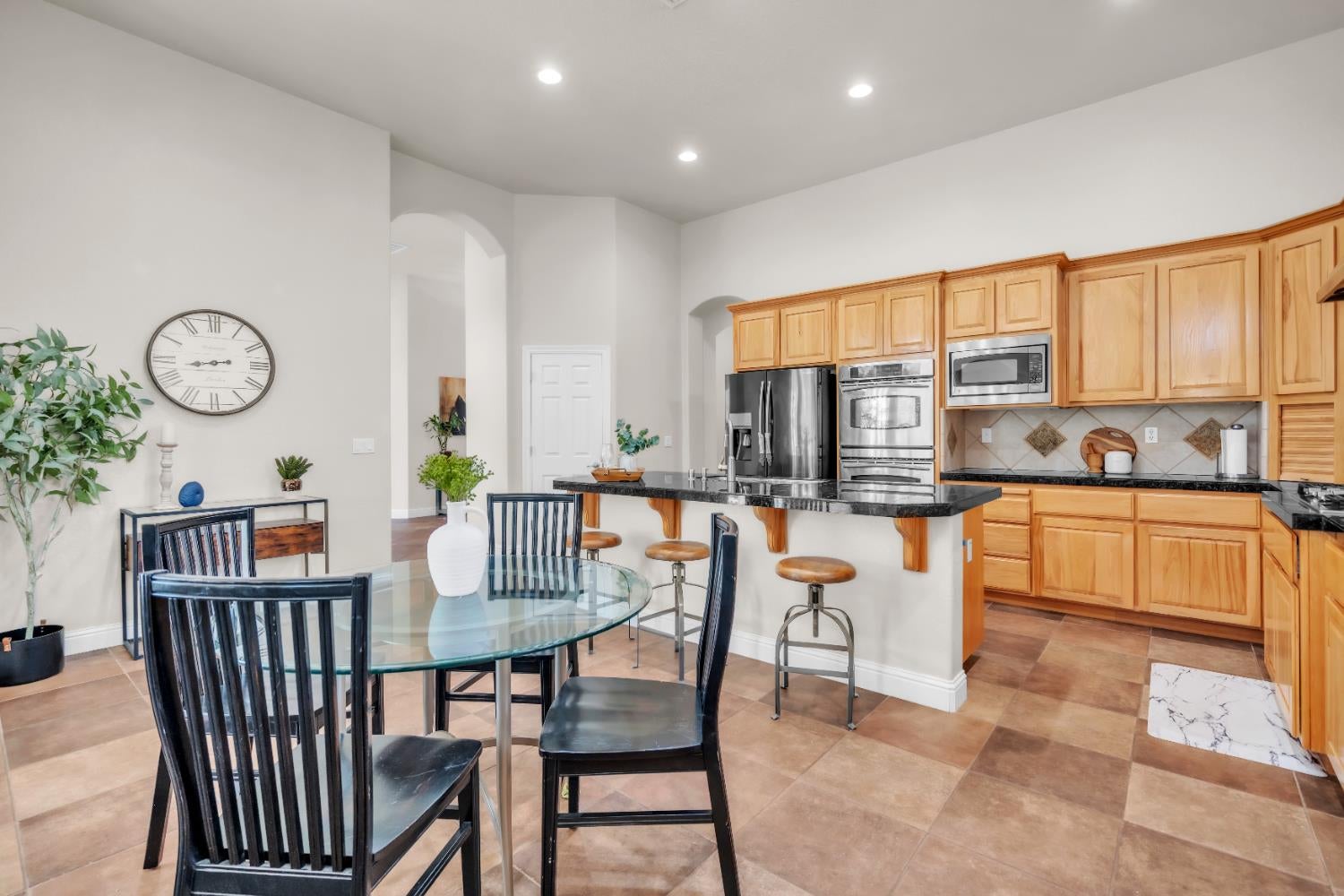 Nestled on 5 beautiful acres, this all-brick ranch with limestone accents offers the perfect blend of privacy, quality construction, and modern updates. Surrounded by open green space and mature trees, the setting provides a peaceful retreat just a short drive from town. Inside, youll find a bright, open floor plan highlighted by soaring ceilings, hardwood flooring, and abundant natural light. The spacious living area features a cozy fireplace and flows seamlessly into the kitchenideal for both everyday living and entertaining. The kitchen is well-appointed with granite countertops, ample cabinetry, and a large center island perfect for gathering. The remodeled primary suite is a true standout, offering a beautifully updated bath complete with a walk-in shower, soaking tub, dual vanities, and a skylight that fills the space with natural light. Additional highlights include a full basement with endless potential for additional living space, recreation, or storage, along with major updates such as a new roof, new gutters, two new HVAC units, and a new water heater for added peace of mind. Enjoy outdoor living from the covered porch overlooking the expansive property perfect for relaxing or entertaining while taking in the scenic surroundings. A 3-car attached garage provides ample space for vehicles, storage, or hobbies. With its combination of acreage, quality construction, and thoughtful updates, this property offers a rare opportunity for space and comfort in a beautiful setting.