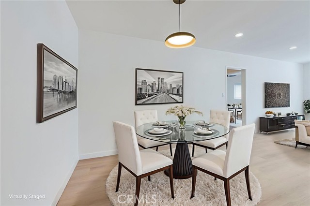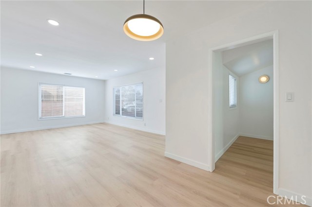 THIS HOME IS A MUST SEE! This rare single-level residence was imagined and designed by @abradesigns to offer an exceptional blend of privacy, space, and modern comfort. Step inside to a bright, open-concept layout filled with abundant natural light, complemented by fresh interior paint, brand-new light oak luxury vinyl plank flooring, and new two-inch Faux Wood blinds throughout.The home features three bedrooms and one bath, plus a valuable bonus office space—ideal for today's work-from-home needs. Enjoy peace of mind under a brand-new roof, providing worry-free living for years to come.The spacious living room is perfect for gatherings and entertaining, complete with recessed lighting and an adjoining dining area. The thoughtfully updated kitchen showcases white shaker cabinetry, quartz countertops, coordinating hardware, a Fireclay sink, stainless steel five-burner gas range, garbage disposal, a cozy kitchen nook, and direct access to the attached two-car garage.The bathroom has been tastefully reinvented with timeless materials and refined detailing, offering a functional and elevated aesthetic. Enhancements include a new bathtub with a sleek surround enclosure, contemporary hardware and fixtures for both the tub and the light oak floating double-sink vanity with matching storage along with soft-close hardware, modern LED lighting, mirror, and porcelain tile flooring.All bedrooms are generously sized and equipped with modern ceiling fans with LED lighting. The primary bedroom offers enhanced privacy, expanded space, and a generous closet.Additional improvements include new contemporary light fixtures, wide baseboard, new designer door knobs, new HVAC unit metal enclosure, a smart Google Nest thermostat, brand-new 100-amp electrical panel, new garage door, exterior paint, exterior lighting, and mailbox. For year-round comfort, the home also features double-pane windows and central air conditioning and heating.The private block-wall backyard offers a vast space landscaped with drought resistant plants and a concrete patio area that provide endless possibilities for outdoor enjoyment, gardening, and more. Added value comes with the attached two-car garage offering generous storage, washer and dryer hookups, and an oversized driveway with potential RV parking.Conveniently located near the 5, 605, and 91 freeways and close to schools, shopping, dining, and the neighboring communities of Cerritos, La Mirada, Santa Fe Springs, and Whittier.