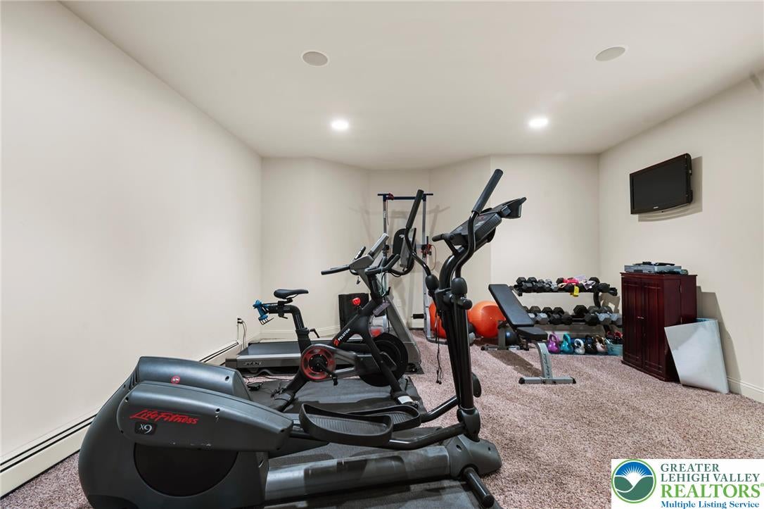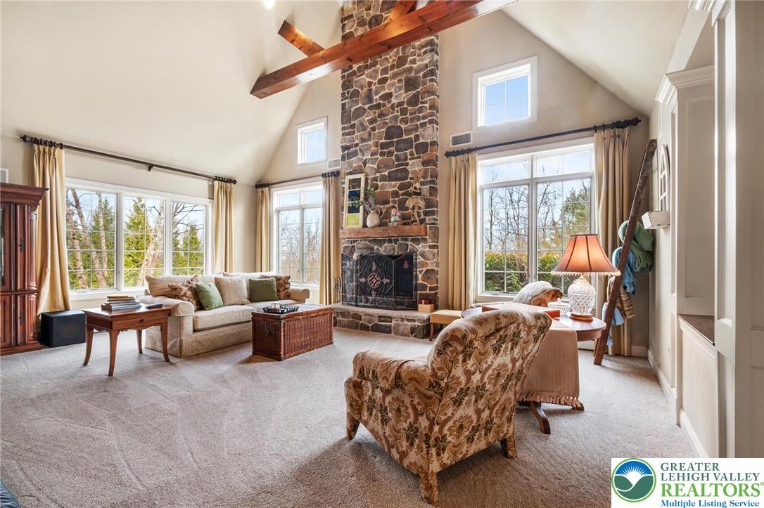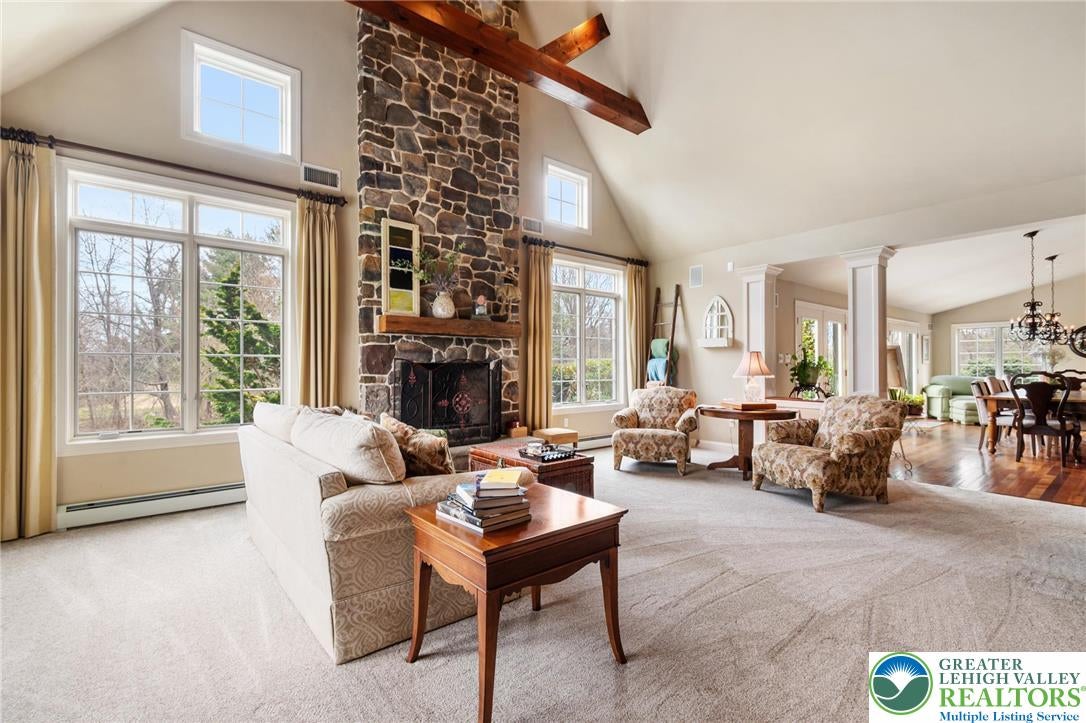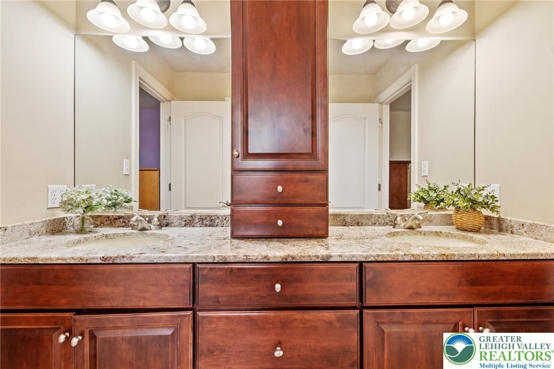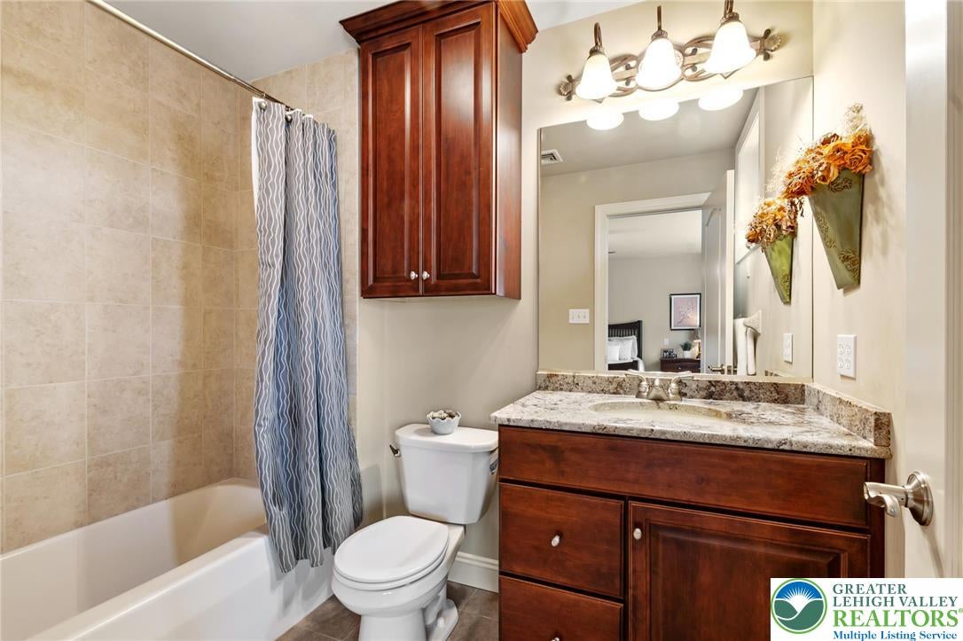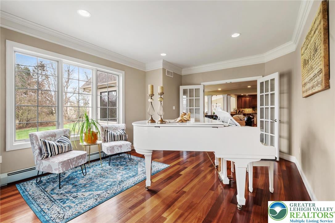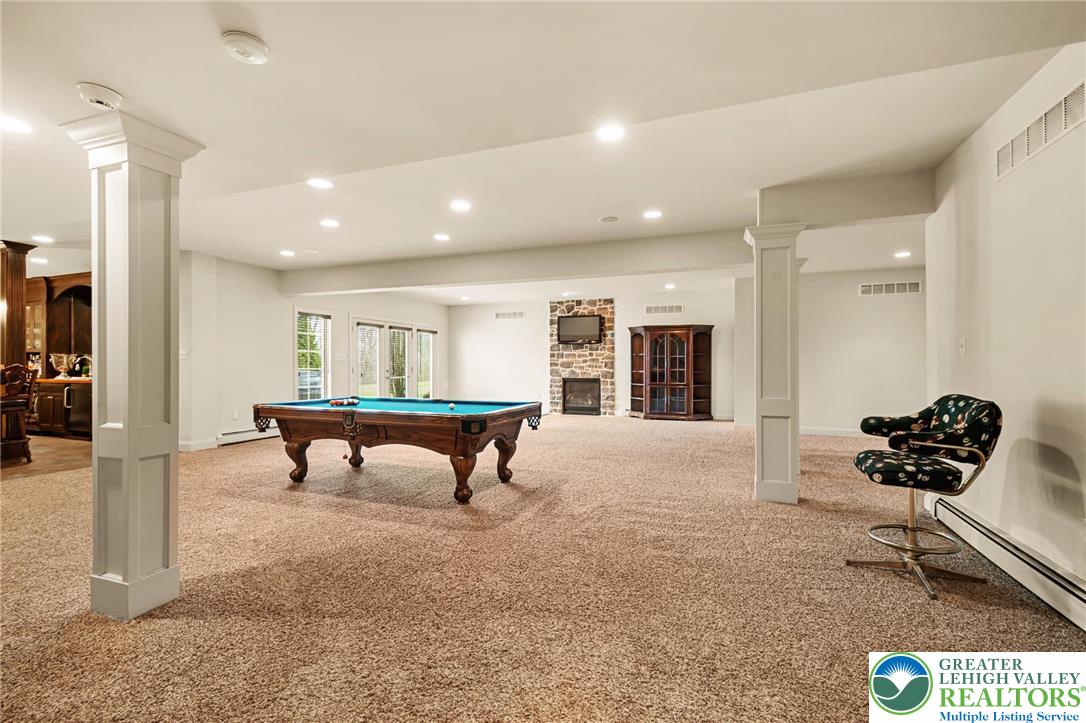 Set on a beautifully landscaped cul-de-sac lot in Tuscany Hillan exclusive enclave of just nine homes built by award-winning Monogram Custom Homesthis exceptional property offers a rare blend of scale, craftsmanship, and lifestyle-driven design. Located in Upper Saucon Township and the highly regarded Southern Lehigh School District, the setting is as desirable as the home itself.Striking curb appeal and architectural character hint at a subtle European influence, while the interior showcases a thoughtfully designed layout with refined detail throughout. The main level seamlessly blends formal and everyday living, featuring a private office with custom built-ins, an elegant dining room with coffered ceiling, and a versatile sitting room ideal for a music room or additional entertaining space. The gourmet kitchen anchors the home with custom cabinetry, high-end appliances, and a generous center island, opening to a sun-filled breakfast area and a dramatic two-story family room with a floor-to-ceiling stone fireplace and walls of windows. Upstairs, the primary suite offers a true retreat with a double-sided fireplace, sitting area, and a spa-inspired bath featuring a walk-in glass shower, soaking tub, dual vanities, and an expansive walk-in closet. Two additional en-suite bedrooms, along with two more connected by a Jack-and-Jill bath, offer generous space and are complemented by walk-in closets. The finished walk-out lower level elevates the home even further, offering a full custom bar, multiple entertaining and recreation areas, a dedicated fitness room, media space, and a full bathcreating a true extension of the home ideal for entertaining, guests, or multi-generational living. Outdoor living is equally compelling, featuring a paver patio, hot tub, and beautifully designed landscaping with natural stone accentsoffering a sense of privacy and a setting reminiscent of a quiet countryside retreat. A rare opportunity to own a home that combines timeless design, exceptional space, and a location that continues to be one of the Lehigh Valleys most sought after.