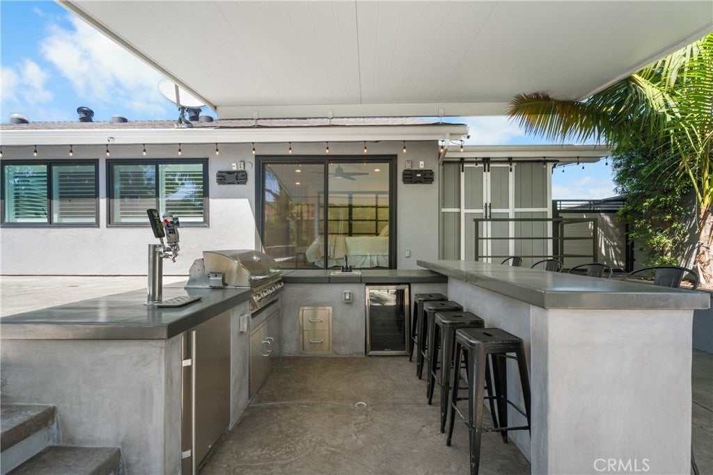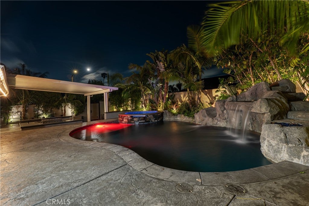 Absolutely stunning oasis on a quiet 40 foot RV access corner lot in a prime location. Entertainers delight. Over 650K in amazing upgrades. You will fall in love! Upon entering, you are welcomed into a grand foyer with soaring ceilings and an abundance of natural light. The open-concept floor plan seamlessly connects the living, dining, and kitchen areas, creating a harmonious flow throughout the home. The heart of the home is the chefs kitchen, boasting high-end stainless steel appliances, custom cabinetry, quartz countertops, and a spacious island with bar seating. Overlooking the pool make this kitchen as functional as it is beautiful. Whether youre preparing a casual meal or entertaining guests, this kitchen is equipped to handle it all. The primary suite is a sanctuary of luxury, featuring a spacious layout, private access overlooking the pool, and a spa-like en-suite bathroom. The master bath includes a walk-in shower, custom vanity, and a large closet. Additional bedrooms are generously sized, each with its own unique charm and ample closet space. The homes bathrooms are equally impressive, with high-end fixtures, custom tile work, and modern finishes. Step into the backyard, where an entertainers paradise awaits. The sparkling salt water pool, spa, slide, and waterfall is surrounded by lush greenery, king palm trees, and custom stonework that is perfect for both relaxation and recreation. An adjacent spa offers a tranquil retreat, while the covered patio with built-in BBQ and outdoor kitchen is ideal for hosting gatherings. Gorgeous outdoor kitchen that has a sunken bar with a sink, beer tap, Bull BBQ rotisserie, & fridge. Huge aluminum covered patio with insulation. Stamped colored concrete that exudes luxury. Some of the amazing upgrades include New windows, sliders, skylights, A/C split system, New gates, Tankless water heater, custom block wall, and custom lighting through out. Energy-efficient windows, central heating and cooling, and top-of-the-line security systems ensure peace of mind and year-round comfort. 2-Car attached garage with a custom African Mahogany garage door. Garage has two closets, drywall, custom lighting, quartz counters, New cabinets, Sink, & private access to storage above ceiling. Private 40 foot RV access parking with custom gate. Top rated private and public schools. Located just moments from the pristine beaches of Huntington Beach. Discover the epitome of luxury living where every day feels like a vacation!