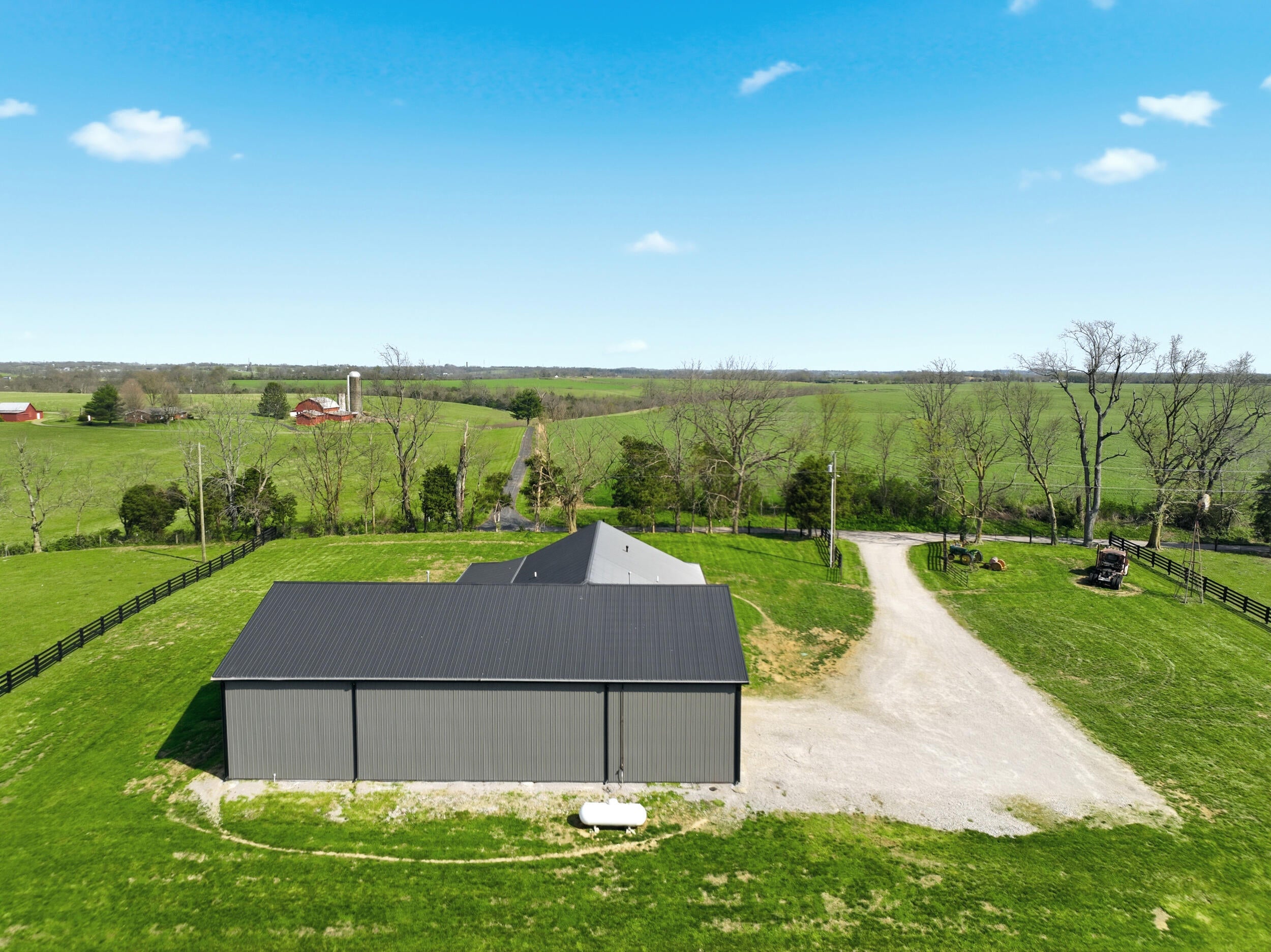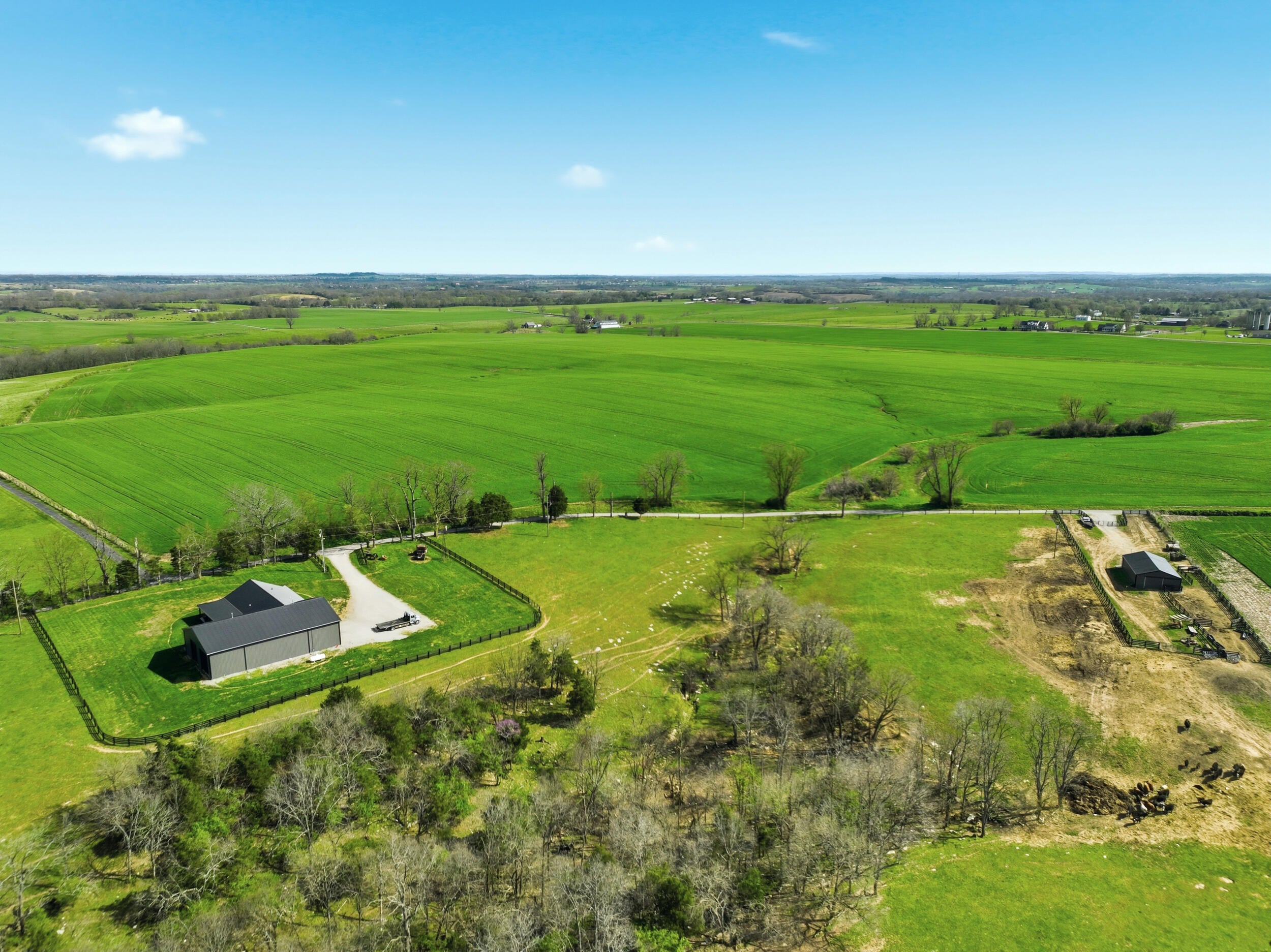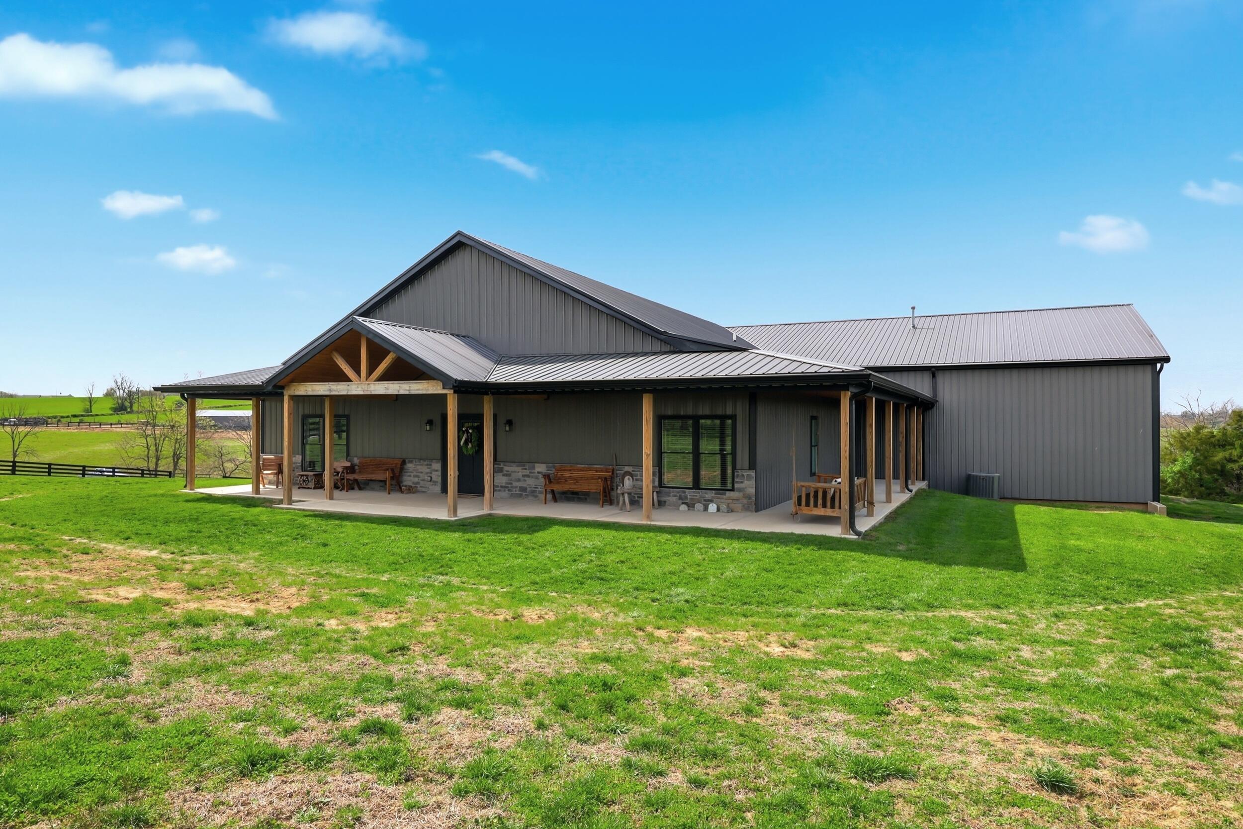 Dreaming of wide open space, privacy, and a property that truly does it all? This one isnt just rare--its nearly impossible to duplicate. Welcome to 42.7 acres of fully usable land designed for the way you want to live--perfectly positioned in the heart of Central Kentucky, where you get the best of both worlds: peaceful, private country living with the convenience of being just a short drive to nearby towns, dining, and everyday essentials. Whether youre running cattle, hunting, riding, trying to hide from the world, or simply soaking in the scenery, this location delivers the lifestyle so many are searching for. And just when you think it couldnt get better--lake access with your own private shoreline takes it to another level. Built in 2022, the custom contemporary barndominium-style, stick-built home offers over 2,070 square feet of thoughtfully designed living space with 4 bedrooms and 3 full baths. From the moment you arrive, the wraparound porch--complete with stunning wood accent ceilings--sets the tone for whats inside: warm, elevated, and intentionally designed to take in the surrounding views. Step inside to an open-concept layout filled with natural light and enhanced by an abundance of recessed lighting. The kitchen is a true centerpiece, featuring quartz countertops, a statement oversized island, stainless appliances, and an impressive amount of soft-close custom cabinetry--perfect for both everyday living and entertaining. The primary suite is a retreat of its own, showcasing a tiled walk-in shower with rain head, double vanities, and a spacious walk-in closet. Both interior baths are finished with double vanities, offering convenience and style throughout. But perhaps what truly sets this property apart is everything beyond the home: a 4,000 sq ft attached insulated shop with 16 ft ceilings, two pull-through, double-sided 14 ft garage doors (2-post car lift included), a 50x30 metal barn with electric and automatic waterer, new perimeter fencing already in place, and an incredible 2,400 feet of road frontage. All of this, located within the highly sought-after Burgin school district, known for its strong performance and tight-knit community feel--making it just as appealing for those prioritizing education as it is for those seeking land and lifestyle. This is more than a home--its a lifestyle property that checks every box: land, luxury, functionality, and freedom, all in a location thats hard to beat. Opportunities like this dont come around often... and when they do, they dont last.