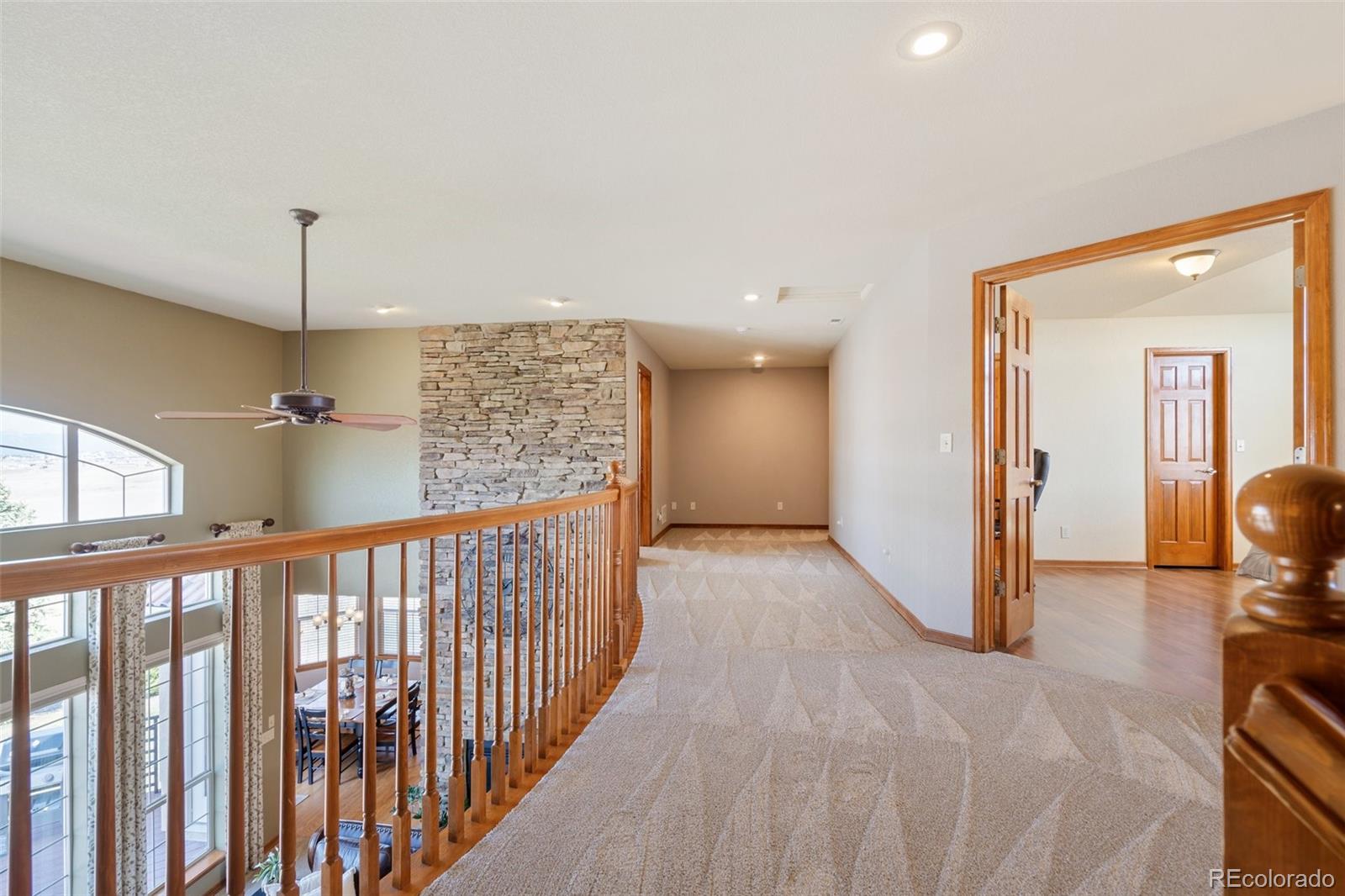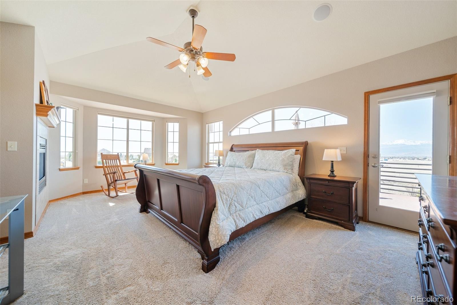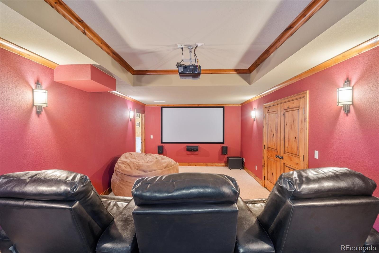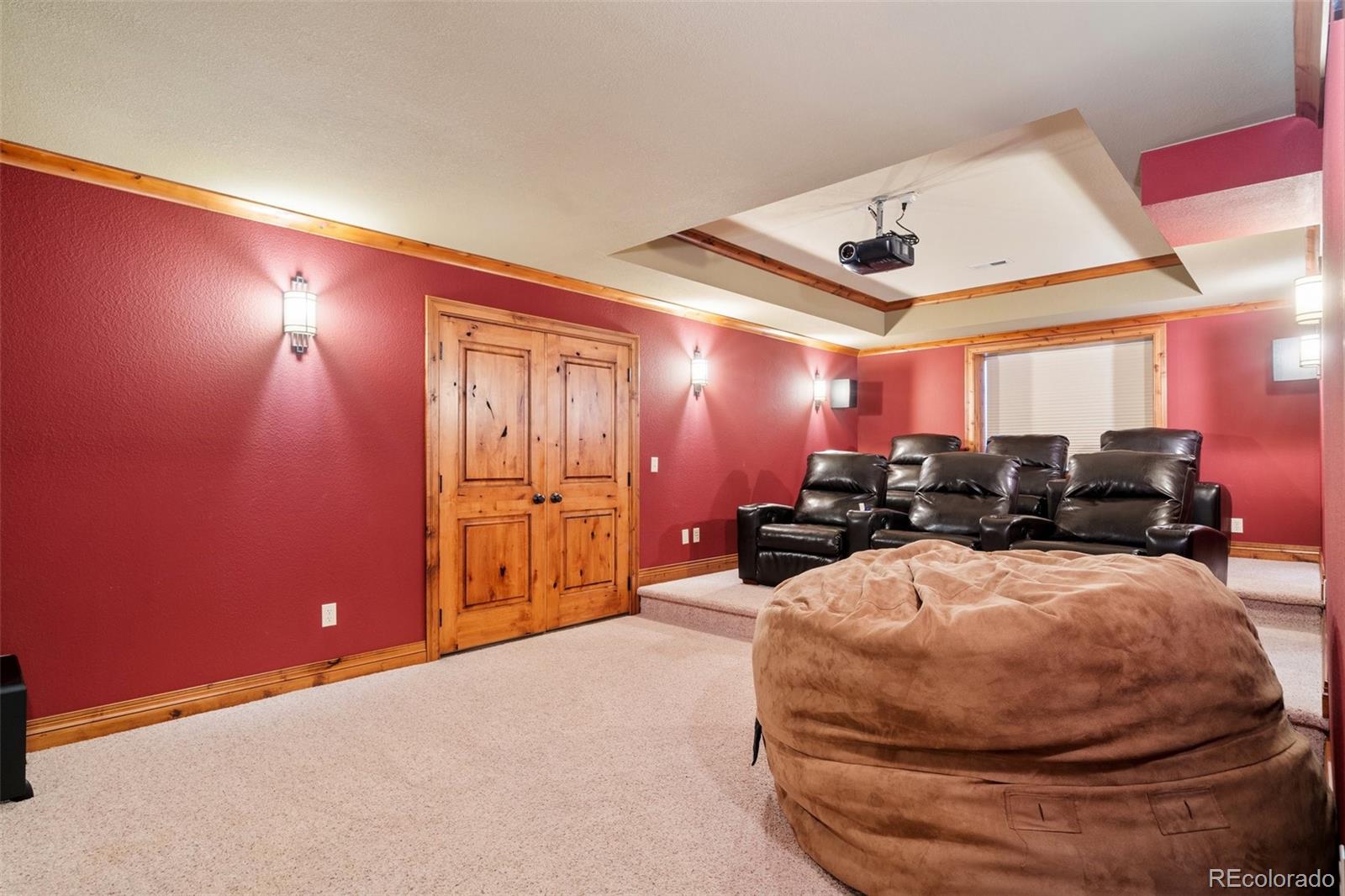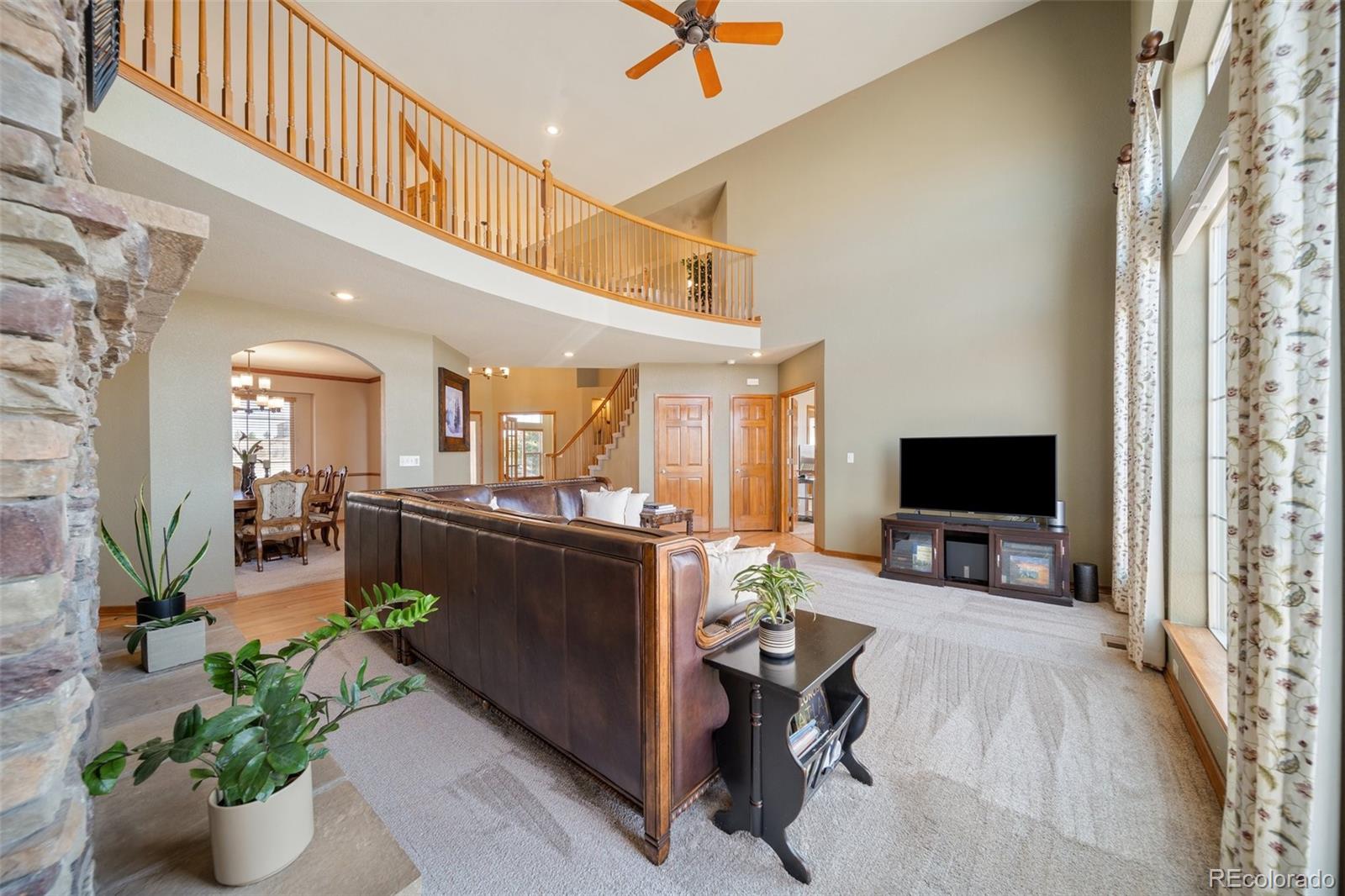PERCHED TO CAPTURE!! breathtaking Panoramic Views of the Front Range and iconic Pikes Peak, this exceptional walkout two-story home offers the perfect blend of luxury, comfort, and Colorado living. A dramatic two-story great room welcomes you with rich hardwood floors, a striking stone gas fireplace, and a wall of windows that perfectly frame the Mountain Views while filling the home with natural light. Step outside to the full-length composite deck, an ideal setting for morning coffee, evening sunsets, and year-round entertaining. The gourmet kitchen is designed for both everyday living and hosting, featuring beautiful maple cabinetry, a gas cooktop, stainless steel appliances, and a spacious eat-in dining area. The main-level owners retreat provides a private sanctuary with New luxury vinyl flooring, updated fixtures, and an expansive walk-in closet. The fully finished walkout lower level is built for entertainment and relaxation, offering a private theater room complete with reclining seating, screen, and projector. A spacious game room and family room with wet bar open directly to the backyard, creating the perfect space for gatherings. This level also includes a finished bedroom and bathroom for guests. Upstairs, three additional bedrooms and two bathrooms feature Newer carpet, flooring, and lighting throughout, complementing the homes thoughtful updates and modern feel. Built-in surround sound enhances the main living areas. Car enthusiasts and hobbyists will appreciate the impressive 40x30 detached shop/garage with 240V power and built-ins, in addition to the attached three-car garage with finished floors and a 240V EV charging station. Located within the highly sought-after Academy School District 20.