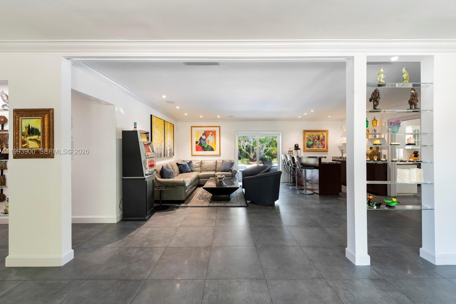 Beautifully updated and impeccably kept large 5/4.5 home in the heart of Pinecrest on a great cul-de-sac street with an amazingly gorgeous backyard. Nestled on an almost 28K sqft lot, this home has it all- impact glass windows and doors, 2016 flat tile roof, 2000 primary suite expansion with his/her baths, 2024 updated plumbing, wet bar, open airy spaces, indoor laundry room, 2-car garage and more. Very special backyard features a giant patio overhang w/aluminum pergola, picturesque landscaping and lighting, modern and recently updated tiled pool and patio. Centrally located with all the best Pinecrest schools.