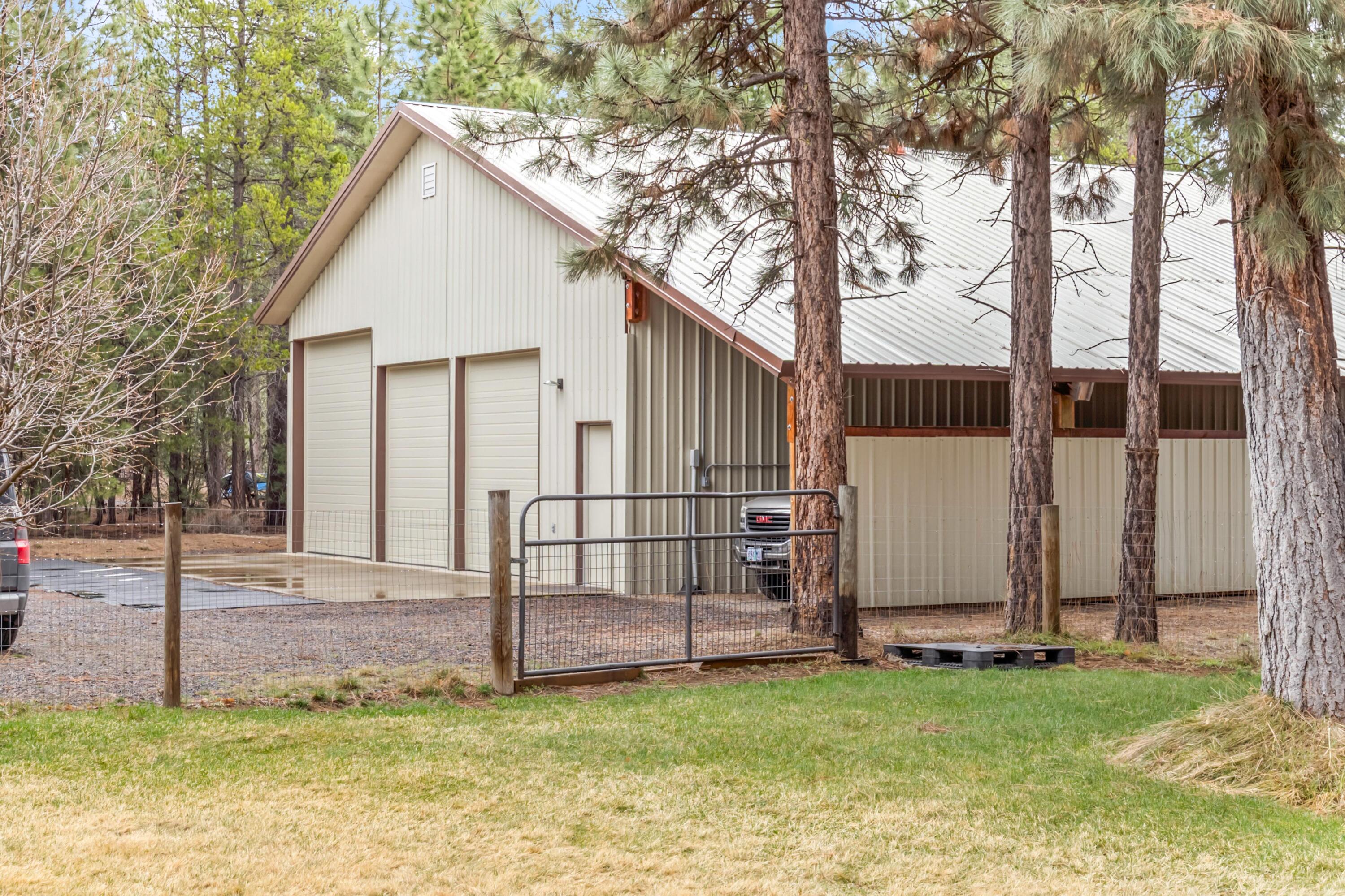 Home, home on the Range is this stunning log-home estate with a seasonal creek meandering its wide, open, and level acreage. The impressive great room immediately captures your attention with soaring open-beam log trusses, full-length windows, and a majestic river rock fireplace. The gourmet kitchen is a focal point for gathering, boasting granite counters, a massive eating bar, and a signature dining room turret that frames the views of your 5 level, usable acres. Retreat to the entry level primary suite, which offers outside access, a jetted tub, and a custom walk-in closet. Additionally on the entry level is another bedroom/office. Upstairs are two bedrooms with high ceilings, dormers in every bedroom and a versatile loft. A standout feature is the detached garage, which includes a separate 2bed, 1 full bath in the approximately 1,000sf apartment/ADU above with laundry hookups. This versatile space is perfect for guests, a quiet home office, or potential rental income. This home is as functional as it is breathtaking. Whether youre dreaming of a cowboy style horse property or a peaceful family legacy home, this all-usable acreage provides the perfect canvas.