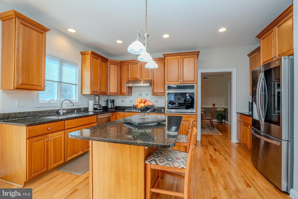This beautifully maintained 4-bedroom, 2 full and 2 half bath colonial sits on approximately 0.75 acres and offers a perfect blend of space, functionality and modern comfort. Step into a grand two-story foyer with hardwood flooring that sets the tone for the home. The main level features a spacious layout including a living room, dining room with gas fireplace, skylights and a library/office. The kitchen offers hardwood flooring, center island, pantry, cherry cabinetry and recessed lighting, complemented by stainless steel appliances.Upstairs you'll find hardwood flooring throughout, including in the generously sized bedrooms. The primary suite features a tray ceiling, ceiling fan, an additional sitting area, a custom California walk-in closet and a luxurious en-suite bath with jacuzzi tub, stall shower, and double sinks. The additional bedrooms are well-sized.The finished basement expands your living space with a media room, wet bar, glass cabinetry and under the cabinet lighting. There is one half-bath, sump pump and ample storage.Additional highlights include a laundry room with closet, central vacuum system, recessed lighting and extensive crown molding. The exterior features a large backyard with mature trees, a spacious patio, sprinkler system and a walkway from front to backyard. A two-car garage with new openers, exterior keypad and electric car charger adds convenience.