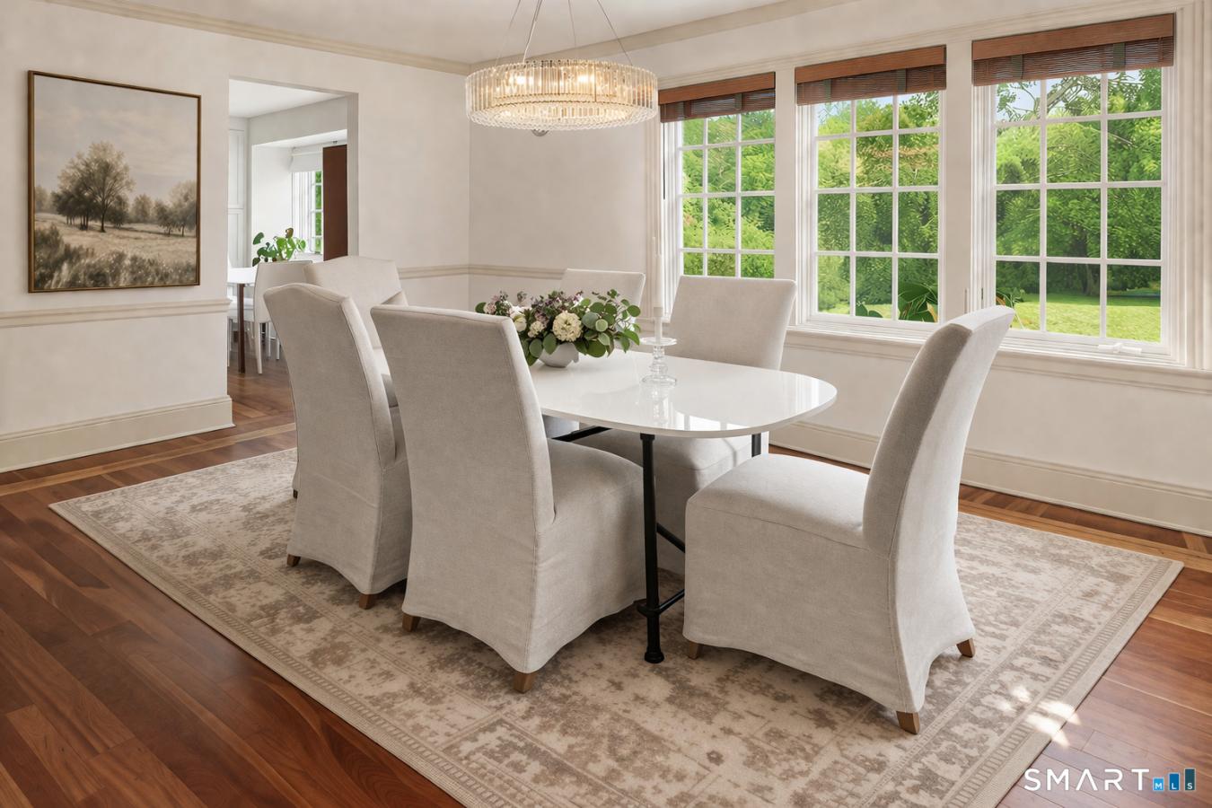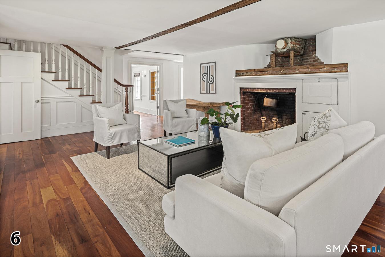 This restored, 6,100 sq ft, expanded 18th-century farmhouse commands a view of its 1.24 acre, brook-fed lake, expansive lawn, raised beds, and 400 ft bleached stone driveway. Those features read: Big Tented Celebration and Fabulous Local Tomatoes. The former NYC chefs kitchen is open to the entertaining areas 5 rooms that circle around the heartbeat that makes a home feel and taste just right.