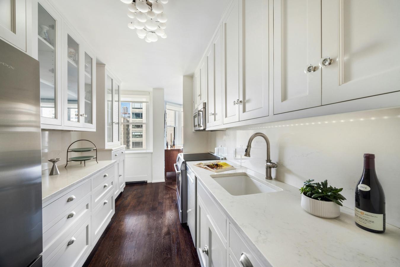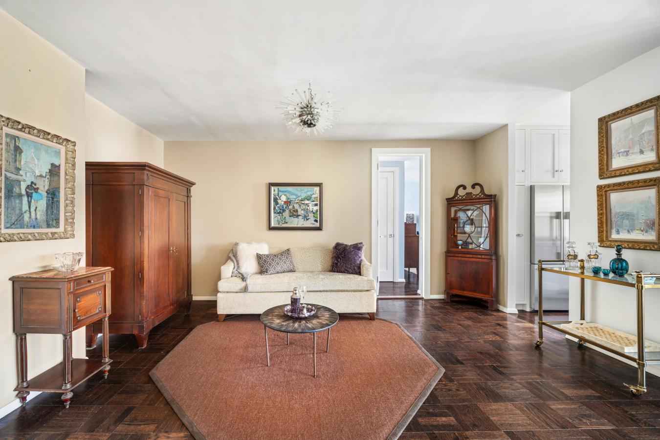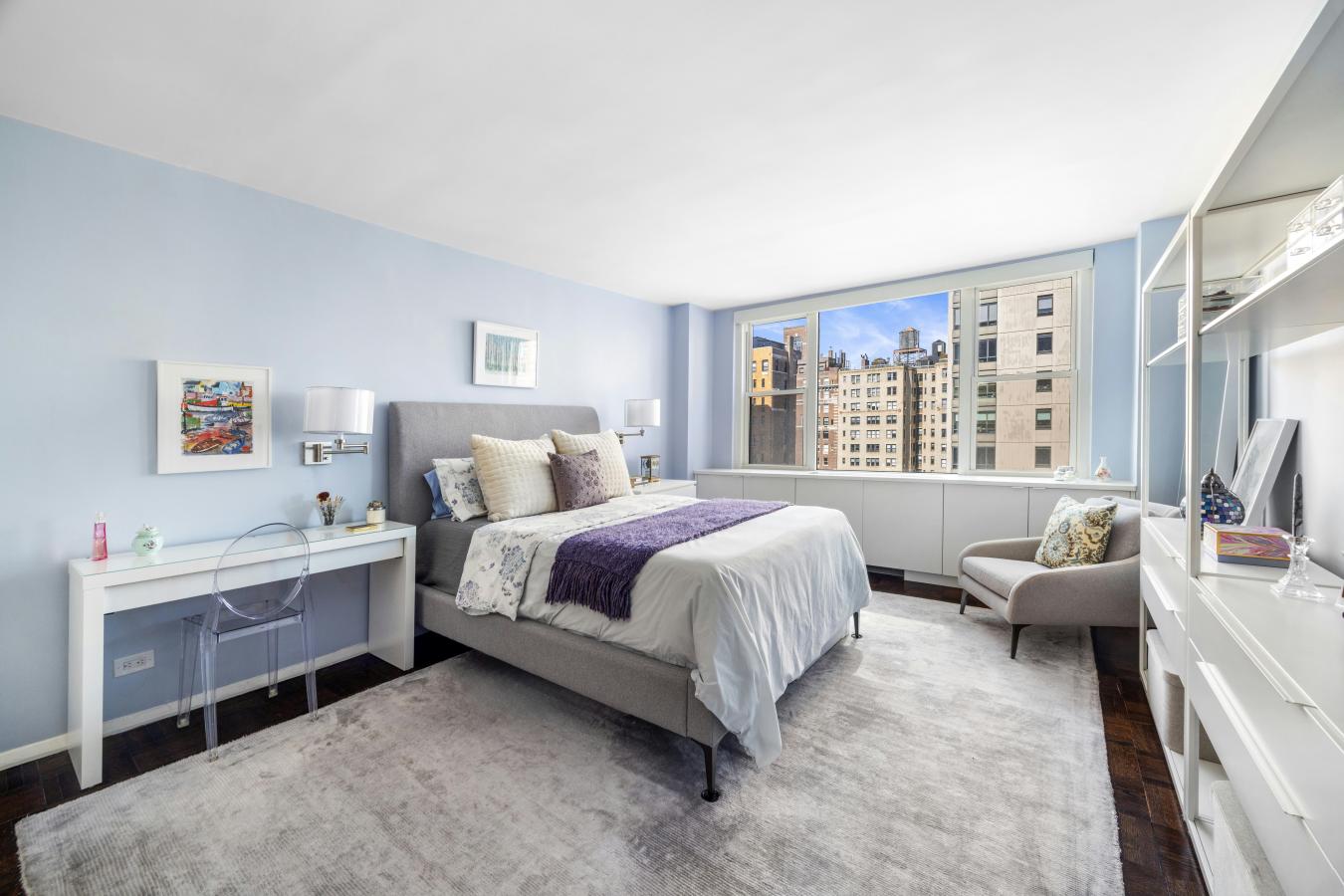 Residence 12C at The Townsend House is a rarely available, sun-drenched two-bedroom, 2.5-bath home offering just shy of 1,600 square feet of refined living on one of the Upper East Sides most coveted tree-lined blocks. Superbly positioned on the 12th floor, this beautifully renovated apartment strikes an ideal balance between classic scale and thoughtfully contemporary interiors. A gracious entry foyer with generous storage flows into an impressive living room spanning over 24 feet, bathed in natural light through oversized windows and finished with rich checkerboard oak parquet floors. The adjacent dining area is a true highlight, featuring a dramatic bay window that frames open city views and fills the space with light throughout the day. The renovated, windowed galley kitchen offers custom white shaker cabinetry, quartzite marble countertops and backsplash, and a full suite of stainless steel appliances. The primary suite is generously proportioned and features a walk-in closet, an additional closet, and a beautifully renovated en-suite bath appointed with a glass-enclosed shower, marble vanity top, and bespoke mosaic-tile floors. On the opposite side of the apartment, the second bedroom enjoys its own private wing, with expansive city-view windows, multiple closets, and a renovated en-suite bath complete with a soaking tub. A well-appointed powder room, finished with statement wallcovering and brass fixtures, adds a sophisticated touch for guests. W/D allowed upon board approval. The Townsend House at 176 East 71st Street is a distinguished full-service co-op situated on one of the most picturesque tree-lined blocks in the Upper East Side Historic District. Central Park is just four blocks away, and the building is surrounded by the neighborhoods finest museums, restaurants, boutiques, coffee shops, and everyday conveniences, with excellent transportation nearby. Residents enjoy 24-hour doorman and concierge service, a live-in superintendent, a fitness center, lobby-level laundry, an outdoor play area, a bike room, individual storage, and an on-site garage. Temporary monthly surcharge: 138.14/month