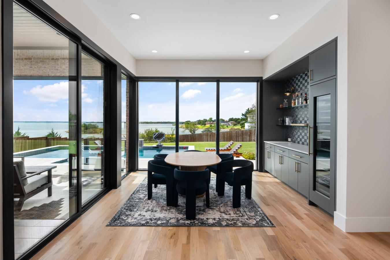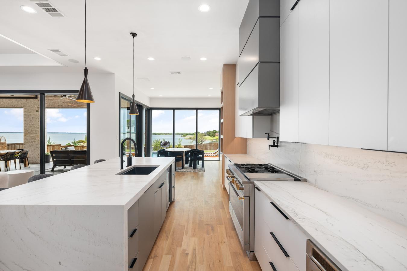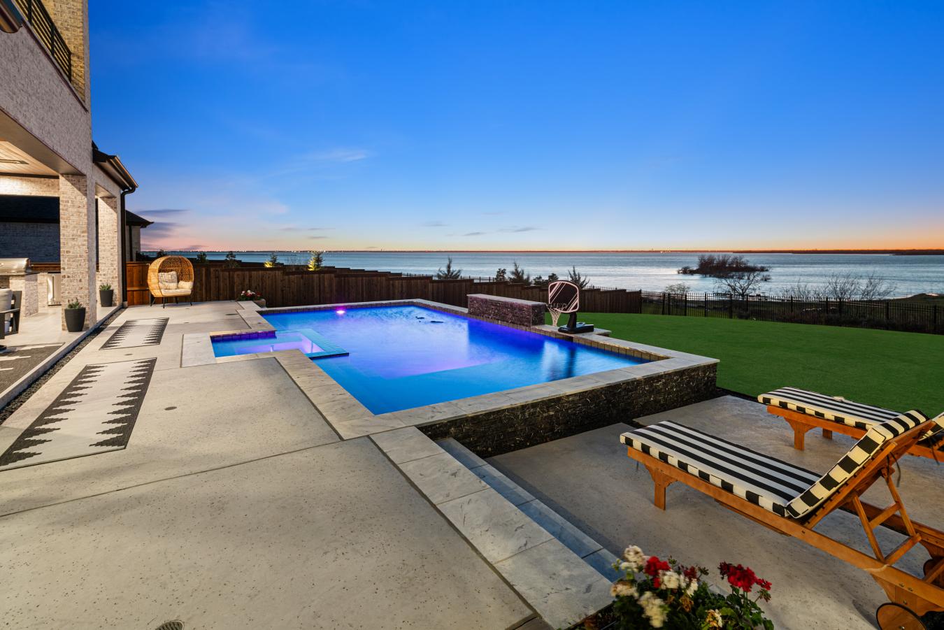 A rare opportunity for a truly one-of-a-kind custom residence on over 0.5 acres with breathtaking lake views in the prestigious lakeside community of The Tribute. Thoughtfully designed to capture the beauty of Lake Lewisville, this architecturally striking home features expansive windows, a seamless indoor-outdoor layout that maximizes natural light, and panoramic water views throughout. The sleek modern design balances warmth and timeless finishes, creating an inviting yet sophisticated atmosphere throughout. Designer details and luxury upgrades at every turn, including light wood floors that flow throughout, striking architectural accents, and designer lighting. The chefs kitchen serves as the heart of the home, showcasing Monogram appliances, custom cabinetry, an oversized island, and a fully equipped prep kitchen designed for effortless entertaining. The homes thoughtful design continues with multiple living spaces, private ensuite bedrooms, a spacious media room, a dedicated home gym, and a tech room. Step outside to an extraordinary backyard retreat featuring a resort-style pool, a covered living area with an outdoor kitchen, a grill, a sink, and a refrigerator. The oversized yard and direct lake access create an unmatched outdoor experience with sweeping lake views that serve as the perfect backdrop for entertaining or relaxing with family. Located in the Waterford Point village of The Tribute, offering a true lakeside lifestyle surrounded by nature with miles of scenic walking and biking trails designed to get the whole family outside. Community amenities include 3 resort-style pools, pickleball courts, a dog park, and playgrounds. The highly anticipated marina will soon provide even greater access to the lake, enhancing the exceptional lakeside living experience. A rare blend of custom architecture, luxury design, and unmatched lake views, this home offers a truly extraordinary lifestyle opportunity in one of North Texass most sought-after communities.