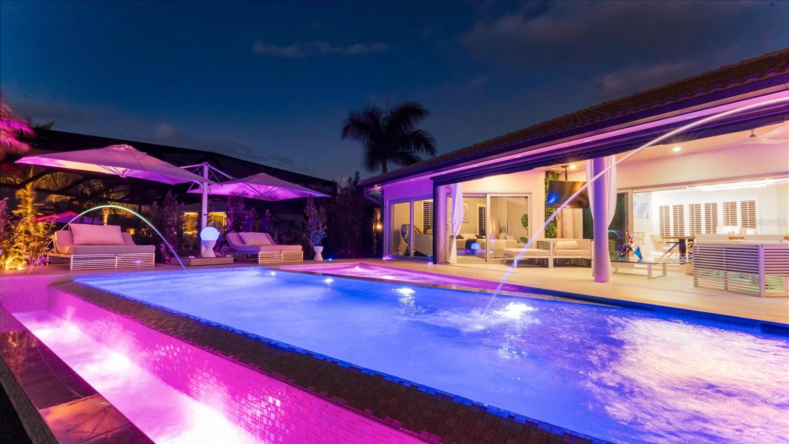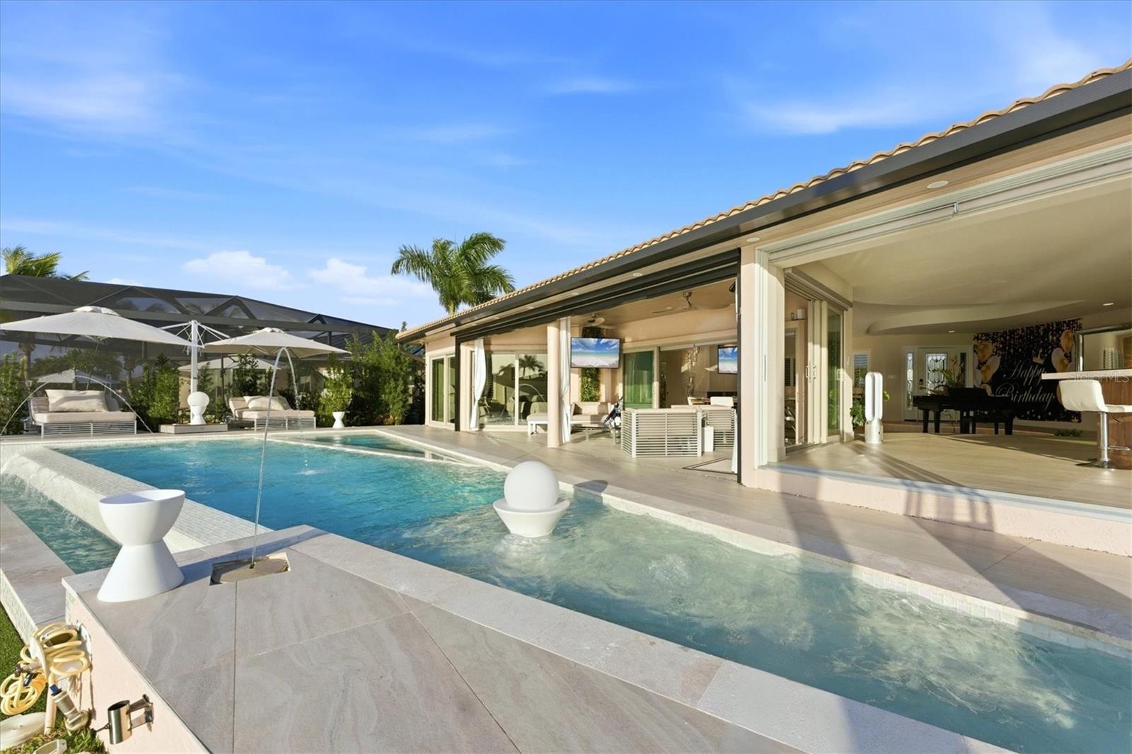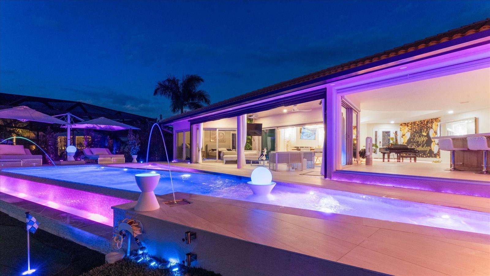 Your Waterfront Sunset View Dream Home in the Prestigious Sailboat Section of Punta Gorda Isles Step into a rare opportunity where luxury, privacy, and breathtaking waterfront living converge. From the moment you arrive, you’ll sense that this is more than a home — it’s a lifestyle reserved for those who appreciate the extraordinary. Perfectly positioned in the highly sought-after sailboat section of Punta Gorda Isles, this exceptional key lot waterfront estate boasts 140 feet of reinforced seawall and expansive, unobstructed wide basin and long-canal views. Each evening, the sky transforms into a masterpiece of vivid sunsets, while tranquil moonlit waters create an ambiance of pure serenity. The impeccably renovated 3-bedroom, 3-bath residence showcases a sophisticated open-concept design, enhanced by walls of hurricane-impact sliding glass doors that create a seamless flow between indoor and outdoor living. A comprehensive remodel and new roof elevate the home with a refined, modern organic aesthetic, while natural light fills the interior capturing stunning water views from nearly every angle. Designed for a truly elevated lifestyle, the outdoor setting is anchored by a brand-new saltwater infinity-edge pool and spa with sun shelf, finished with glass pebble surfaces for a striking, resort-quality feel. Intended for both relaxation and entertaining, the outdoor living space rivals that of a private resort. Refine your putting skills on your own 5-hole green, or host unforgettable gatherings in the expansive outdoor kitchen overlooking the water. This oversized key lot also offers ample space for extended covered lanais and features a substantial concrete dock, ready to accommodate your custom boating setup. Inside, the home continues to impress with an incredible chef’s kitchen featuring high-end finishes and a beautifully designed primary suite with a spa-inspired ensuite bath, creating a private retreat of comfort and sophistication. Bonus features of this home include, large walk in pantry, coffee station, back lit onyx waterfall island, fireplace feature wall, extensive landscape lighting, automated lighting throughout, automated blinds and an epoxy-finished garage floor all adding a distinctive touch. With direct, no-bridge sailboat access, you’re just minutes from the open waters of Charlotte Harbor and the Gulf of America — a true boater’s paradise. Nearby, downtown Punta Gorda offers an array of waterfront dining, boutique shopping, and cultural experiences, all within a charming, vibrant coastal setting. Meticulously updated and exceptionally positioned, this property delivers the ultimate Southwest Florida lifestyle — where luxury meets tranquility and every day feels like a getaway. If you’ve been waiting for a signature waterfront property that truly stands apart, this is your moment. Boardwalk and Park Place available! Schedule your private showing today and experience it for yourself.