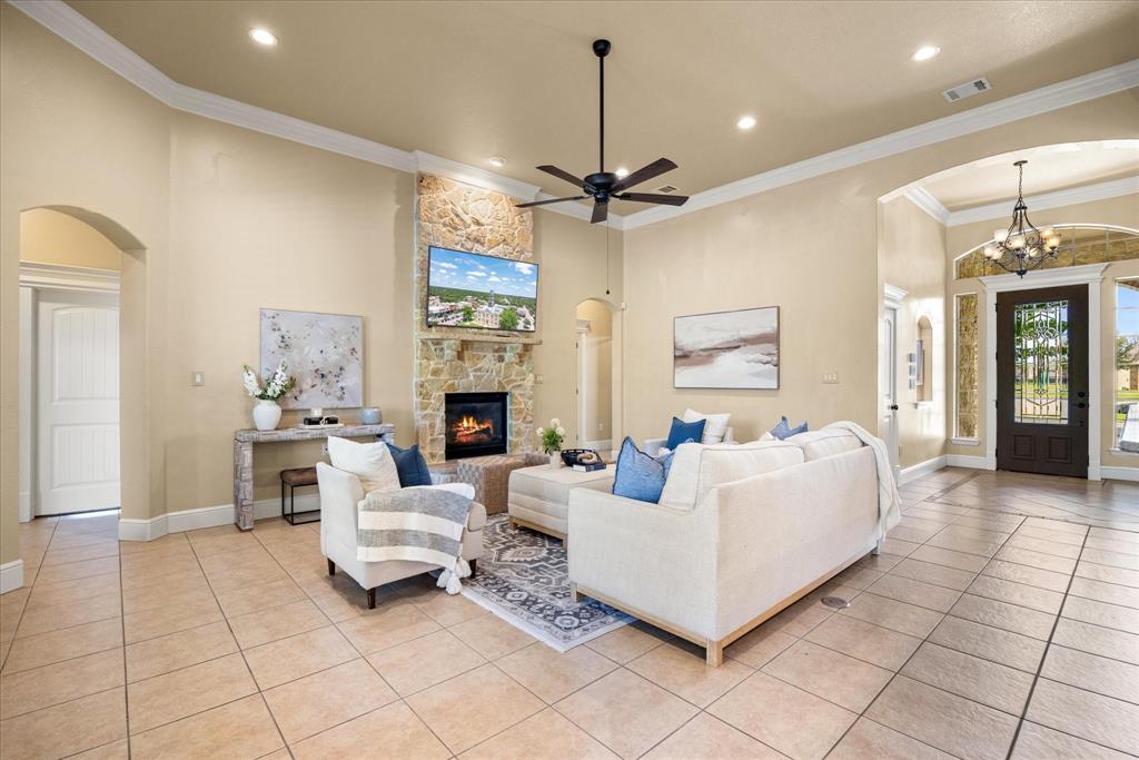 From Business Hwy 377, North on Loop 567, right on Porter Court, left into The Peninsula, Proceed through the gate, turn first left onto Iberian Ct, house on right.