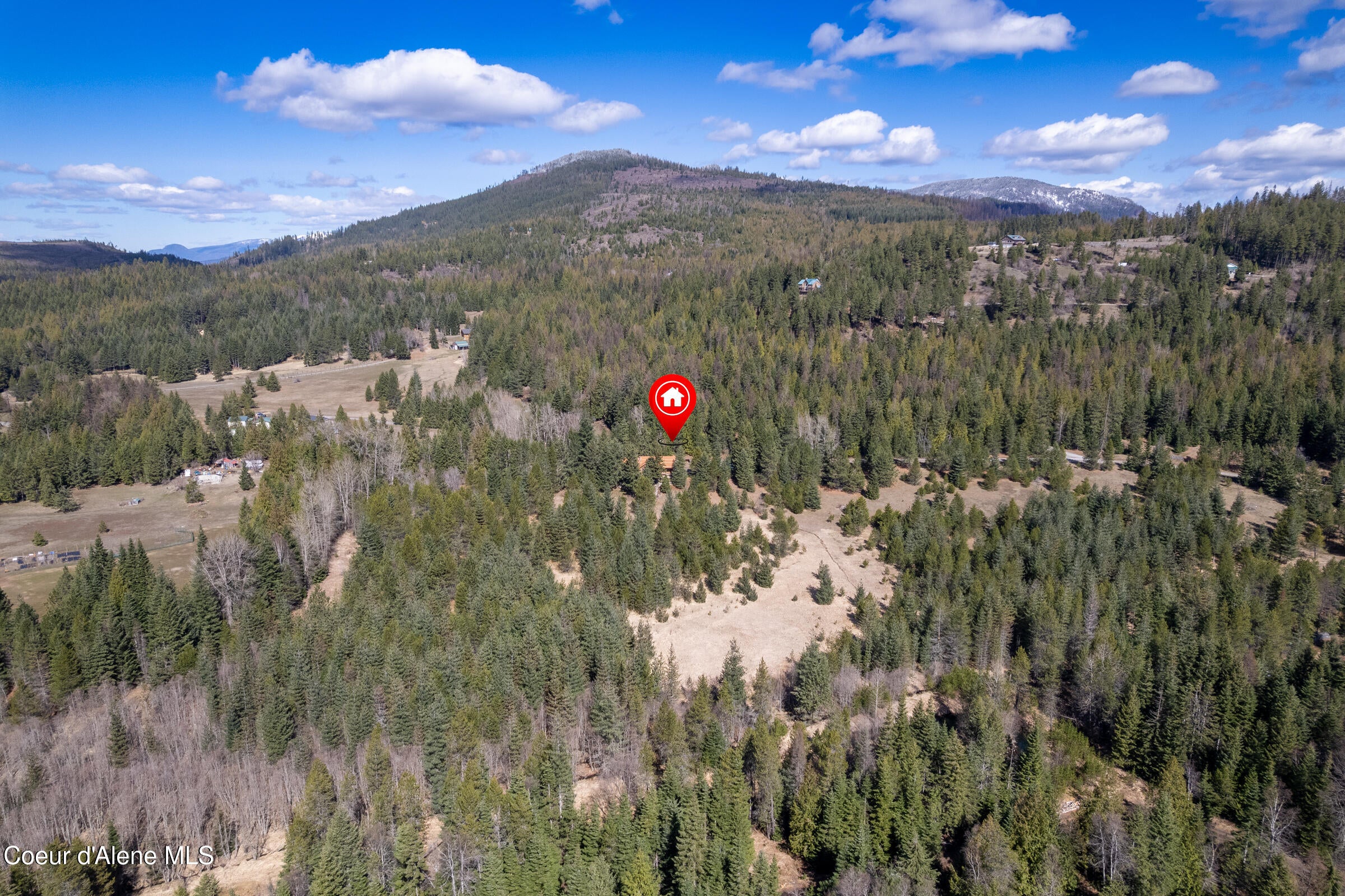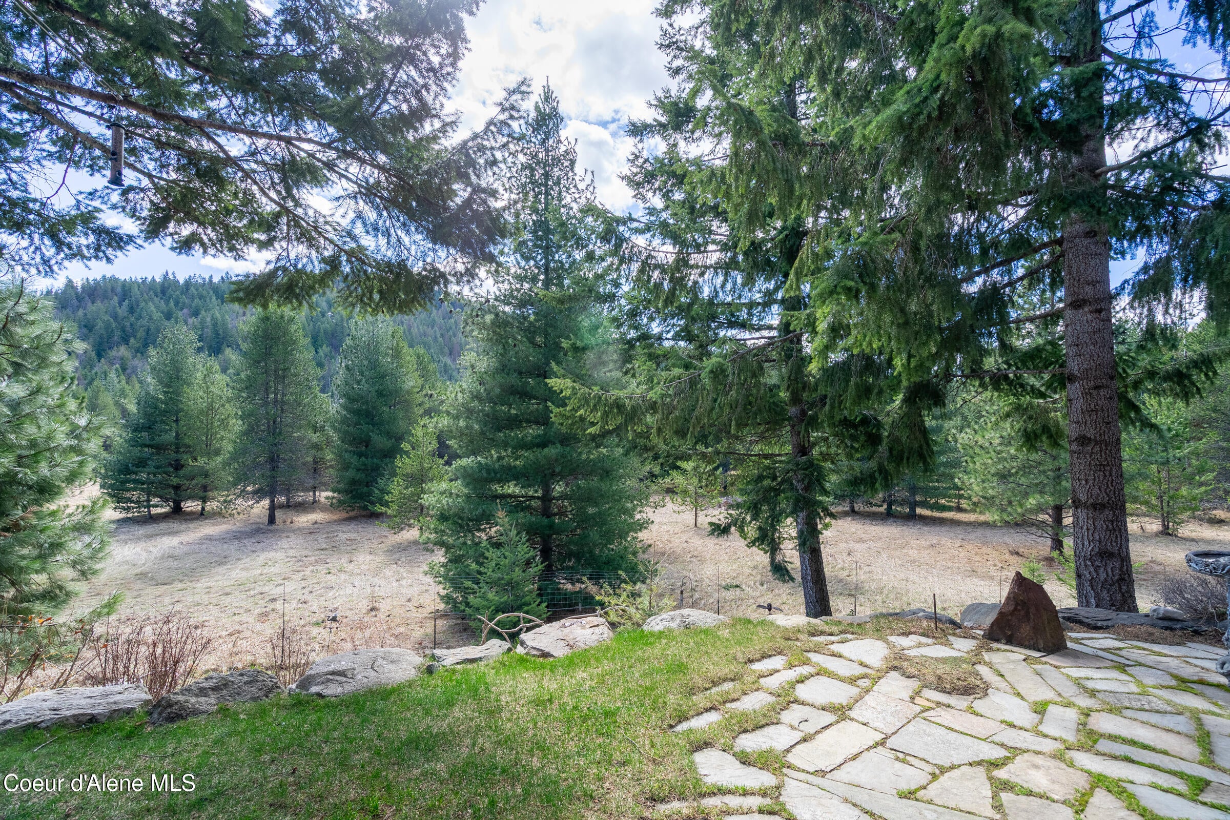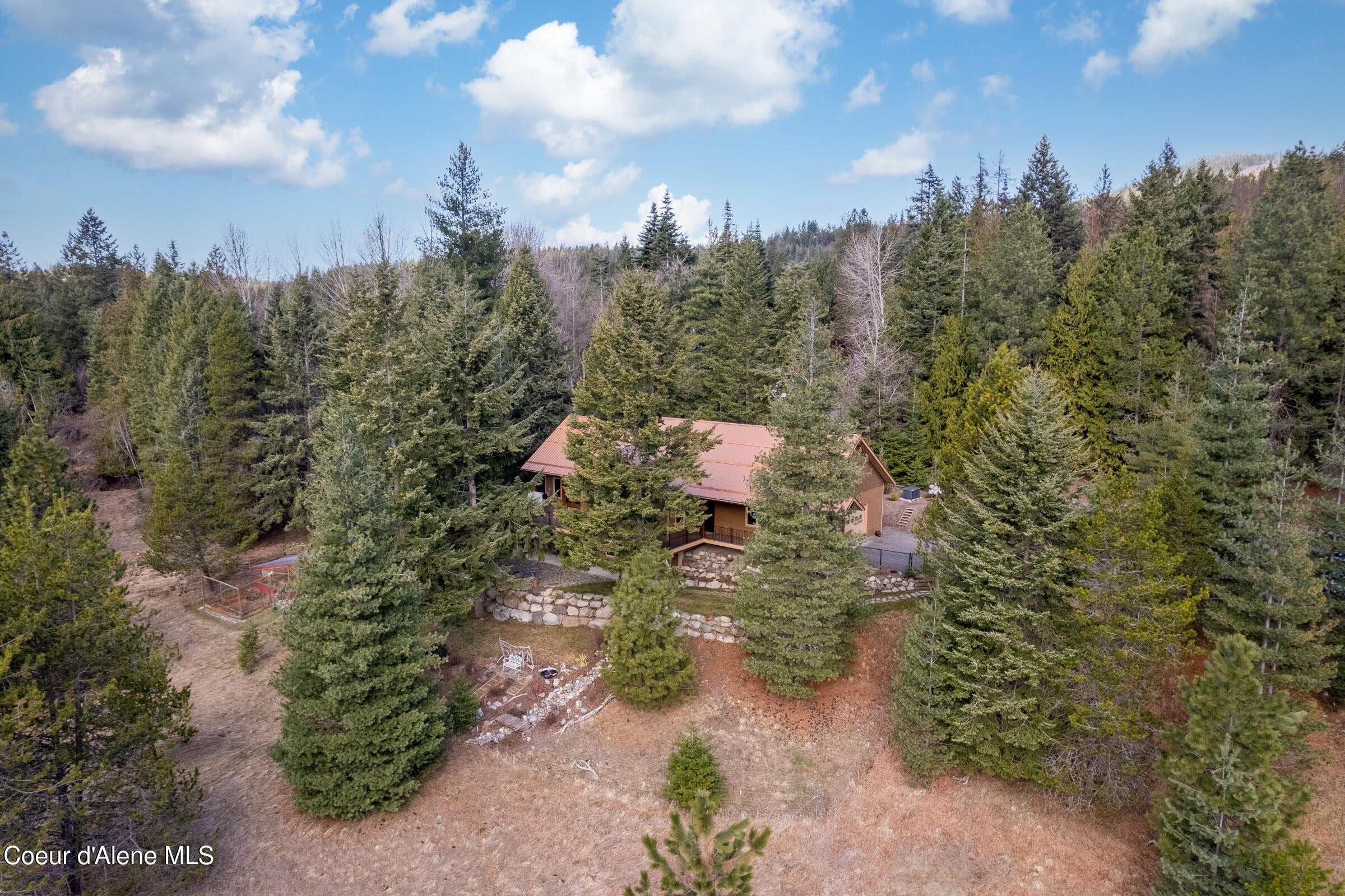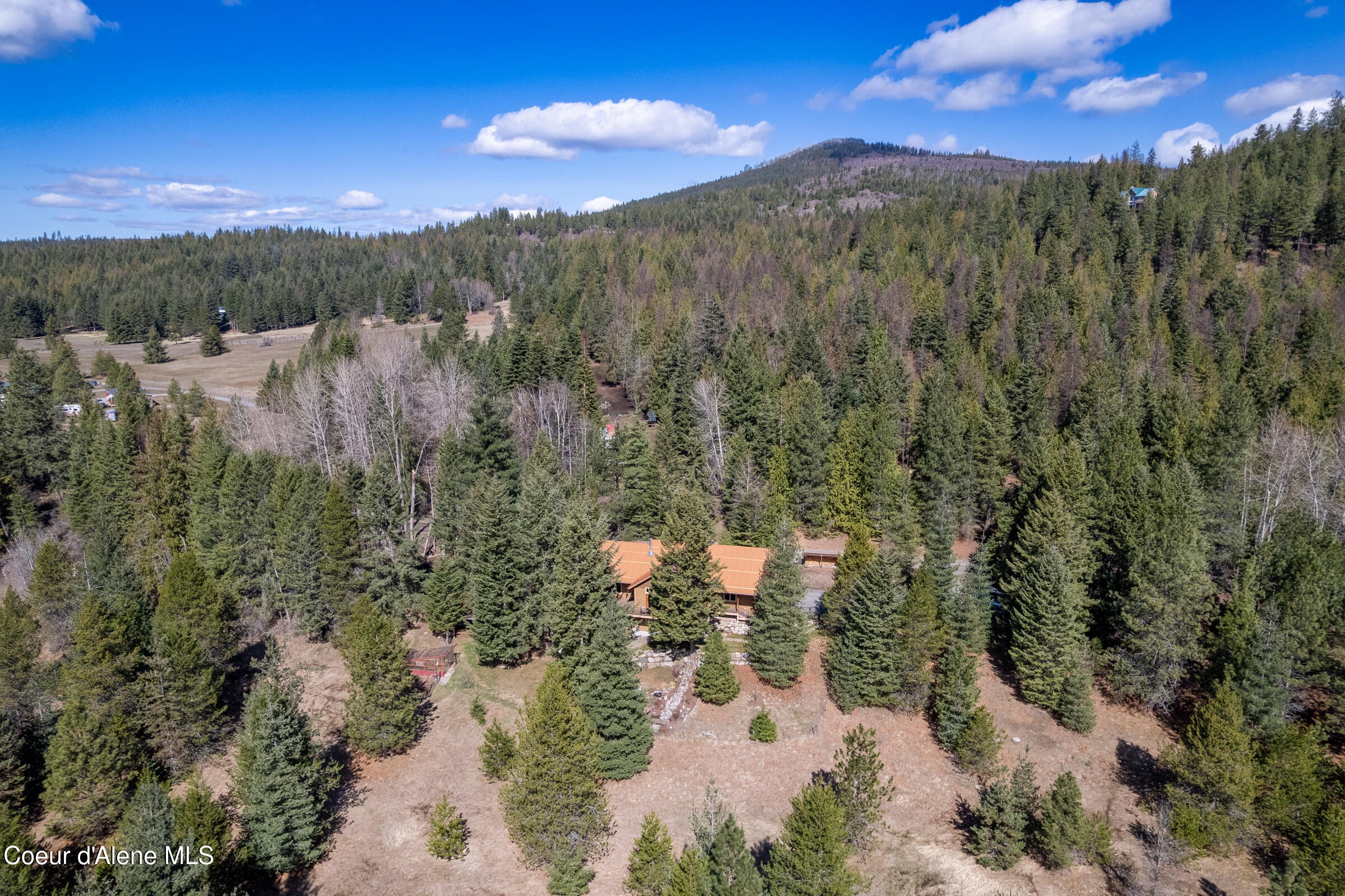 Custom-built home on 13.59 private, treed acres in the highly desirable Careywood area, ideally located between Coeur dAlene and Sandpoint. This North Idaho acreage property offers territorial views and a seasonal pond and creek, creating a peaceful, private setting. Vaulted tongue and groove ceilings, expansive windows, and a floor-to-ceiling stone fireplace anchor the open-concept living space.