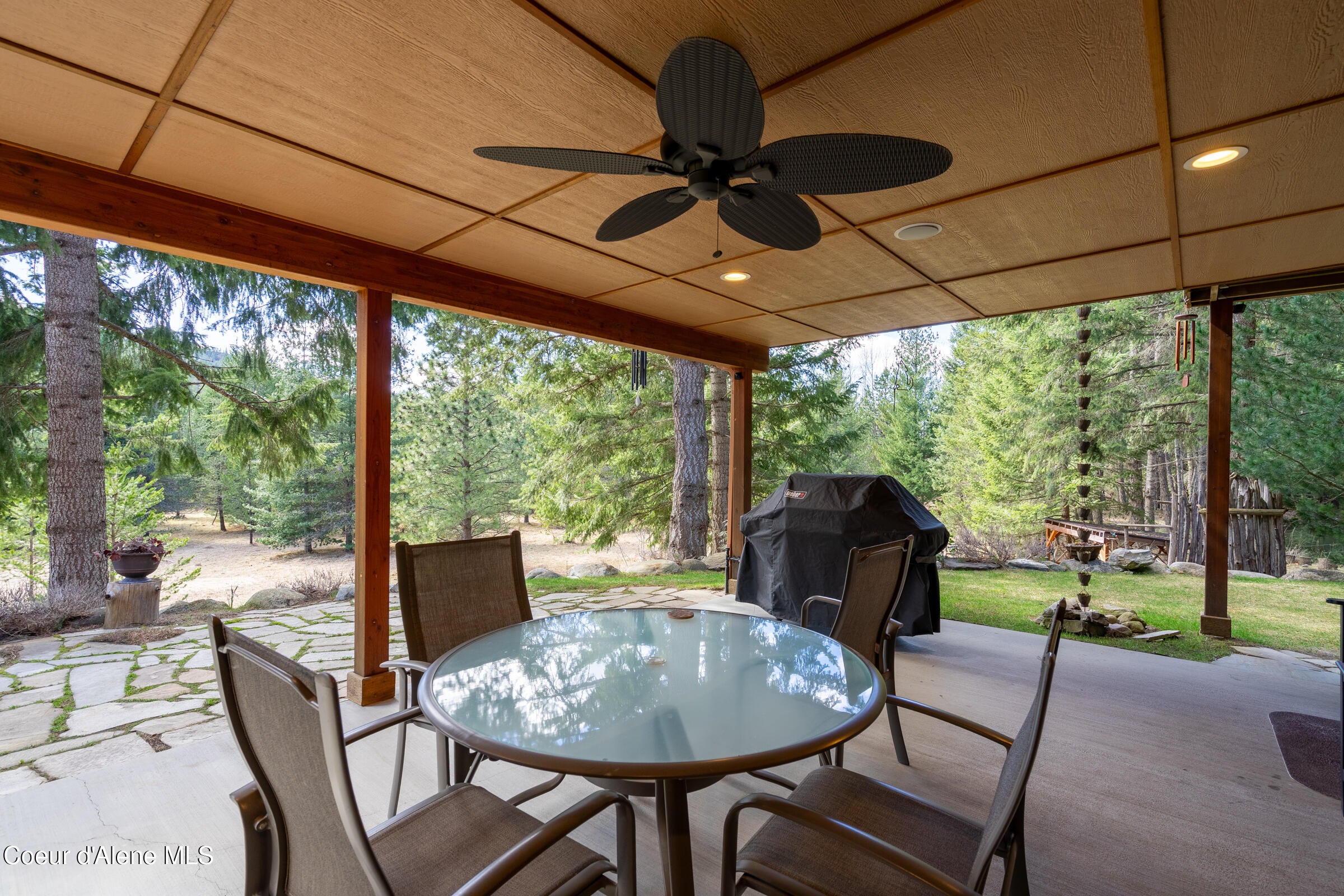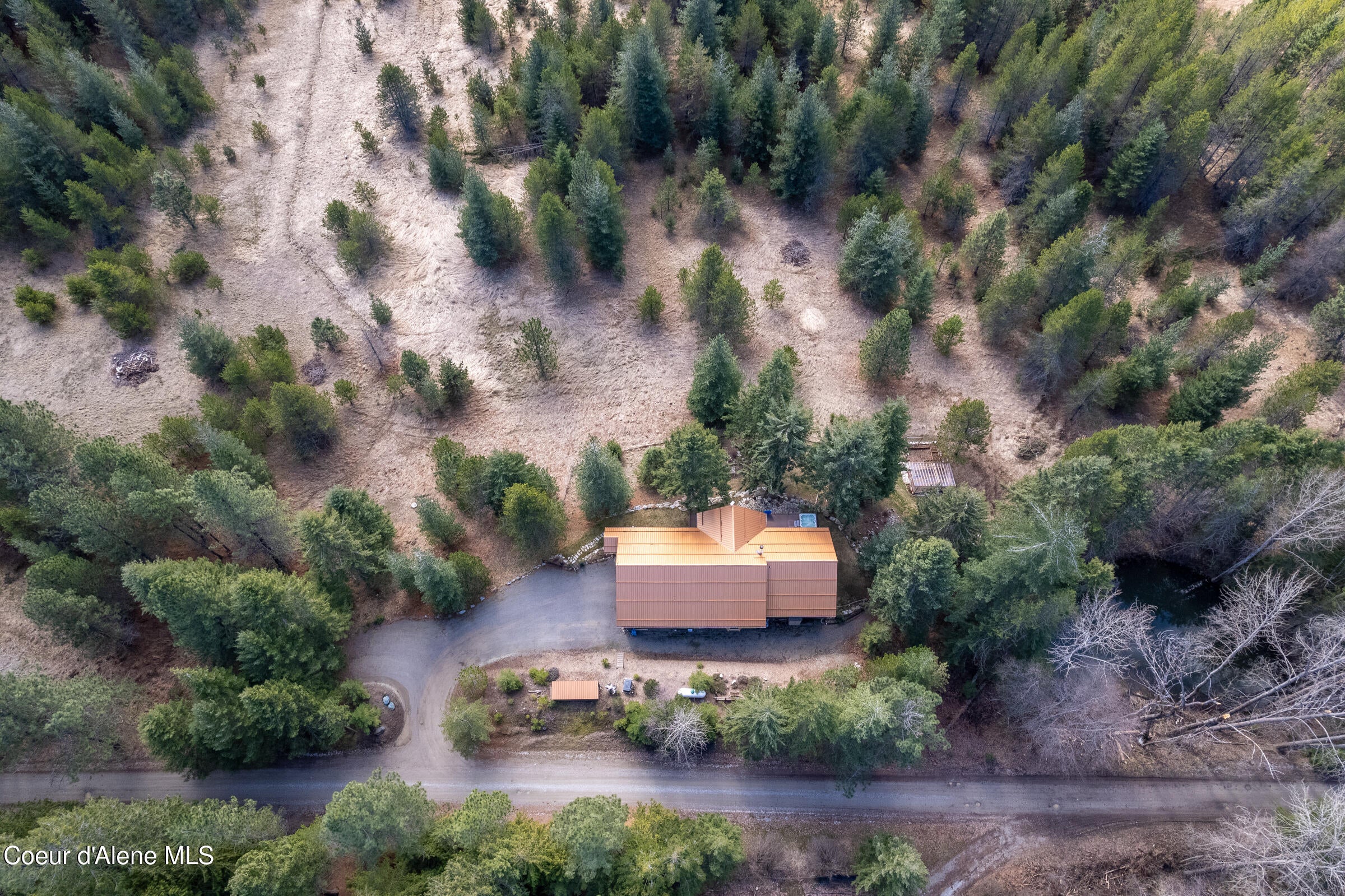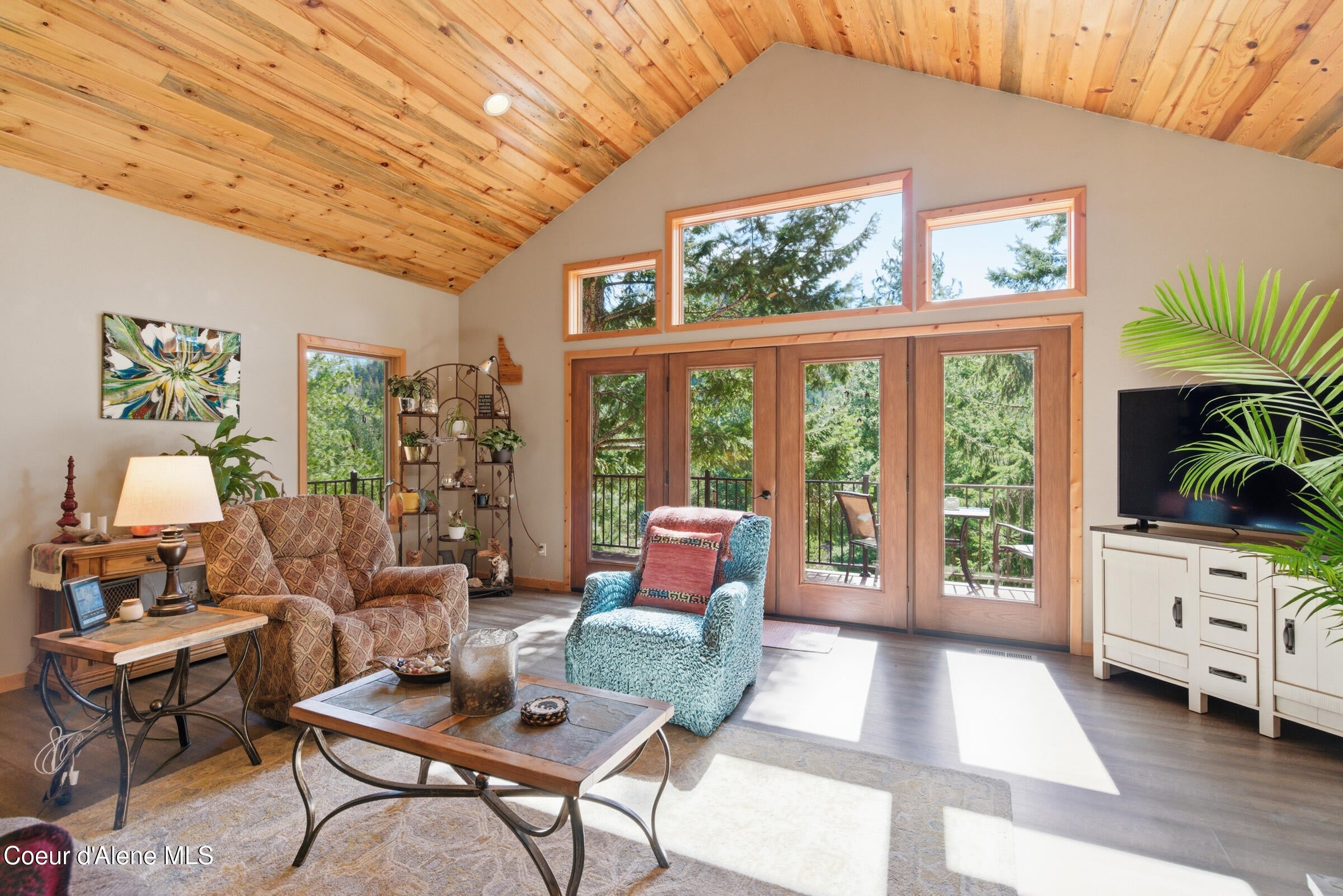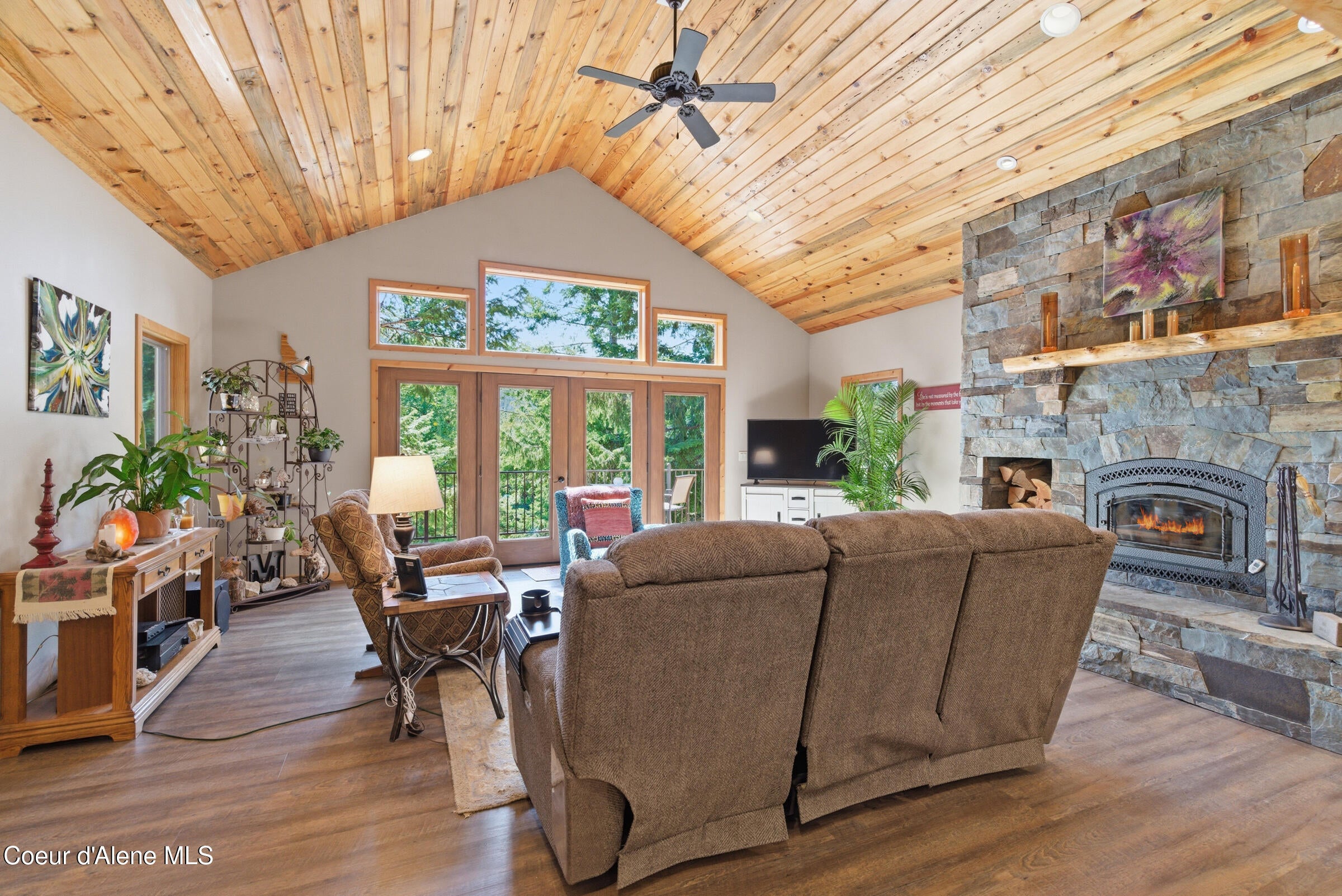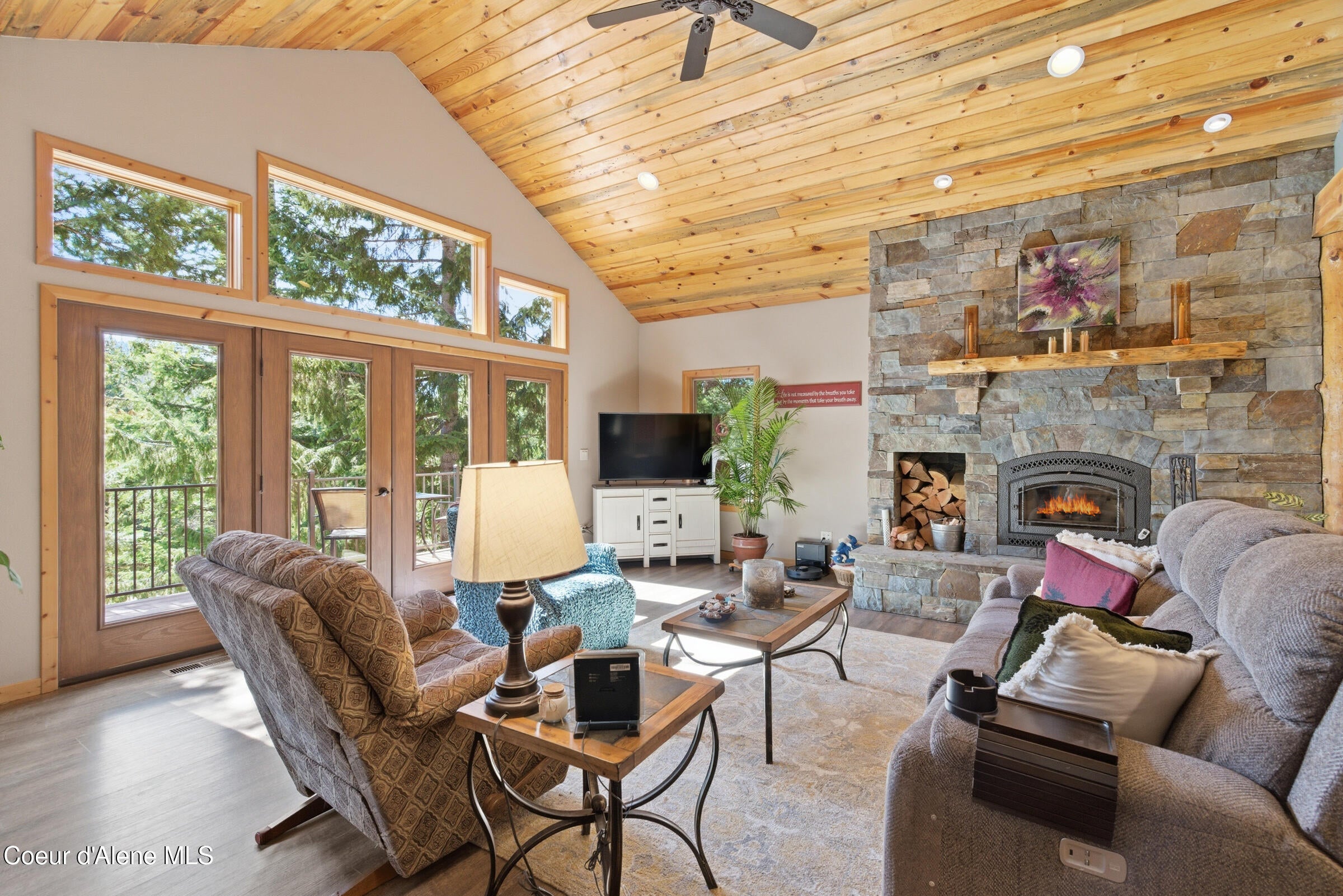 Custom-built home on 13.59 private, treed acres in the highly desirable Careywood area, ideally located between Coeur dAlene and Sandpoint. This North Idaho acreage property offers territorial views and a seasonal pond and creek, creating a peaceful, private setting. Vaulted tongue and groove ceilings, expansive windows, and a floor-to-ceiling stone fireplace anchor the open-concept living space.
