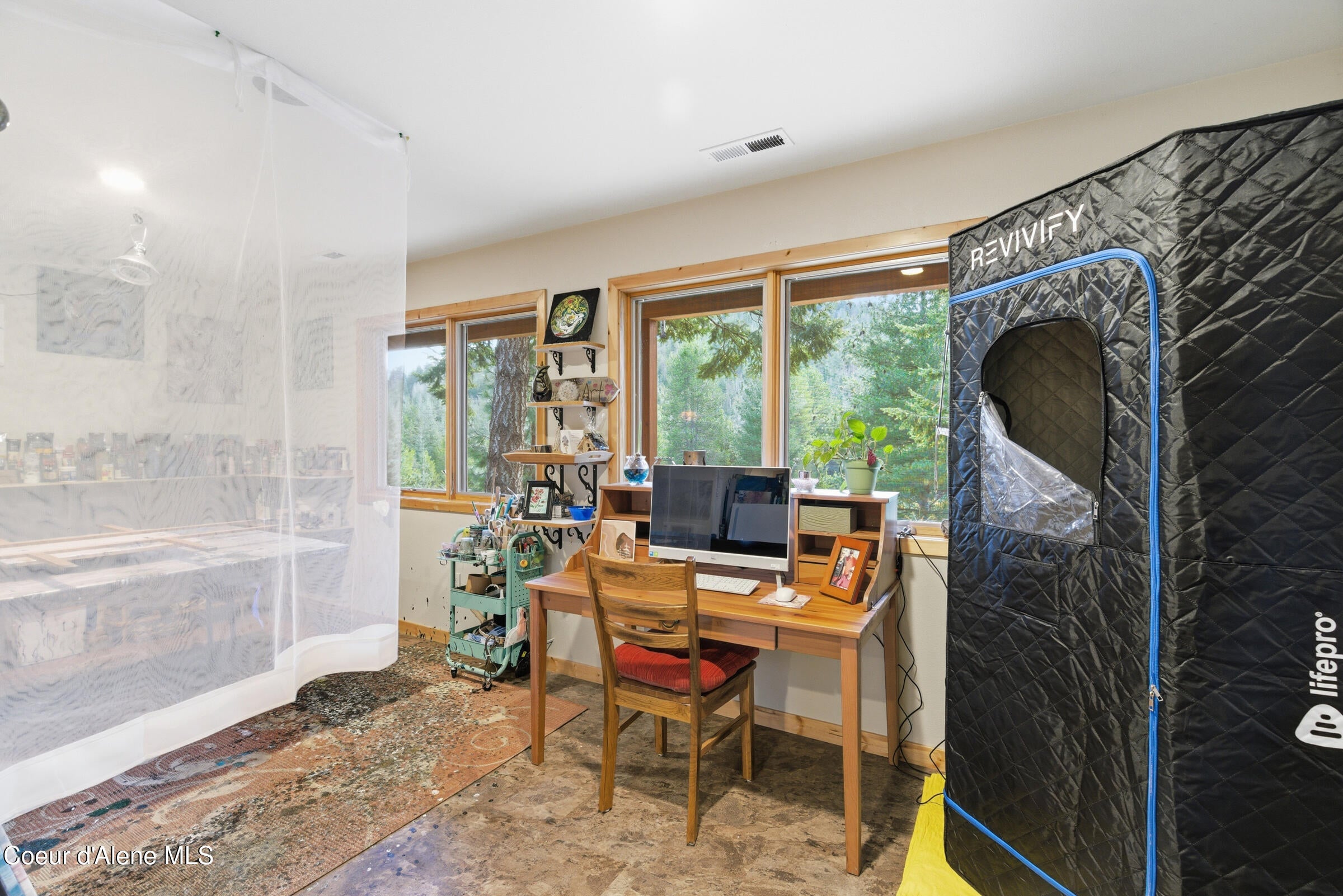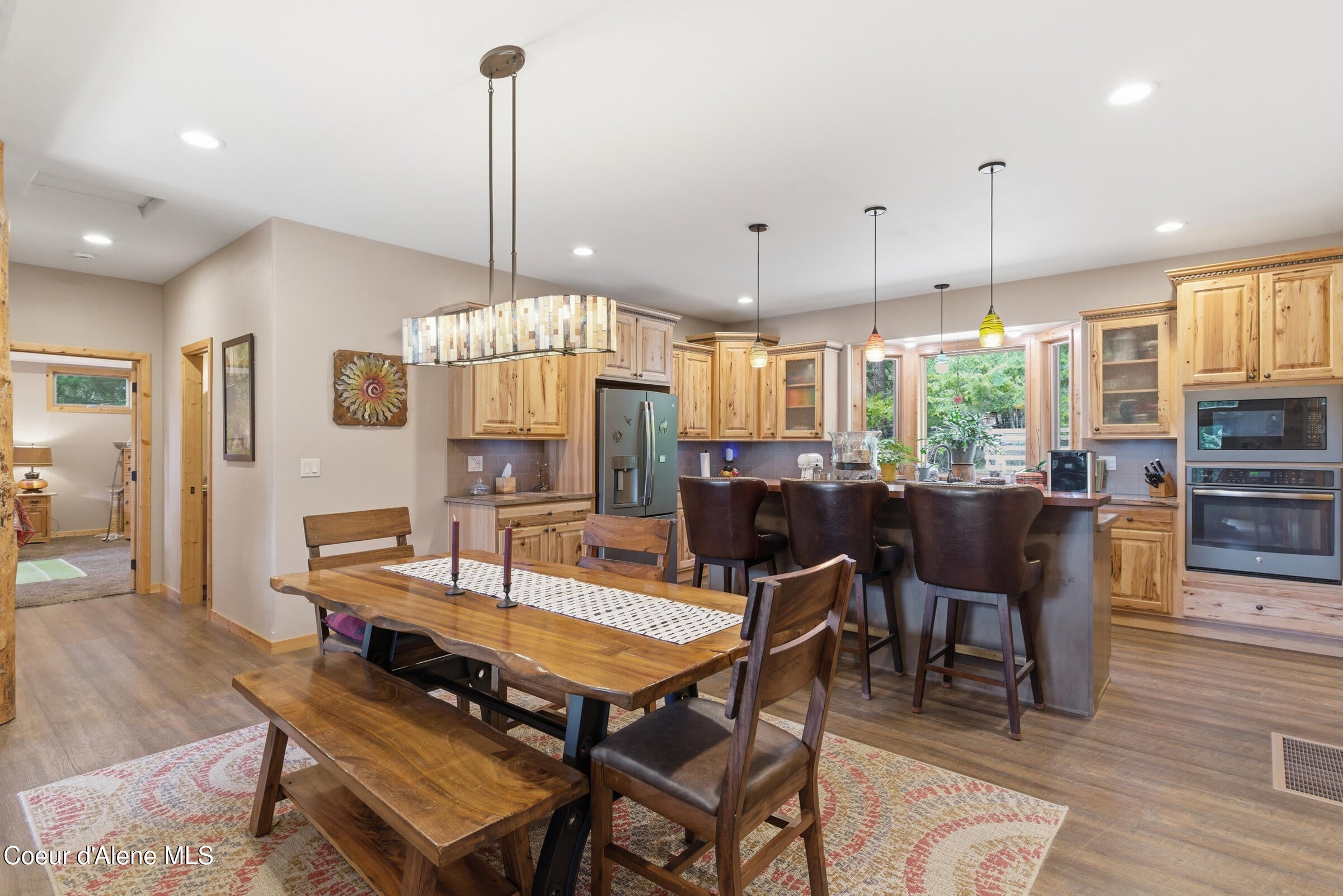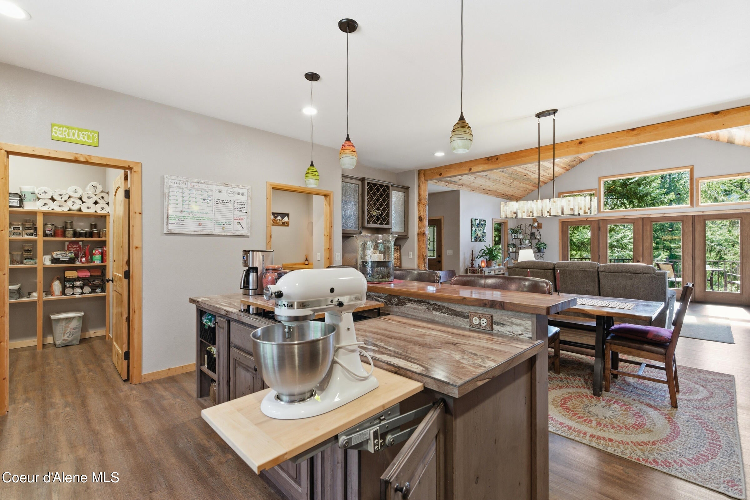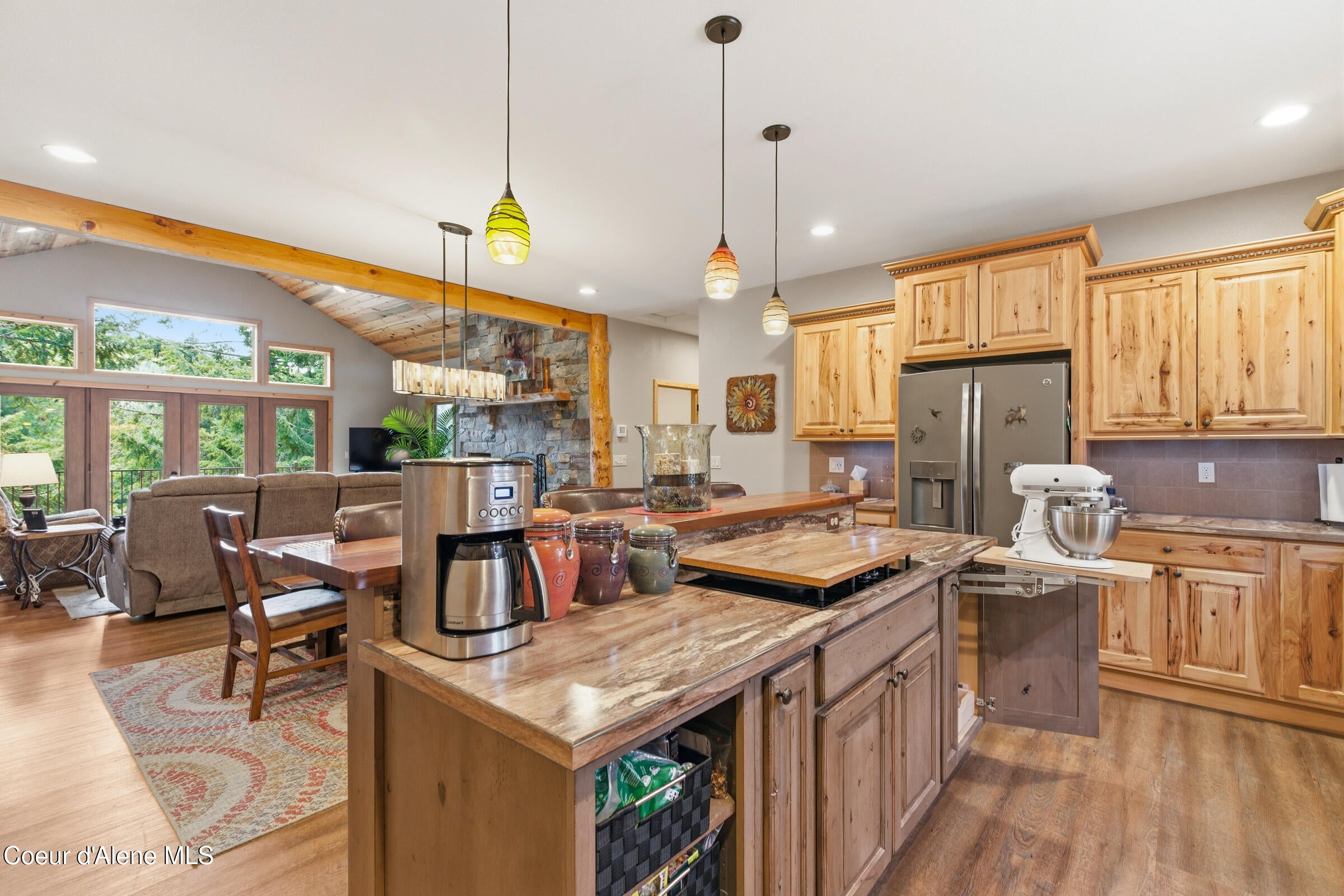 Custom-built home on 13.59 private, treed acres in the highly desirable Careywood area, ideally located between Coeur dAlene and Sandpoint. This North Idaho acreage property offers territorial views and a seasonal pond and creek, creating a peaceful, private setting. Vaulted tongue and groove ceilings, expansive windows, and a floor-to-ceiling stone fireplace anchor the open-concept living space.