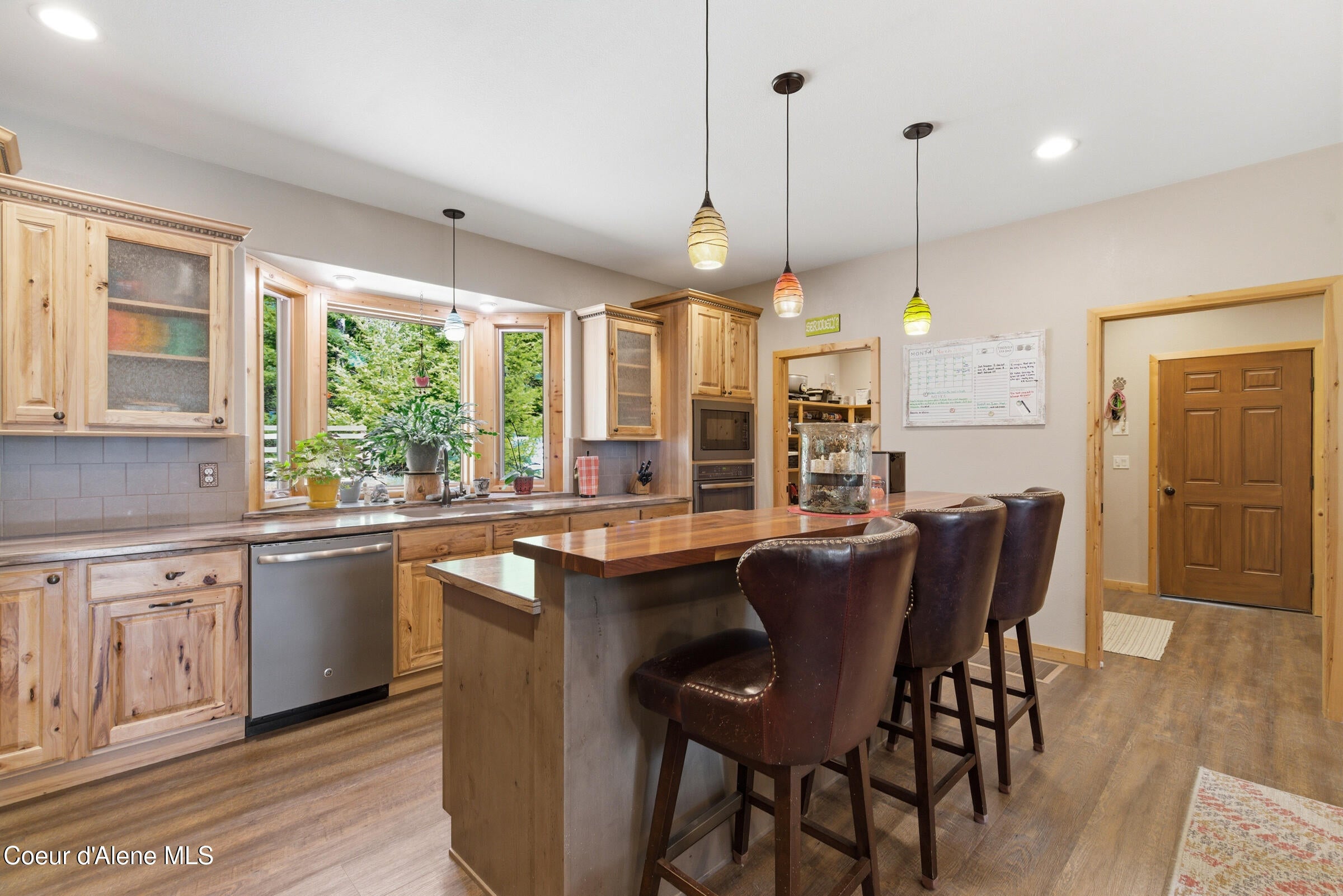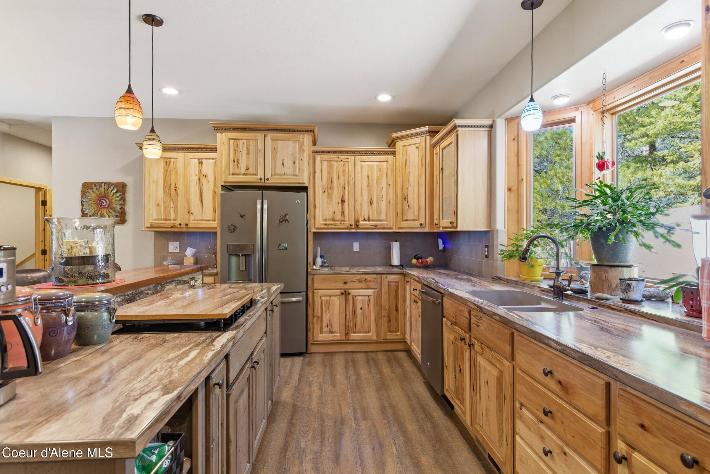 Custom-built home on 13.59 private, treed acres in the highly desirable Careywood area, ideally located between Coeur dAlene and Sandpoint. This North Idaho acreage property offers territorial views and a seasonal pond and creek, creating a peaceful, private setting. Vaulted tongue and groove ceilings, expansive windows, and a floor-to-ceiling stone fireplace anchor the open-concept living space. The kitchen features custom cabinetry, a walk-in pantry, large island, and custom walnut countertops at the kitchen bar and wine bar. The primary suite includes a spa-like bath with soaking tub, tile shower, and dual vanities. Lower level offers a second kitchen, living area, bedrooms, bath, and private entrance. Enjoy a large deck, covered patio, private hot tub, and outdoor shower surrounded by trees, plus greenhouse, garden, and oversized garage. Truly a quiet paradise.