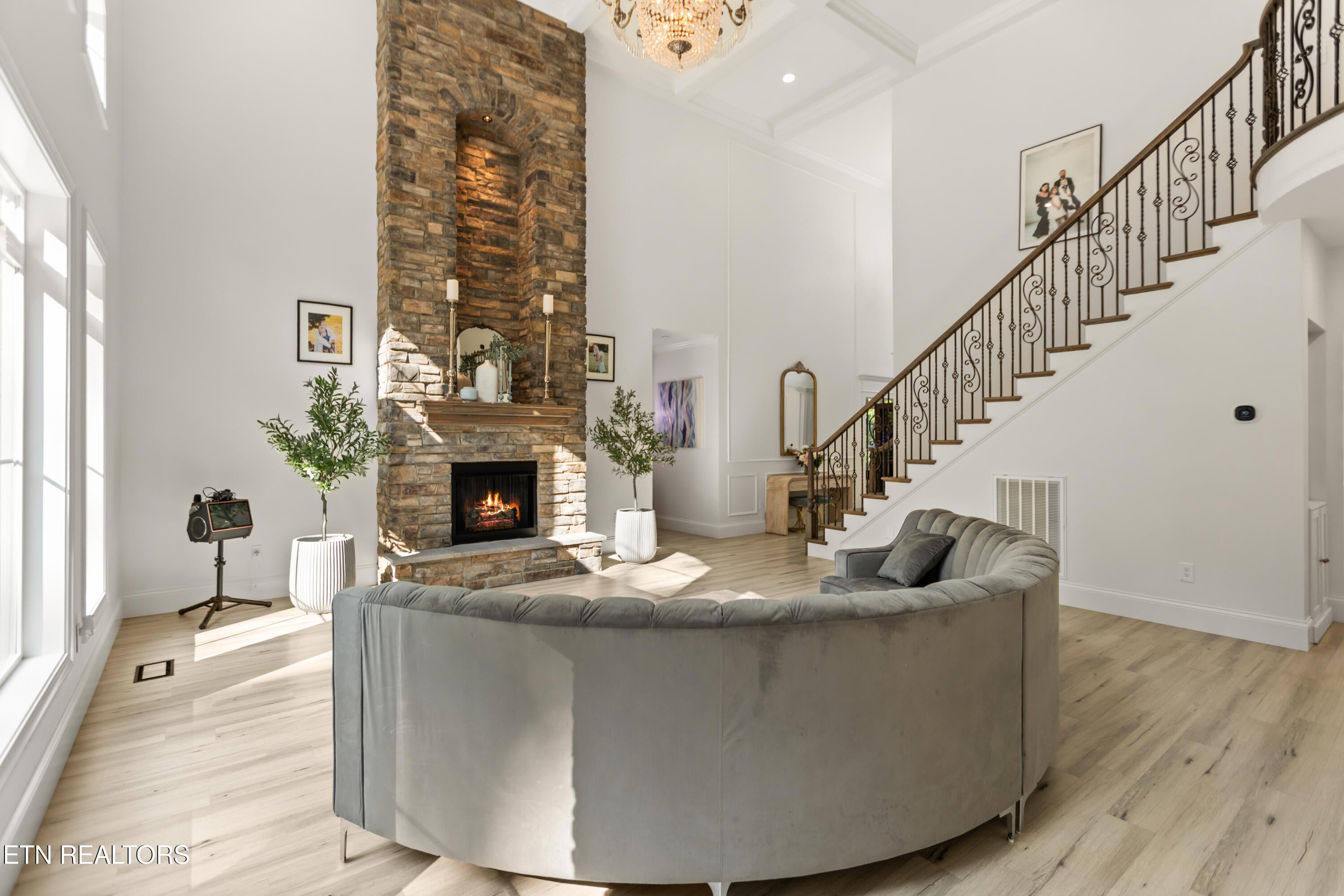 Experience unmatched privacy and luxury on over 2 acres in this one-of-a-kind estate, perfectly situated in mature trees for 360 degree seclusion yet unparalleled convenience--just a couple minutes from Sams Club, Walmart, Target, Aldi, I-40 and I-640 Highways, 10 min to Downtown and offering the closest access Knoxville could provide to Sevierville and Gatlinburg that makes LOCATION OF THIS HOUSE UNIQUE AND INCOMPARABLE.This excellently maintained 2021 year build home feels like brand new, while benefiting from established, beautifully manicured landscaping and an abundance of decorative trees lining the driveway--creating the feeling of arriving at a private enchanted estate.The use of natural stone and brick creates a timeless, castle-like aesthetic, while steep roofs and ornate detailing evoke a storybook chteau. Enlarge windows illuminate the home, showcasing customized, designer-selected details throughout every corner of this remarkable property.A formal dining room with city views provides an elegant setting for hosting memorable dinners, where evening lights and scenic vistas create a refined yet inviting atmosphere.The main-level primary suite is a true hotel-style retreat, featuring dual his-and-hers closets, a spa-like bath, its own private fireplace, and a dedicated relaxation area with a massage chair that transfers to the new owner, creating an exceptional space to unwind in comfort and privacy.A separate, custom-built indoor wet and dry sauna elevates the wellness experience, featuring a powerful Harvia electric heater, Italian tile, and authentic wood imported from Finland--a rare and thoughtfully executed luxury feature.The chefs kitchen is equipped with GE Profile appliances, an oversized island, and a gas connection option for a preferred range, designed for both everyday living and entertaining. The main living space is anchored by a dramatic 20-foot tall natural stone gas fireplace, while just beyond, a covered outdoor patio extends the living area outdoors, featuring an outdoor kitchen with an integrated KitchenAid grill, sink, and ceiling fan with lighting--perfect for year-round enjoyment. From seasonal hill sunrises to city lights at dusk, every detail invites you to slow down and savor the moment. This estate blends privacy, high-end craftsmanship, and livable elegance in one of the most convenient location of East Tennessee.Enjoy the freedom to live your lifestyle your way--complete with an on-site EV charger for both electric vehicles and RVs, and the rare benefit of no HOA and no restrictions.Schedule your private showing today and experience why this Skyview gem offers the best and unique location and lifestyle in the area with no competitors on the market.Buyers to verify all info*