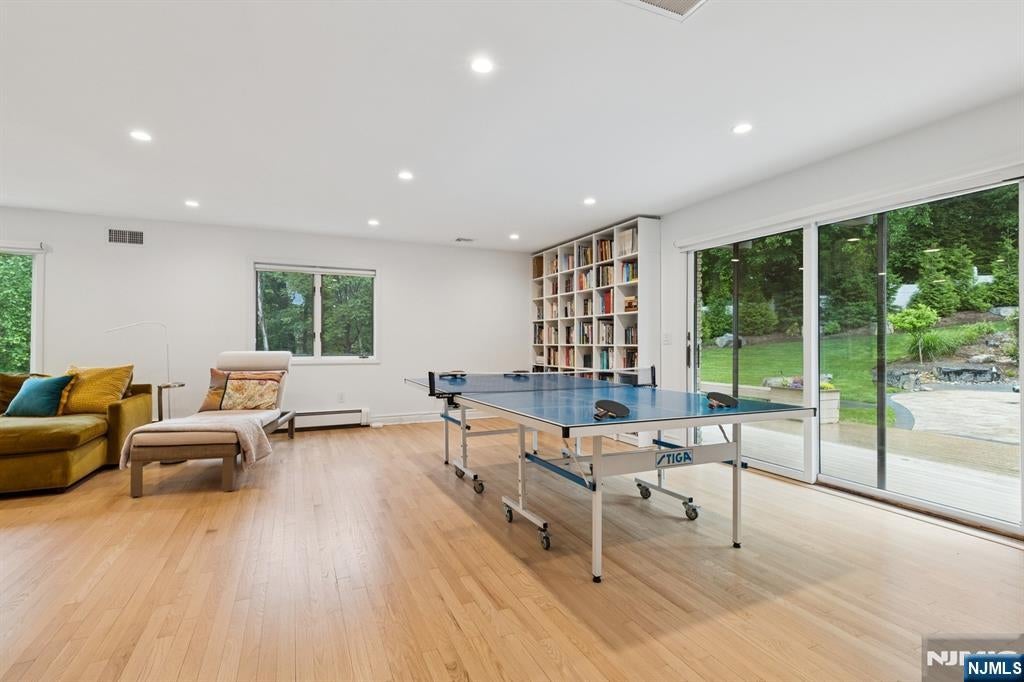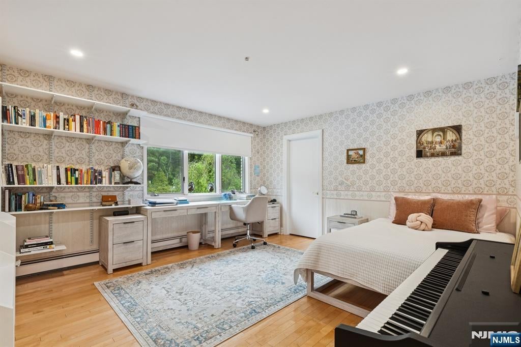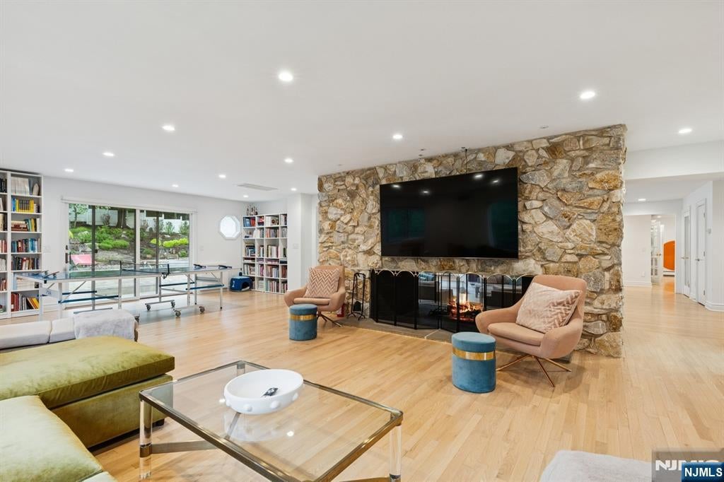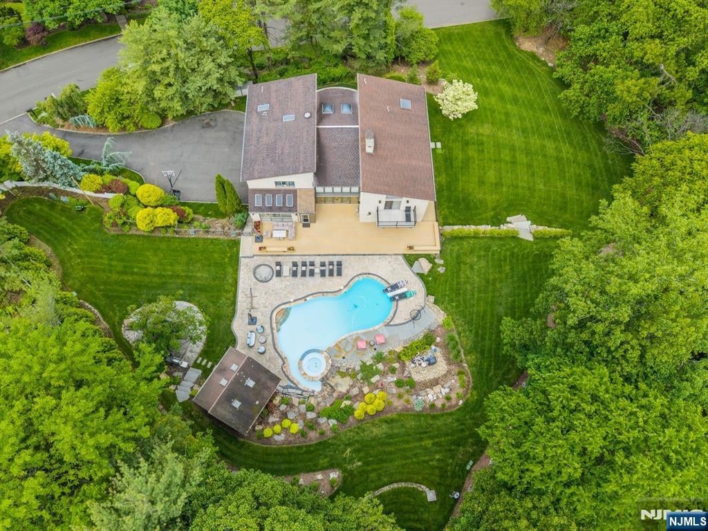 Built in 2005, this approx. 4,000 SF, 5-bedroom, 3.5-bath young Ridgewood colonial sits on a deep, park-like property with front and rear yards and a detached two-car garage. A welcoming front porch leads into the living and dining rooms, with a classic turned staircase featuring a mid-landing for a more comfortable ascent. The family room features cathedral ceilings, fireplace, and abundant natural light, with an adjoining private library. The kitchen is designed for everyday use, offering a generous island, ample cabinetry, and a bright dining area with direct access to the backyard. A powder room completes the first floor. The second floor includes a primary suite with a large bedroom, oversized walk-in closet, and a bath with tub and separate shower, along with two additional bedrooms and a full bath. The third floor offers two more bedrooms with built-in window seats and a shared bath. Hardwood floors throughout. A full unfinished basement with good ceiling height offers excellent potential for future use. Close to Saddle River County Park and NJ Transit bus #163 for NYC commuting. A solid, young home offering the benefits of newer construction rarely found in the area, with expansion potential in a convenient location.