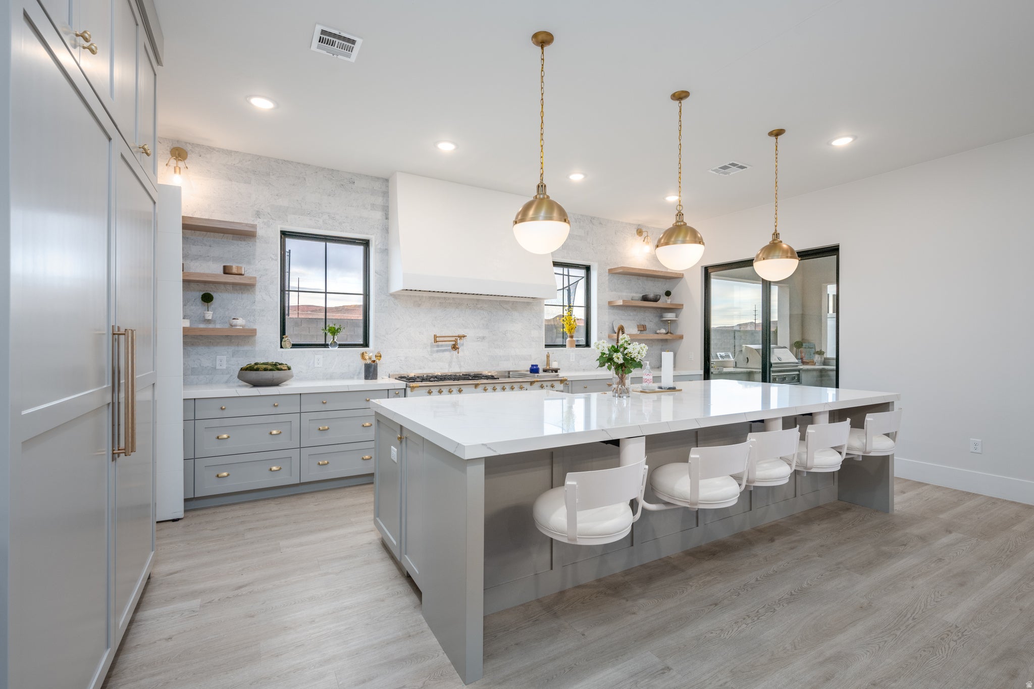 Modern design meets elevated desert living in this stunning 5-bedroom luxury home in St. George, thoughtfully crafted for entertaining and unforgettable gatherings. Clean architectural lines, expansive windows, and striking contemporary finishes create a home that feels both sophisticated and welcoming.