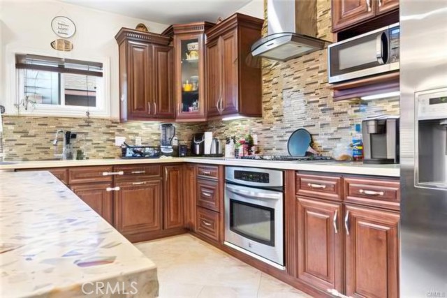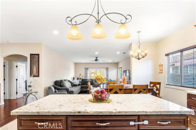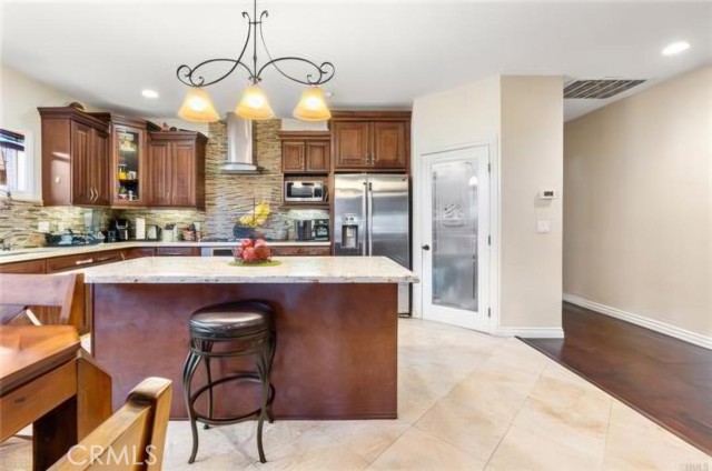 Beautifully upgraded home in Yorba Linda offering 4 bedrooms, 2 bathrooms, and approximately 1,843 square feet of living space on a generous 7,800 square foot corner lot. The inviting living room sets a warm tone, leading into a well-appointed kitchen featuring custom cabinetry, granite countertops, stainless steel appliances, a pantry, and a breakfast bar that opens seamlessly to the family room.