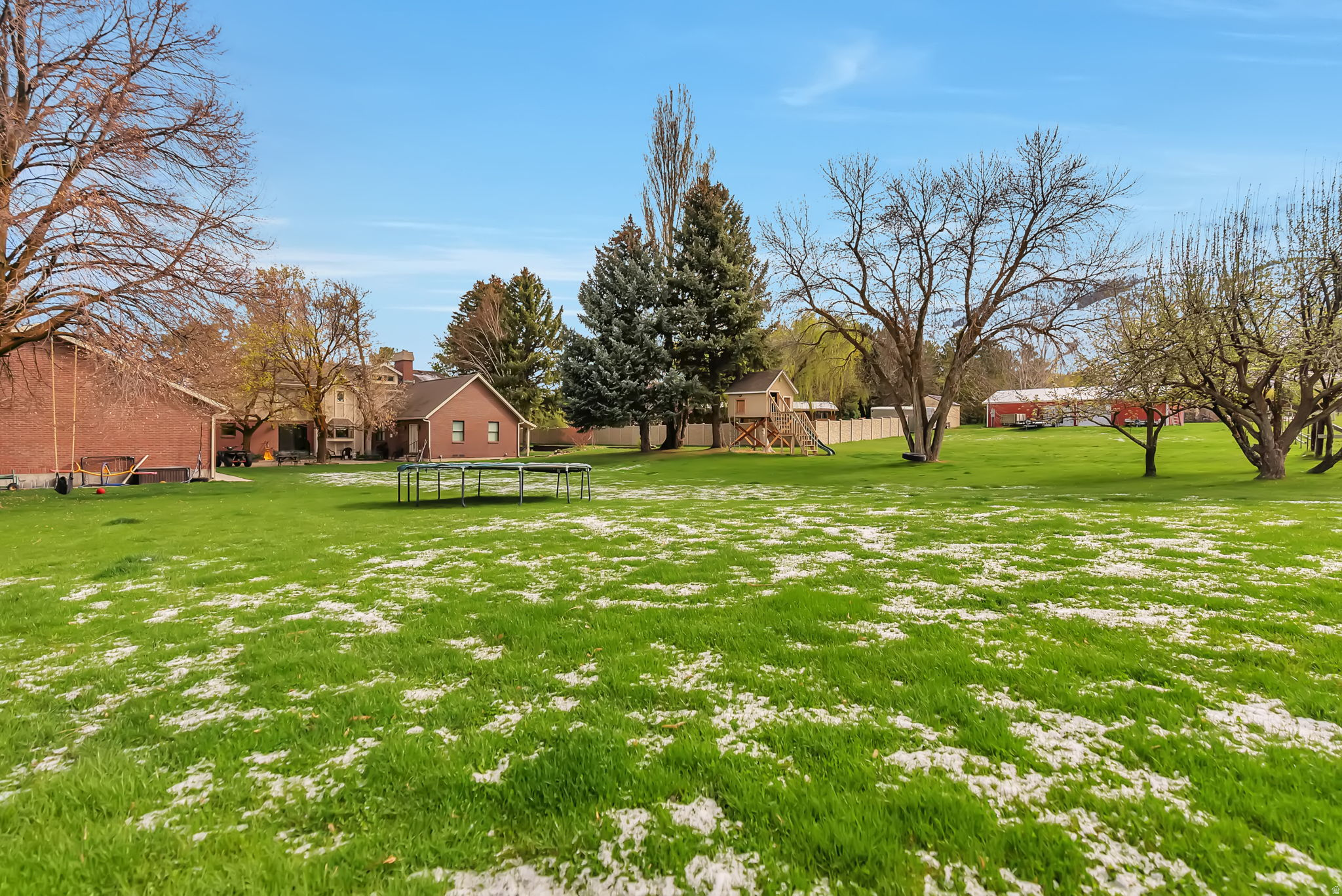 Come enjoy this 2.58 Acre estate with many cozy spaces to help you feel at home! Includes a large work-at-home office, study, 3 bed mother-in-law apt. custom cabinetry, updated kitchen with granite, fitness center, separate dining rm with fireplace, massive great rm with separate walk-in closets in master suite. This home feels like home! Beautifully landscaped with variety of outbuildings, tennis court, huge wood shop, additional oversized all brick 2 car garage. Plan to work, play, relax, start a hobby farm or work with horses this property is ready for you! All listing data including measurements are provided as a reference only.