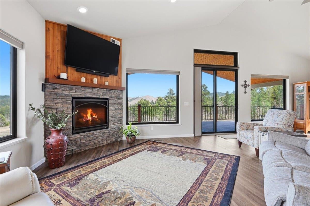 Listed by Britney Routh (605)641-2447 RE/MAX In The Hills. Welcome to this newer construction home built in 2024 located in the Brighter Day Subdivision just minutes from downtown Deadwood. This spacious home offers a private setting, flexible living spaces, and a seamless connection to its beautiful natural surroundings. The open floor plan is perfect for entertaining. This home offers 4 bedrooms, 3 bathrooms, a main floor laundry, two gas fireplaces, a newly finished basement and a 3 car garage, plus so much more. Step outside and fall deeper in love with this immaculate home. The covered deck offers the perfect place to enjoy the magnificent views of the Black Hills. The landscaping has been recently completed. Inside and out every detail has been carefully chosen. Give me a call today to set up a tour!