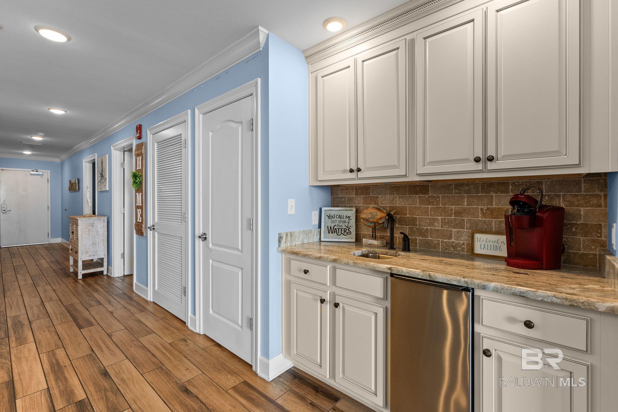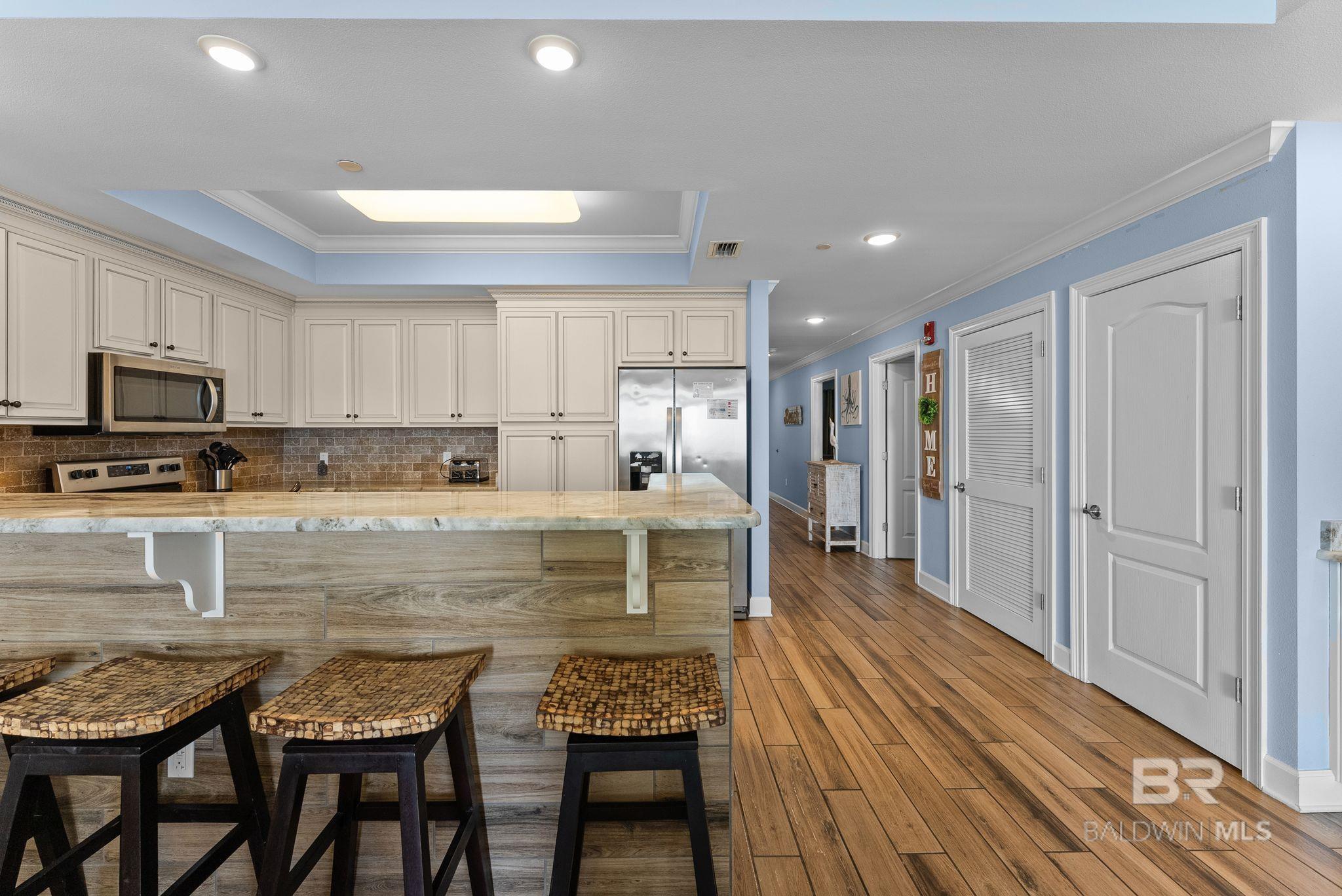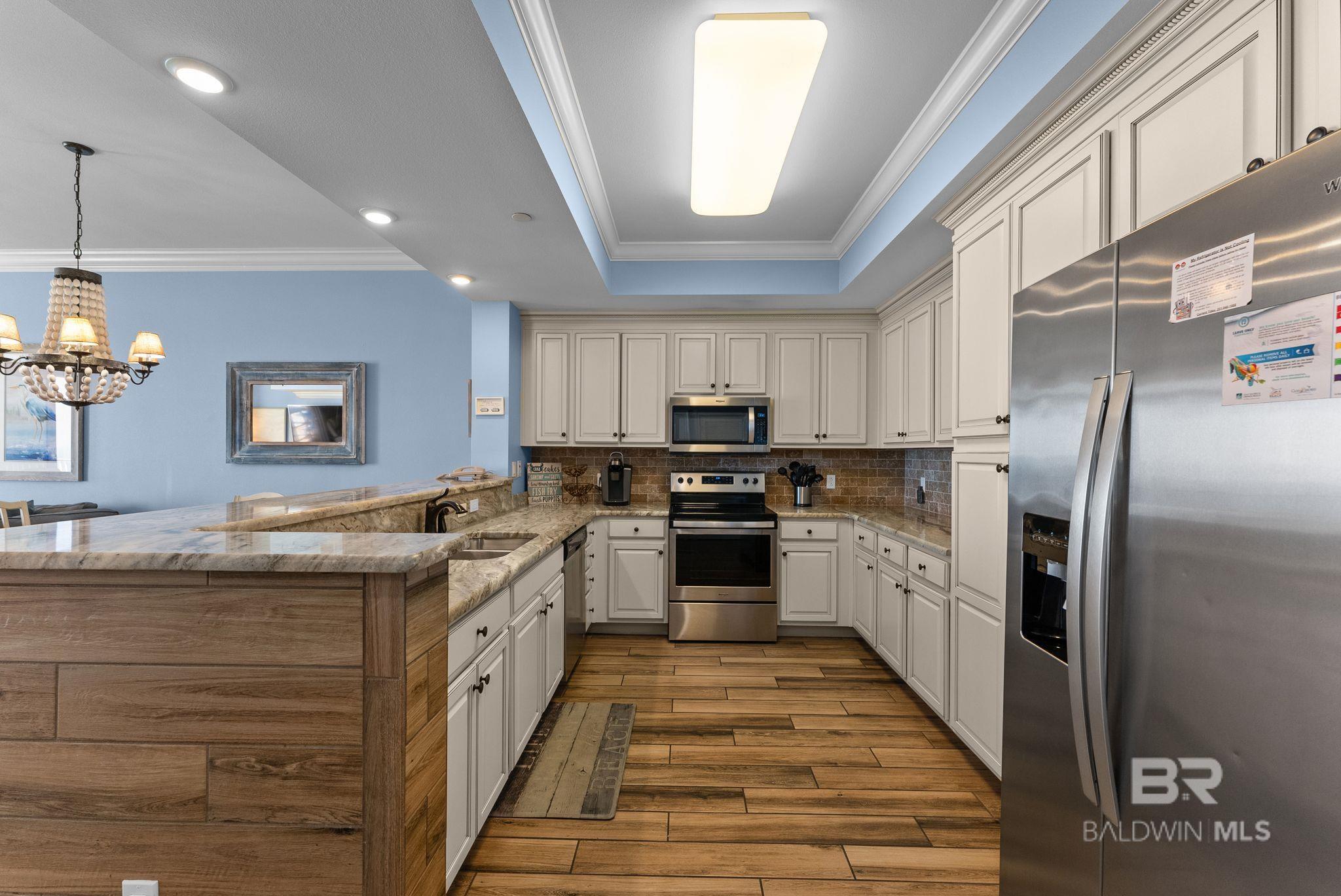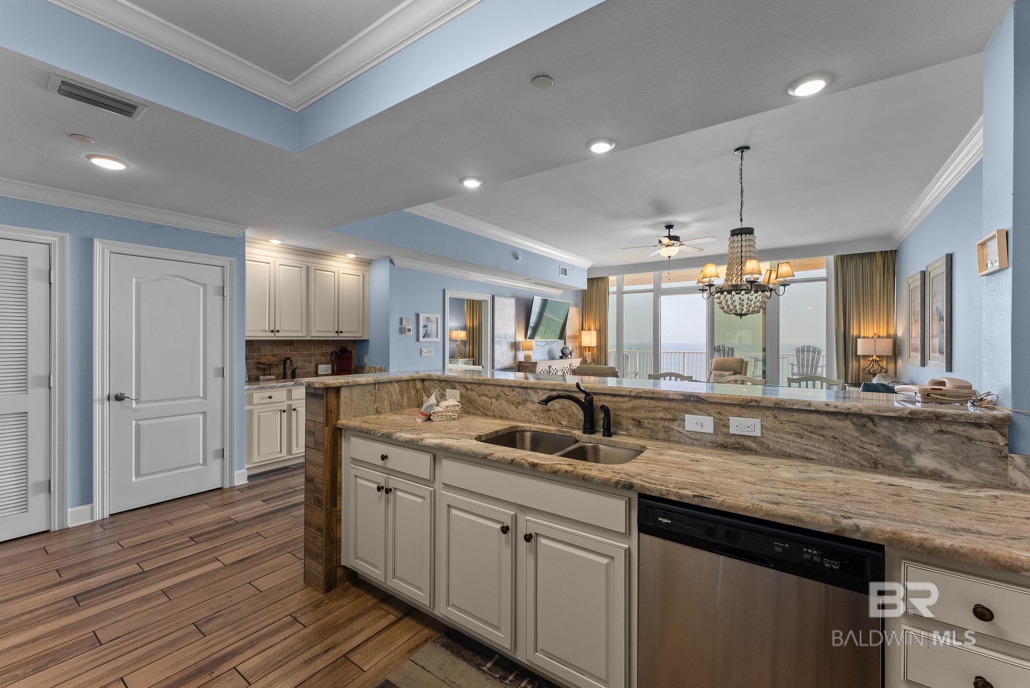 Enjoy direct gulf views from this fully furnished, turn-key 3-bedroom, 3-bathroom unit on the 18th floor of Phoenix Orange Beach.The unit features elegant granite countertops with a tiled backsplash, stainless steel appliances, and ample countertop space and cabinet storage.