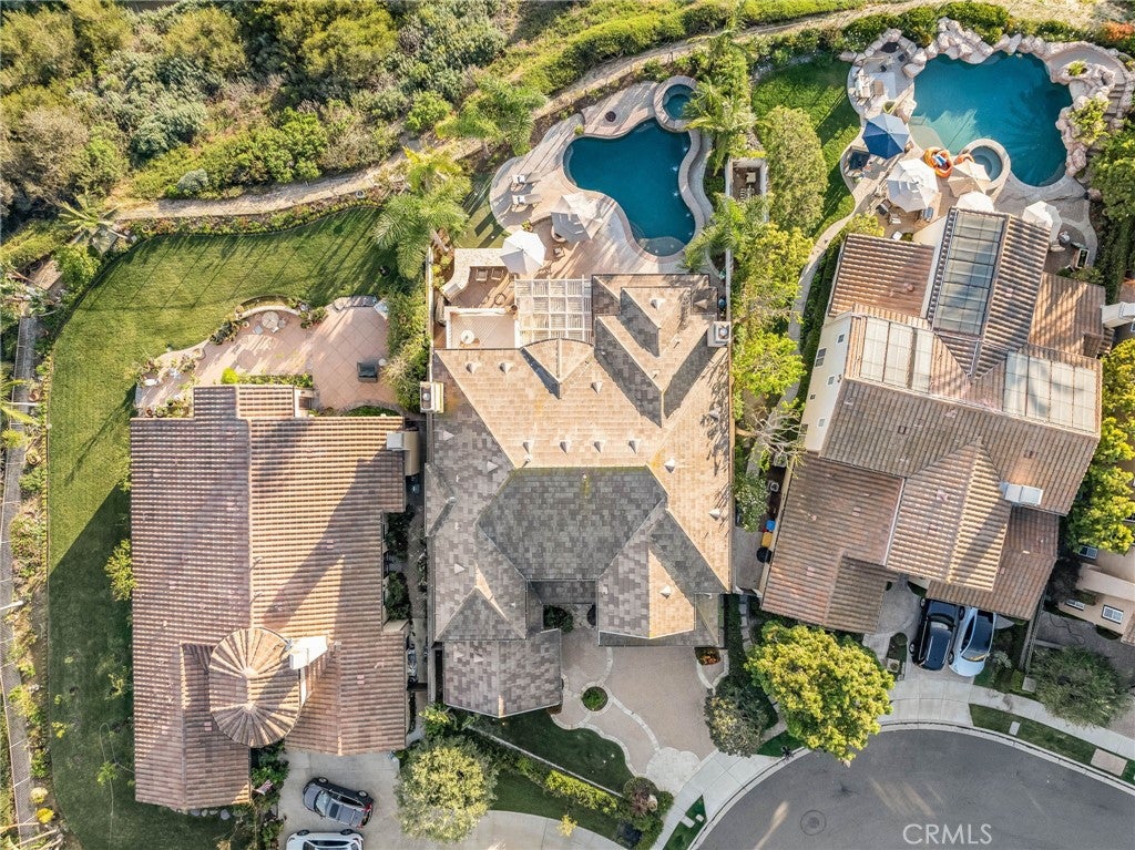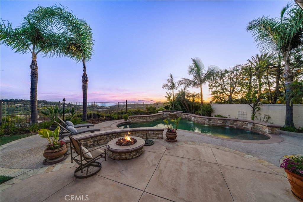 Stunning ocean view home in the highly sought after Pacifica Summit, ideally situated on a quiet cul-de-sac. This premium, rarely available lot showcases sweeping ocean, rolling hills, and sparkling city light views. The backyard is a true resort style paradise, complete with a saltwater pool and spa, built-in BBQ, putting green, and two fire pits.