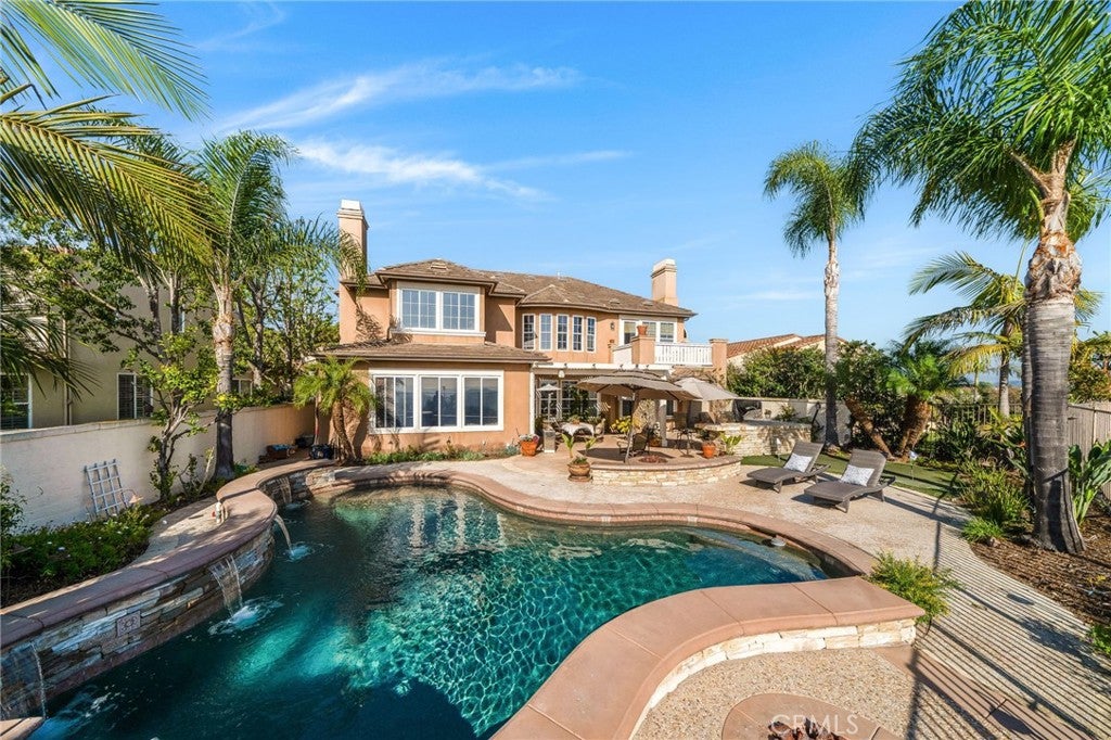Stunning ocean view home in the highly sought after Pacifica Summit, ideally situated on a quiet cul-de-sac. This premium, rarely available lot showcases sweeping ocean, rolling hills, and sparkling city light views. The backyard is a true resort style paradise, complete with a saltwater pool and spa, built-in BBQ, putting green, and two fire pits.An impressive floor plan welcomes you with a dramatic foyer featuring a circular rotunda and two fireplaces that add warmth and elegance throughout. The oversized kitchen is beautifully updated with quartz countertops, new white cabinetry, a coffee bar, and a large center island, seamlessly opening to the spacious family room. Additional living spaces include a formal dining room and a library/living room. A main-floor bedroom and full bath are tucked away in a private wing, ideal for guests or multi-generational living.Upstairs, the expansive primary suite offers a oversize retreat with a sitting area, private ocean-view balcony, walk-in closet, and a luxurious bath with soaking tub and dual vanity areas. Three additional bedrooms provide ample space, including one with an en-suite bath and two connected by a Jack and Jill bathroom. There is also a office tucked away at the top of the stairs which accommodates work from home or homework station. Embrace the Talega lifestyle an active, resort-inspired way of living in this premier master-planned coastal enclave. Enjoy miles of scenic hiking and biking trails, beautifully maintained community parks, and sparkling resort-style pools, sports courts, and community events. Just minutes from San Clemente beaches, downtown shopping and freeway access.