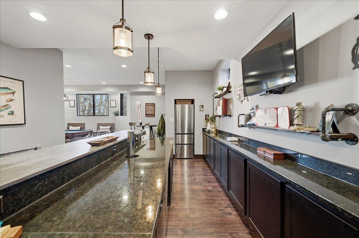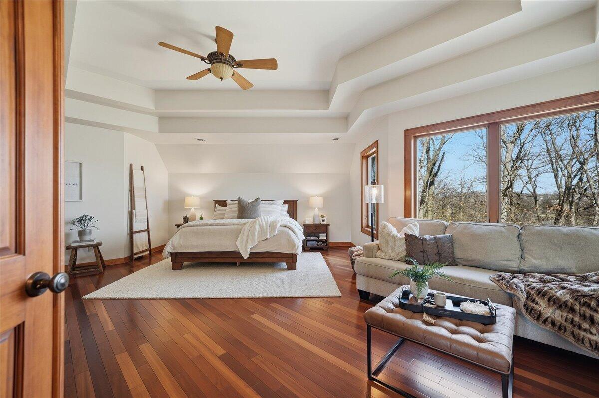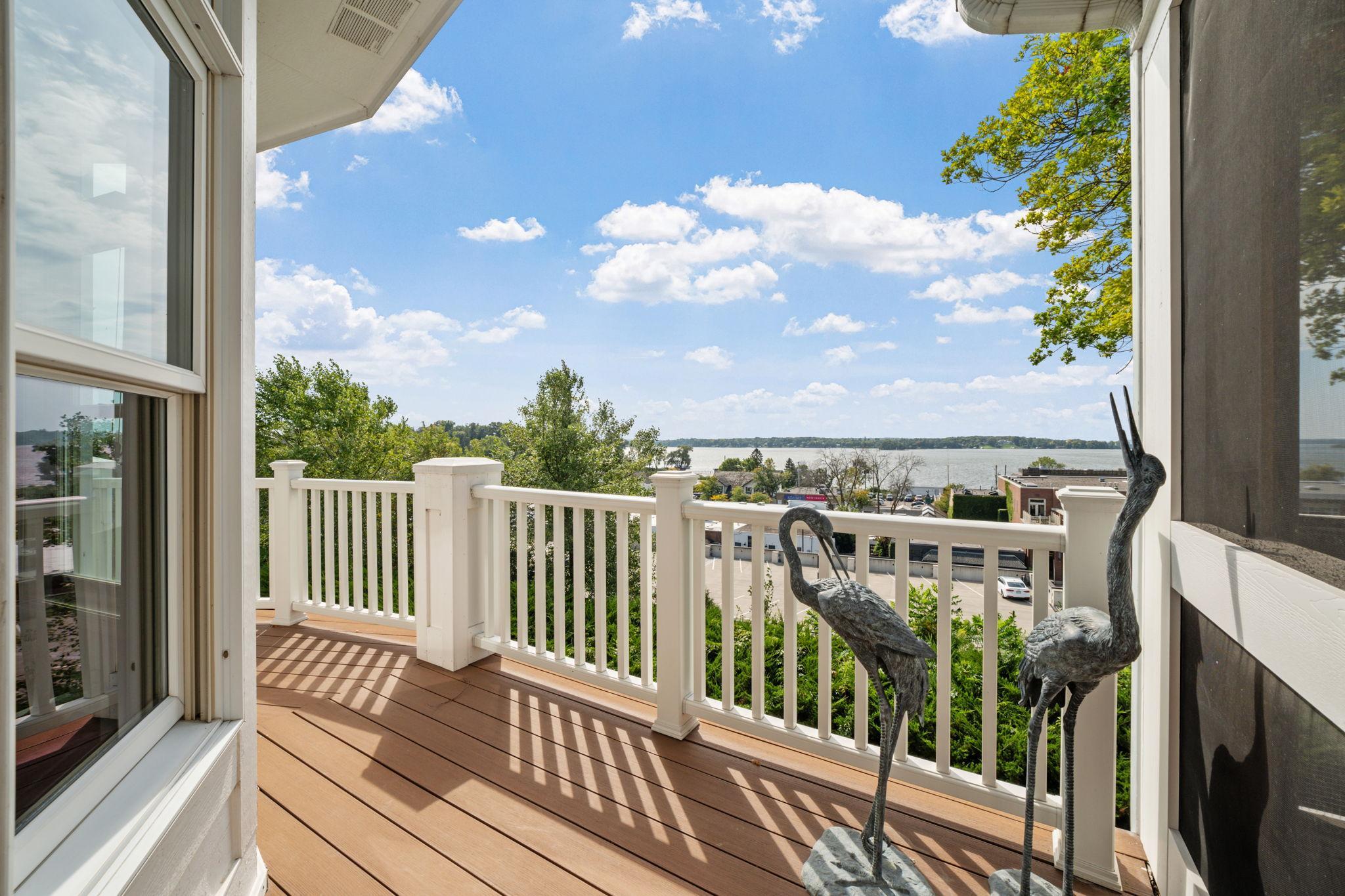 High on the hill where Rice Street meets Broadway, Wayzatas first classrooms once stood. The site evolved from simple schoolhouses to a distinctive Pueblo Revival building in 1921, remembered by generations as both Wayzata Consolidated High School and later Widsten Elementary. By the late 1980s, the schools era ended, and the property was transformed into something new: townhomes overlooking Wayzata Bay. What began as a center for education is now one of the citys most desirable residential enclaves. Today, these homes carry the legacy of the hill. The same sweeping views of the bay that once inspired students now define a lifestyle at the very top of Wayzataprivate, elevated, and deeply connected to the towns history.Wake up on the hill above downtown Wayzata with Lake Minnetonka framed right outside your windows. This is the sweet spot of Widsten Circle. Steps to coffee, restaurants, and the lake. Back home you get a warm, cedar-shake exterior, a covered front porch, and a floor plan that lives easy on two levels with big views and real privacy. Inside, light pours through bay windows across Saddle Black Walnut floors. The kitchen brings maple cabinetry fitted with roll-outs, workstation, full-height pantry, and a center island. The dining room connects cleanly to the living room where a gas fireplace with cultured stone and a reclaimed wood mantel anchors the space. Built-ins in rustic alder handle your media and display. A rounded bay takes in panoramic lake views and a full-glass door walks out to the screened porch and the wraparound balcony in the treetops. The primary suite sits quietly on the main level with vaulted ceilings, patio door to the porch, and a walk-in closet with custom organizers. The primary bath has room to exhale with a jetted tub on a tile deck, an oversized glass shower with bench, dual sinks, makeup counter, and linen storage. Main-level office with French doors and a bay window for focus. Main-level laundry with cabinets and sink. A proper half bath for guests. Downstairs, the lake views keep going. The family room is wide open for movie nights and game days with patio access to the lower terrace and shared green space. Bedroom two has water views and a walk-in. Bedroom three has French doors and a walk-in. There is a full bath, a flex room with a second kitchen for long-term guests or hobby time, and great storage. Outside, the lifestyle is ready to go. Maintenance-free wraparound balcony up top. Covered patio below. Beautiful mature trees, boulder walls, and a shared patio scene with a stone-wrapped wood-burning fireplace, pergolas, and garden beds. Finished and heated two-car garage with floor drain. Paver driveway. Cedar shake with brick accents for timeless curb appeal. This is the Wayzata walk-to-everything address that still feels like a retreat.