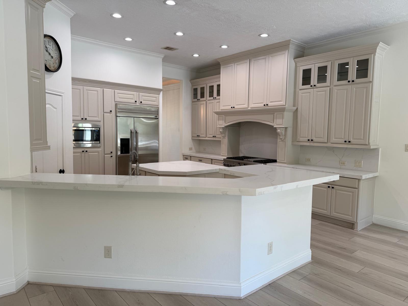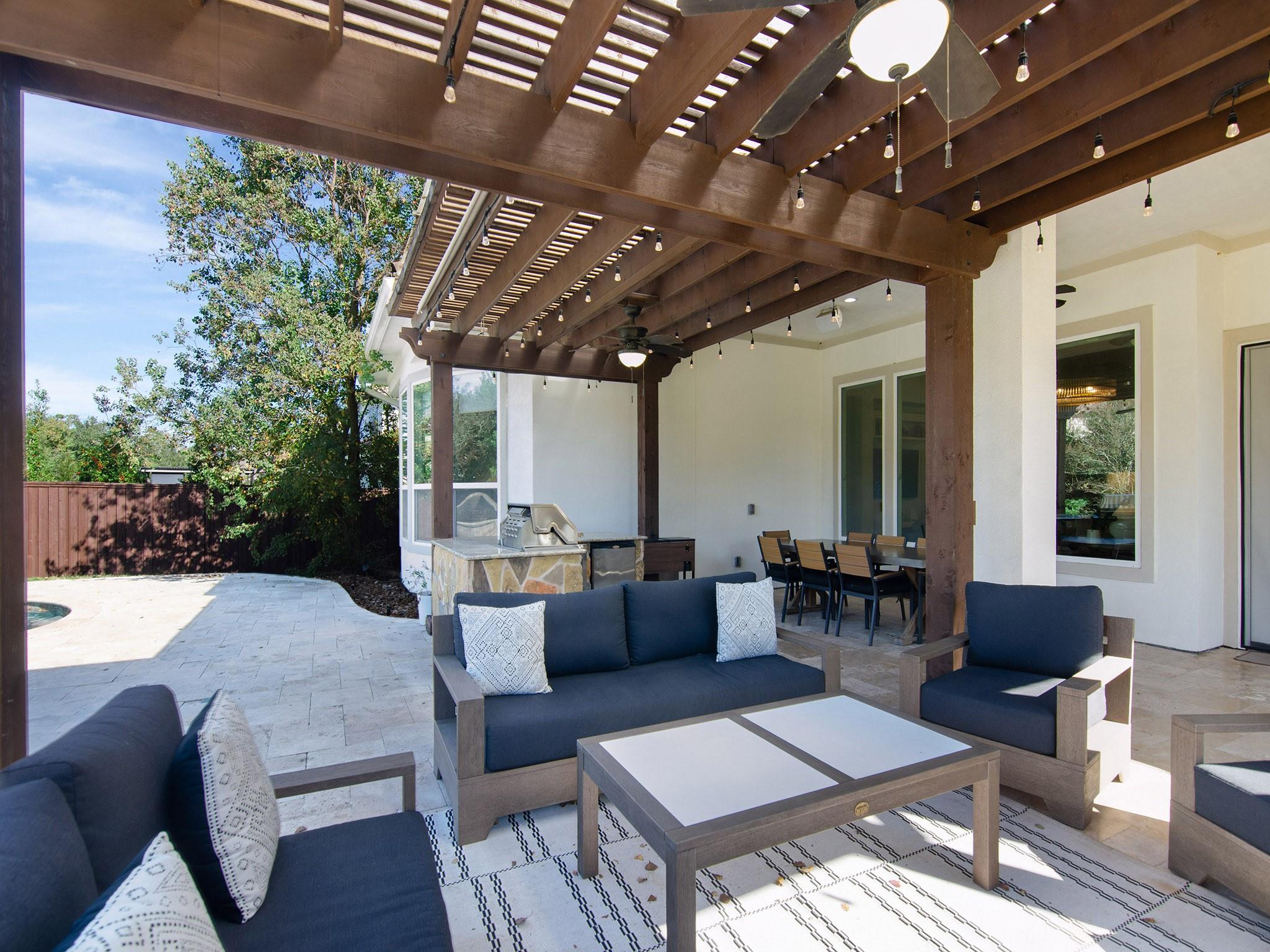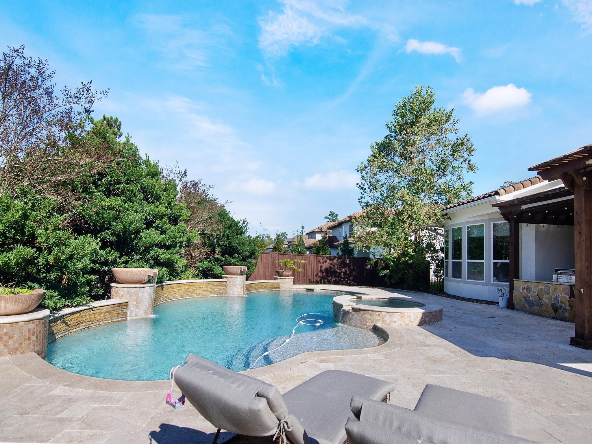 Beautifully remodeled one-story home in the heart of Memorial Bend, offering timeless charm and modern luxury. This 4-bedroom, 4-bath residence features 3,458 sq. ft. of living space on an expansive 20,177 sq. ft. (.46 acre) lot surrounded by mature trees. Designed for entertaining, the home offers three spacious living areas, an oversized dining room, and three patios, including one with a fully equipped outdoor kitchen. The chefs kitchen features quartz countertops, soft-close cabinetry, under-cabinet lighting, and Wolf red knob appliances. Major updates include PEX plumbing (2007/2008), roof (2024), tankless water heater (2025), new driveway (2025), and rear suite AC (2025). Noise-reducing windows installed in primary and guest suites (2026) with additional windows scheduled for secondary bedroom, study, and dining (March 2026). Minutes to I-10, Beltway 8, CityCentre, Terry Hershey Park and other premier dining, shopping and entertainment. Schedule your showing today!