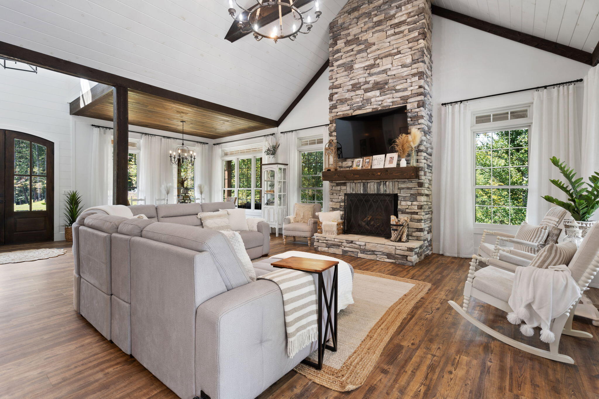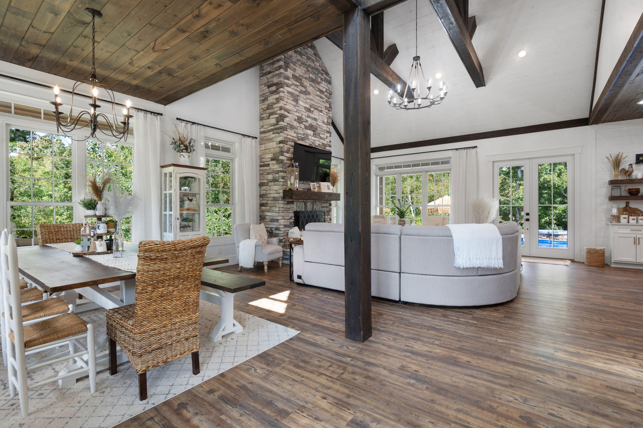 Off-grid custom-built modern farmhouse on 53 acres. No electric bills here! This exquisite estate nestled in the woods is powered with solar panels (not visible from the house) with a backup propane generator. A modern (22,000) outdoor wood furnace heats the house, the hot water, and the hot tub. The home also has a propane tankless hot water heater that is secondary or backup to the outdoor wood furnace. This property has a secondary geothermal heat system that would only need to be used as a heating source if not utilizing the outdoor wood furnace. The primary cooling is the geothermal system. No expenses were spared as blown foam insulation was used to encapsulate from the walk in crawl space (that seems more like a basement) to the rooftop. A 10,000 water purification system provides clean and tasteful well water. The amazing backyard retreat will be an escape for the new homeowner with an in-ground salt-water lagoon style pool with a sun shelf with two in-pool loungers and a diving board. The salt-water hot tub wrapped in stacked stone cascades into the pool for a peaceful and relaxing sight and sound. A hand-held remote can control the pool and hot tub lighting, heat to the hot tub, and hot tub jets. Many windows with transoms were utilized for an optimal view of the backyard oasis from the dining, living, kitchen, office, and master bedroom. North Mouse Creek is visible from the wrap around porch and from other areas on the 53 acres. Buyers will love the long (approx. 1200) driveway through the woods leading to this private retreat. This 4 bedroom, 3 bath home will be one you never want to leave! Your guests will notice the custom touches in every room including the tongue and groove ceiling on the wrap around porch; cedar wrapped beams; custom made shutters; shiplap in several rooms; feature walls; and cathedral ceiling with decorative beams in the living room. The kitchen features a large island with quartz countertops with seating for 5, a farmhouse sink in the island, brick backsplash, custom cabinets, an antique pantry door, copper handles and knobs on the wifi programmable stainless appliances, gas stove with double oven, and a built-in microwave that doubles as an additional oven. The large master on the main has a tray ceiling with tongue and groove and a custom barn door leading to the en-suite bath with a claw foot tub, double vanities, pantry, and a walk in tile shower with a rain head and a wall mounted hand held sprayer. Other features include board and batten siding, metal roof, cupola with weathervane, gas fireplace with floor to ceiling stacked stone, gutter guards, and cordless woven window shades (with a wall remote for the shade over the claw foot tub).No storage issues here with 3 walk in closets, a walk in crawl space (that feels more like a basement with lighting and electrical outlets), walk-in attic storage with a full size door and lighting, a 3 bay metal shed that resembles a barn 35 wide x 25 deep, and a double garage with a garage closet. Jump on the ATV for a short ride and youll find a double carport and solar panels not visible from the house. You will love the many wildlife that are seen regularly on the property including deer and turkey. There are two hunting stands on the property that will convey. Conveniently located 10 minutes to Cleveland, 30 minutes to Chattanooga, and one hour to Knoxville (approximately). Property currently has a greenbelt classification. Do not trespass property without appointment. Advanced notice required. Live cameras on driveway and all over the acreage. Proof of cash funds and government issued ID required to schedule an appointment. Seller is a TN licensed real estate agent. Owner/Agent.