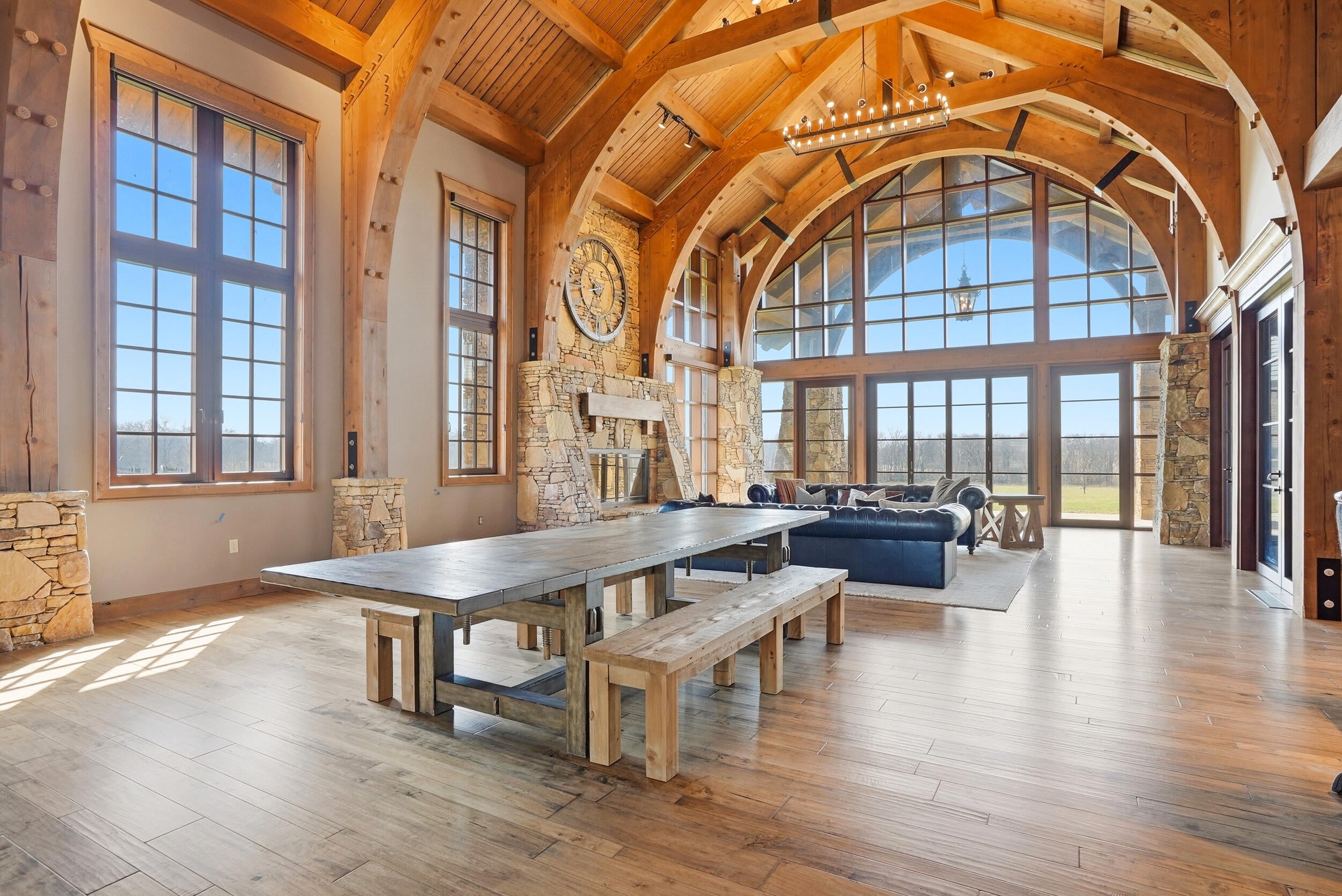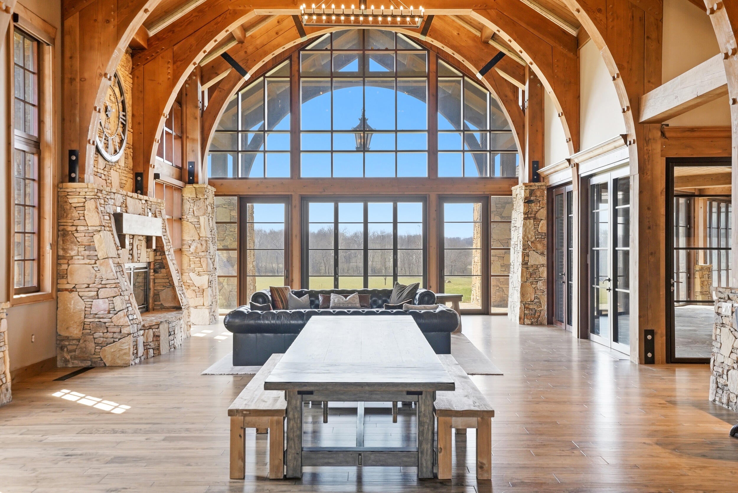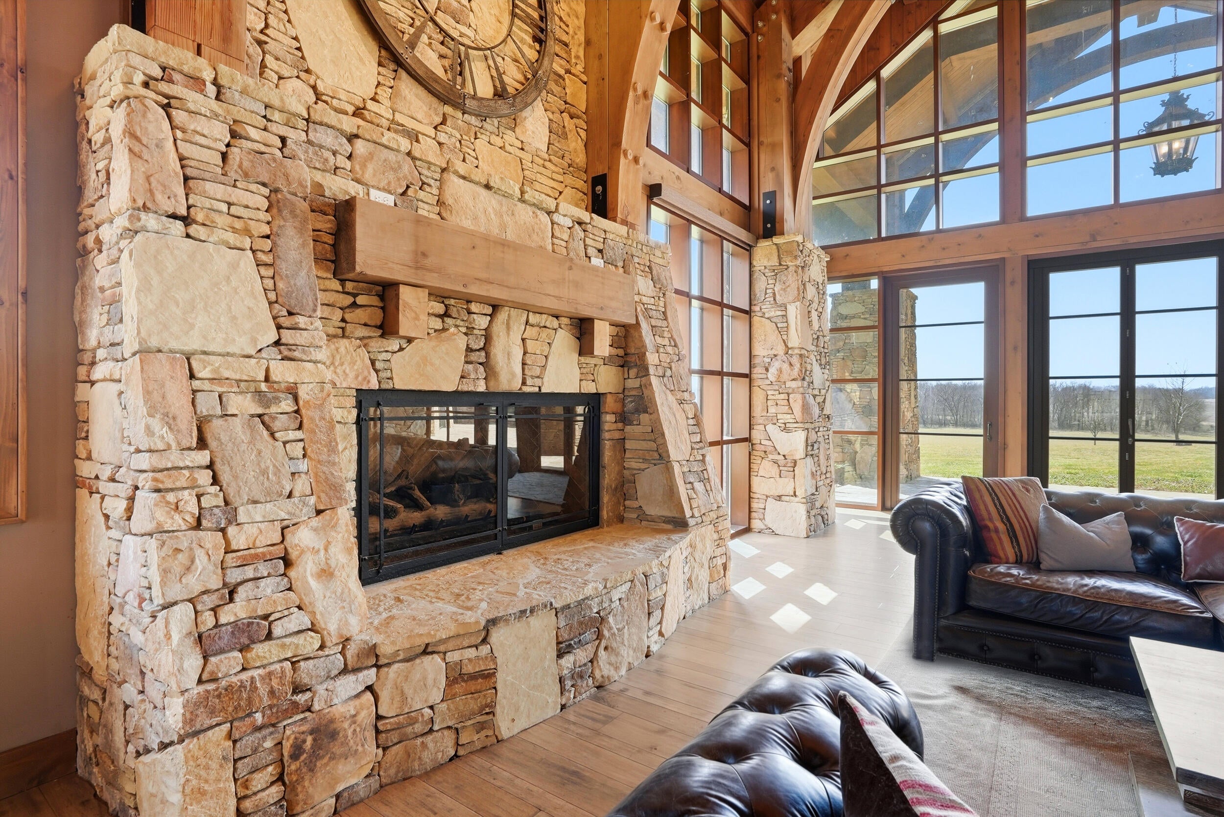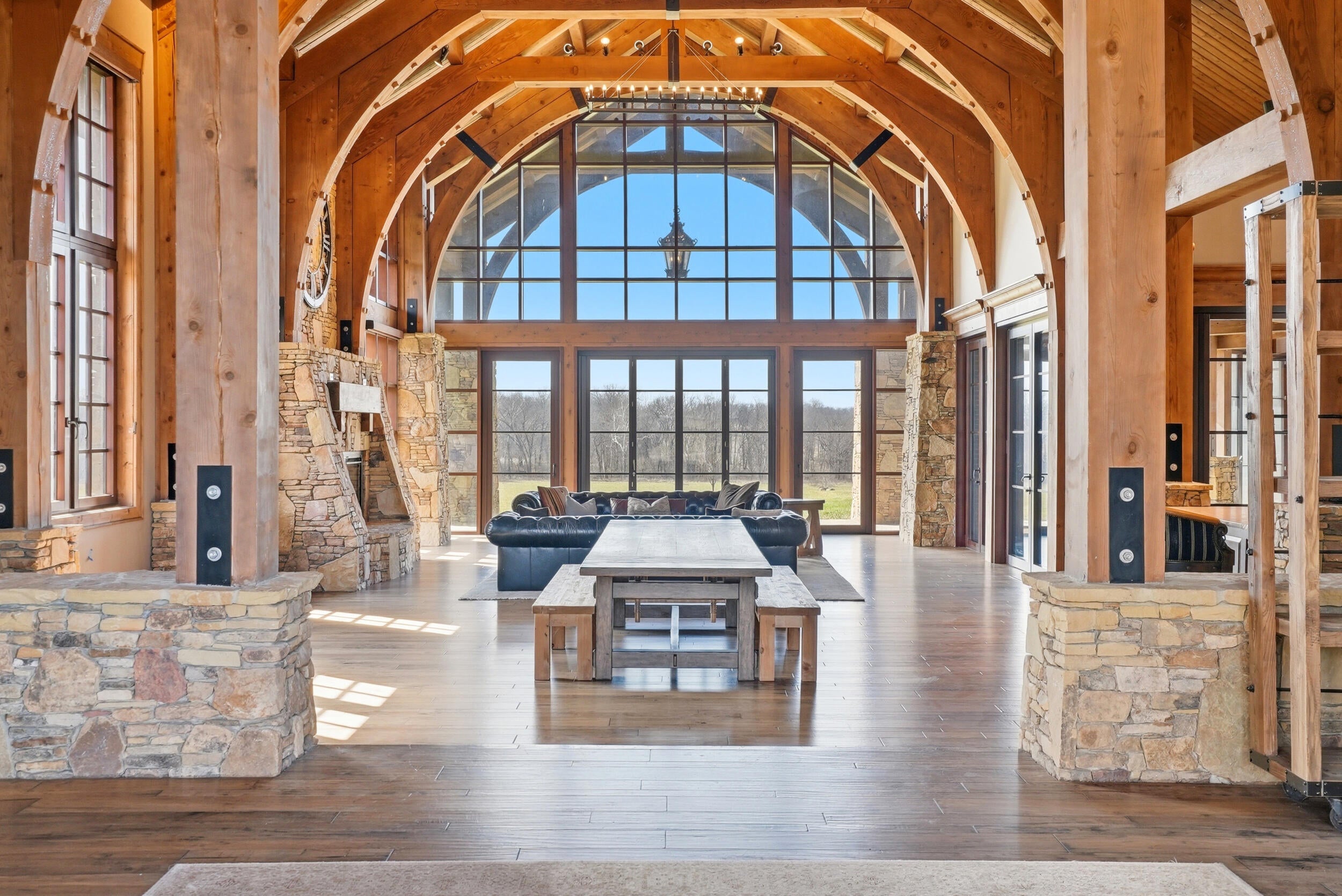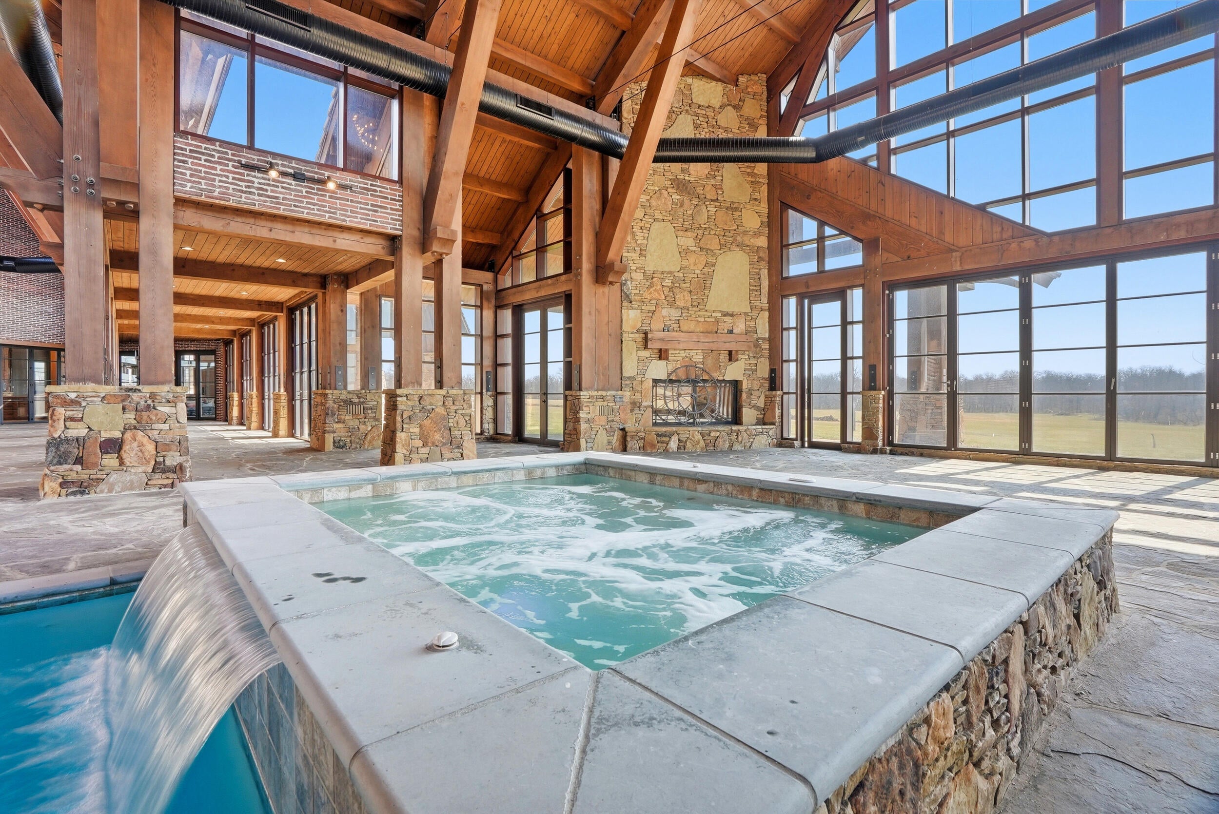 Set on 16 private acres, this custom estate blends refined luxury with breathtaking architectural detail. Designed by Brad Norris, it offers 5 bedrooms, 8 baths, dual living areas, an 8-car garage, and soaring timber-framed ceilings. Expansive Unilux windows capture sweeping views, while the grand kitchen--with top-tier appliances and a large pantry--opens to the spectacular indoor geothermal-heated pool pavilion featuring stone, timber, abundant natural light, and a full wet bar. The primary suite boasts a gorgeous walk-in closet, and the property includes hardwood floors, quartz surfaces, and a custom outdoor basketball court, all just minutes from downtown Columbia and Mizzou. Buyer to verify all measurements.