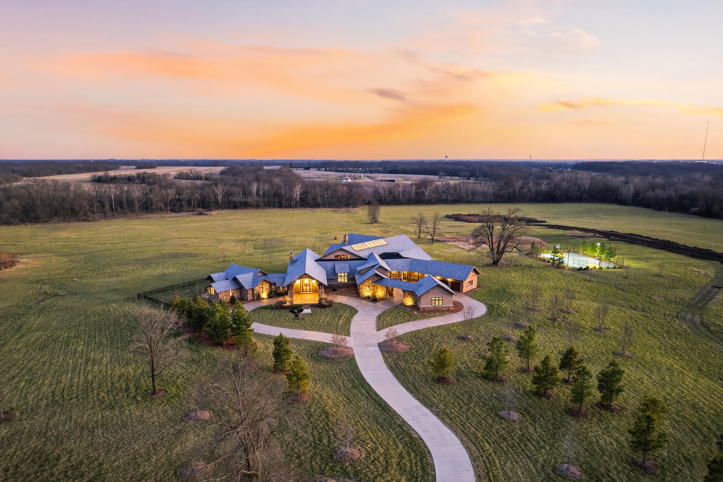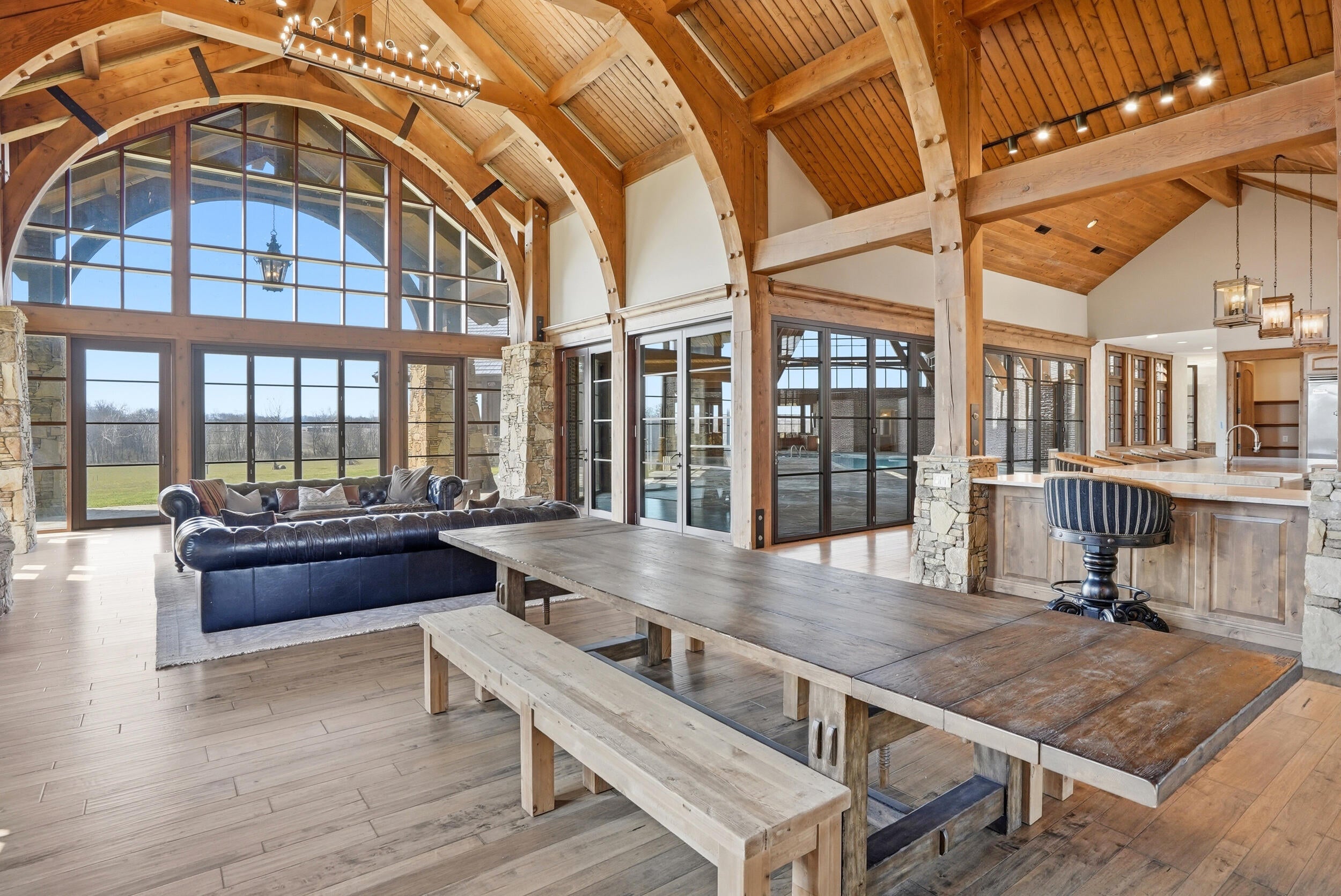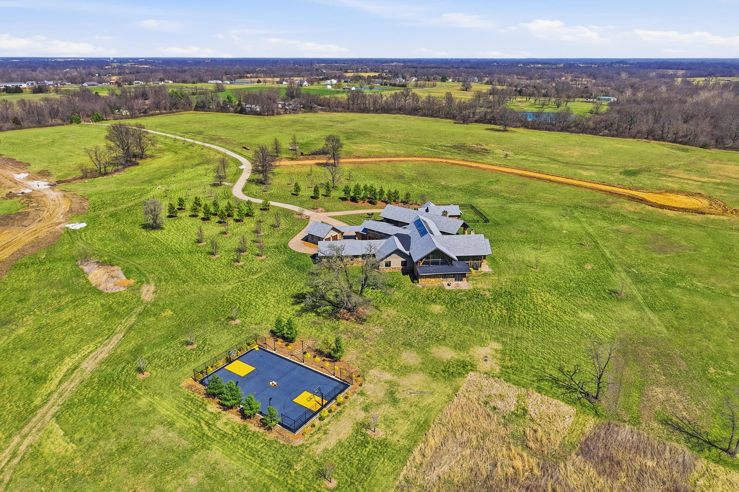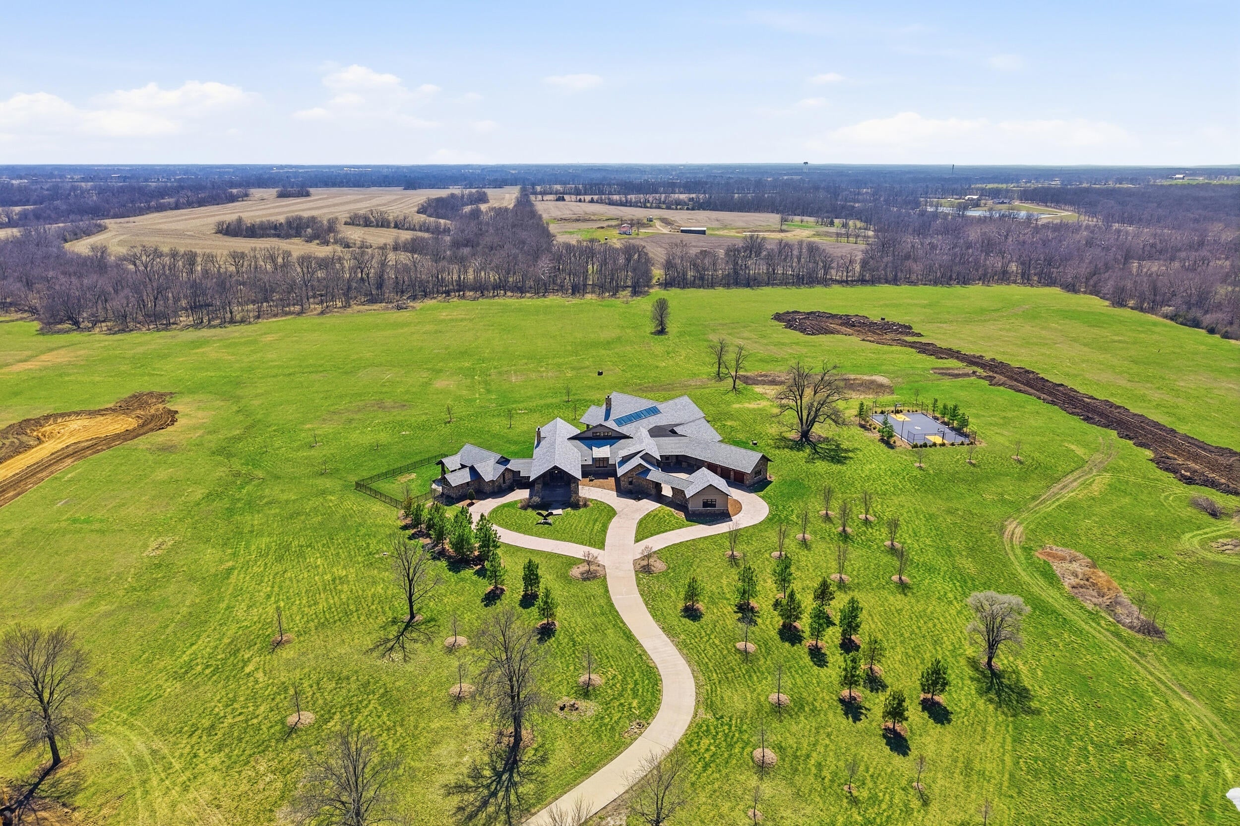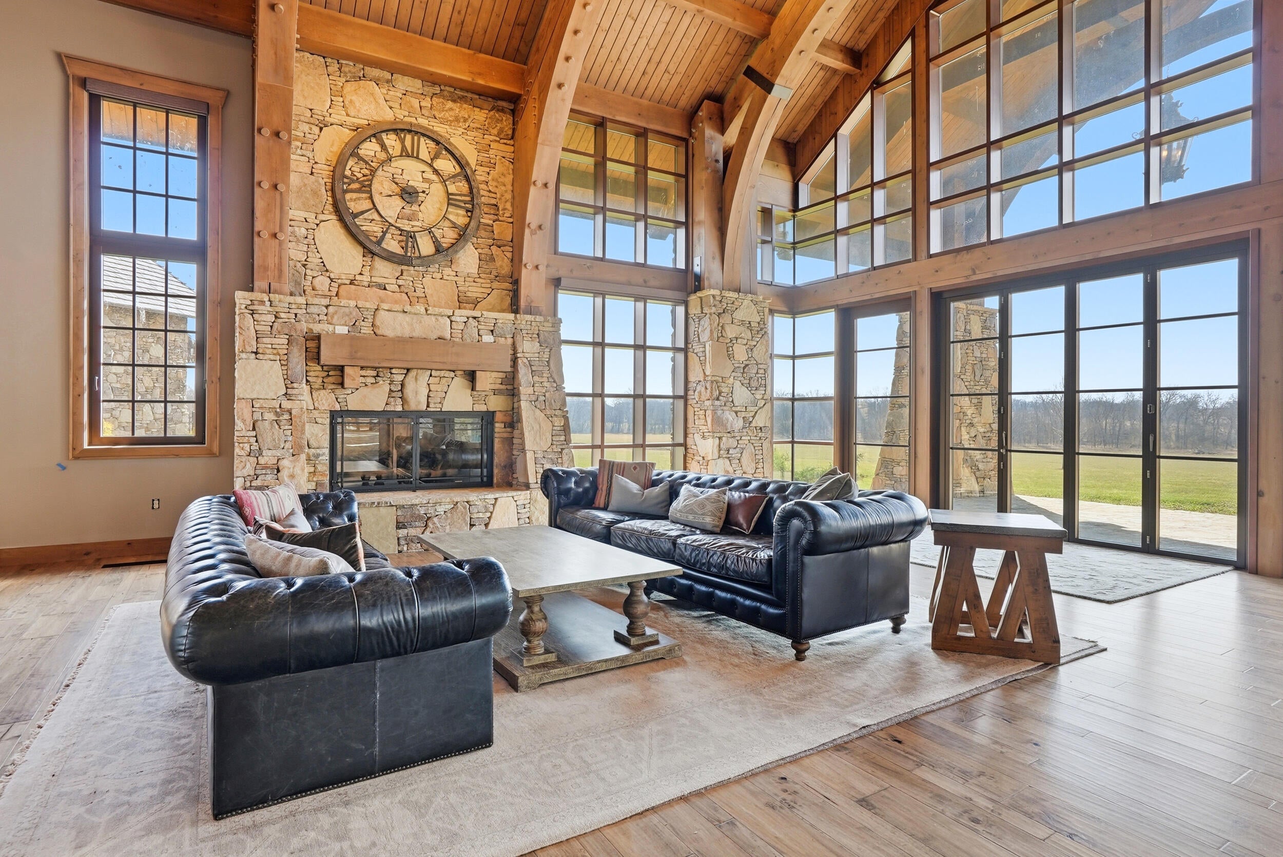 Set on 16 private acres, this custom estate blends refined luxury with breathtaking architectural detail. Designed by Brad Norris, it offers 5 bedrooms, 8 baths, dual living areas, an 8-car garage, and soaring timber-framed ceilings. Expansive Unilux windows capture sweeping views, while the grand kitchen--with top-tier appliances and a large pantry--opens to the spectacular indoor geothermal-heated pool pavilion featuring stone, timber, abundant natural light, and a full wet bar. The primary suite boasts a gorgeous walk-in closet, and the property includes hardwood floors, quartz surfaces, and a custom outdoor basketball court, all just minutes from downtown Columbia and Mizzou. Buyer to verify all measurements.