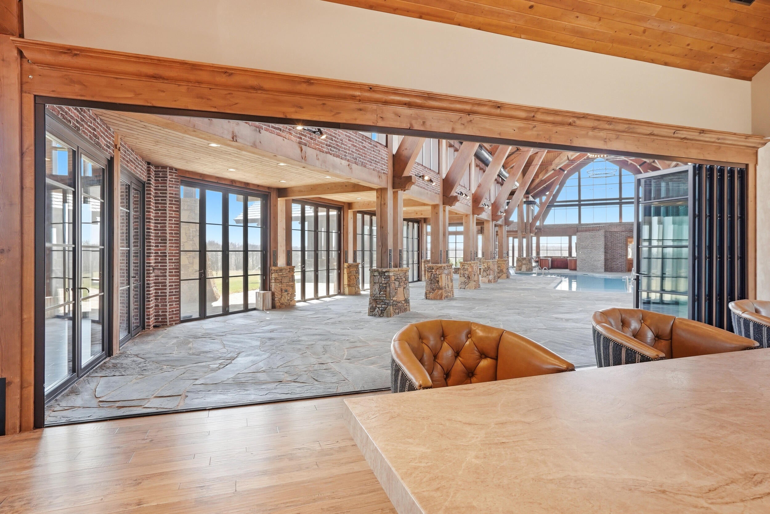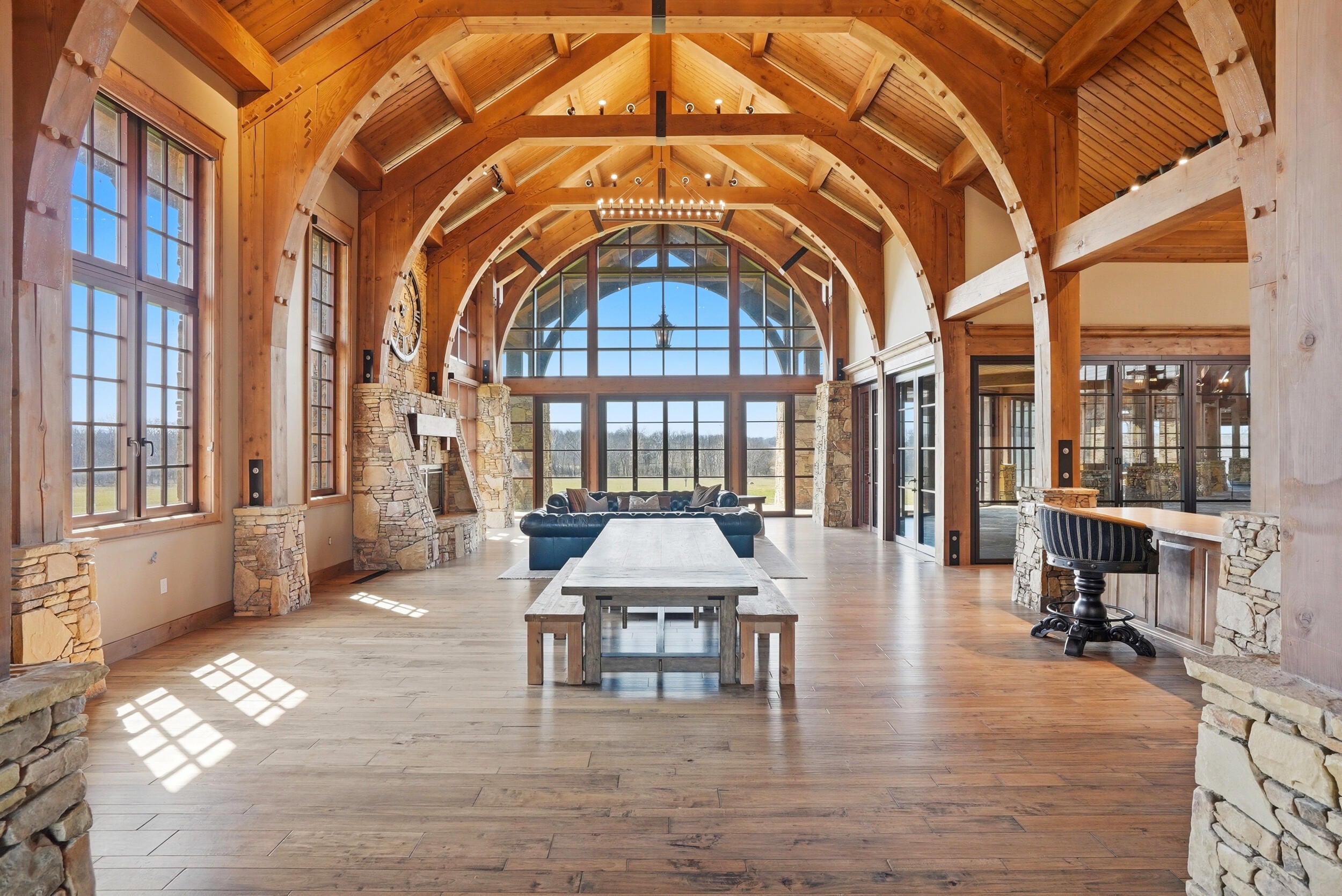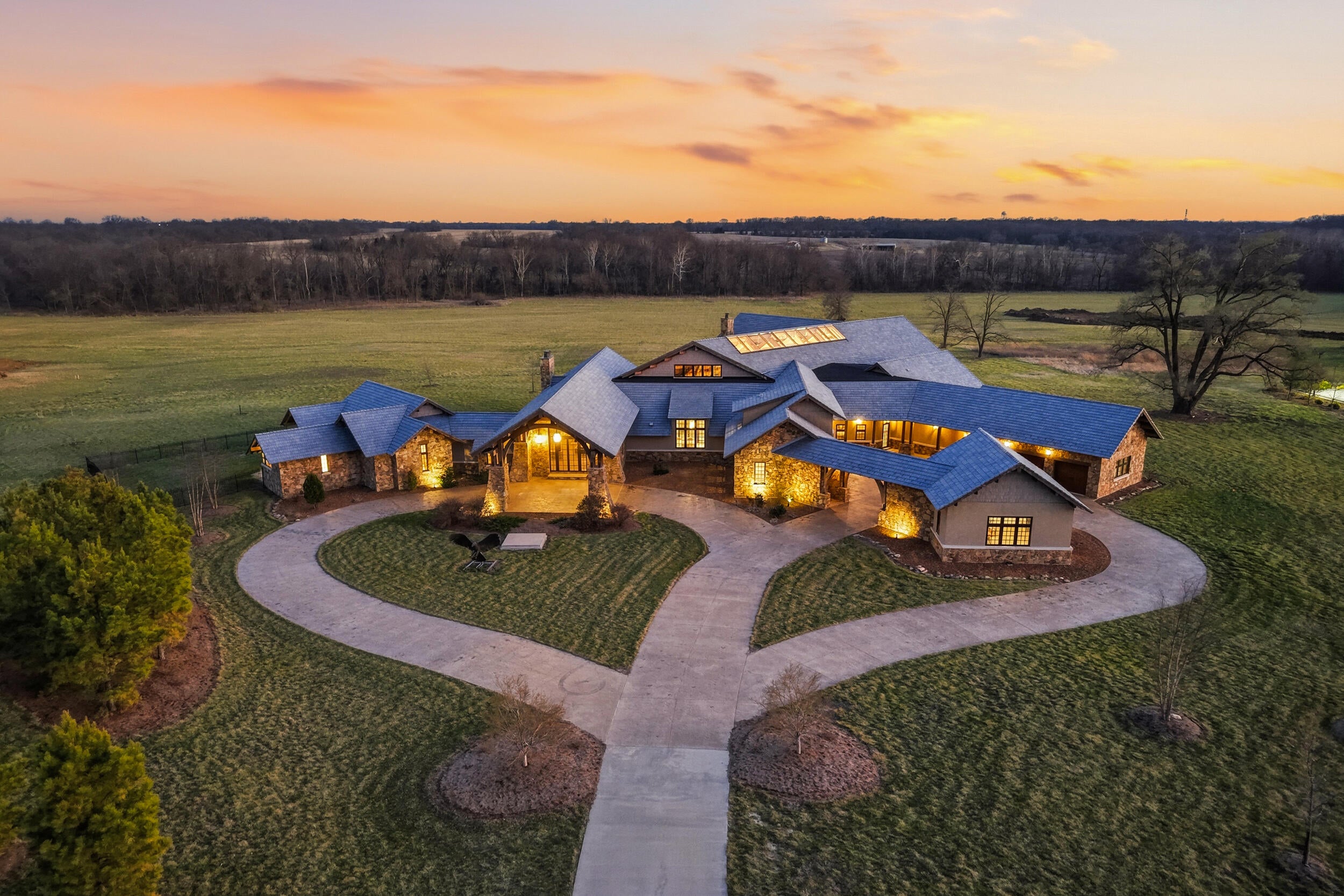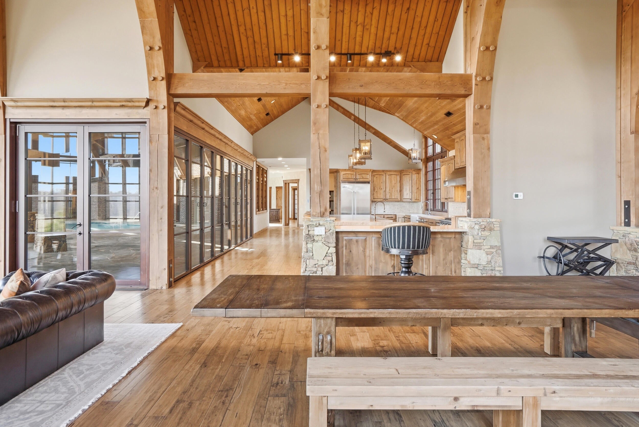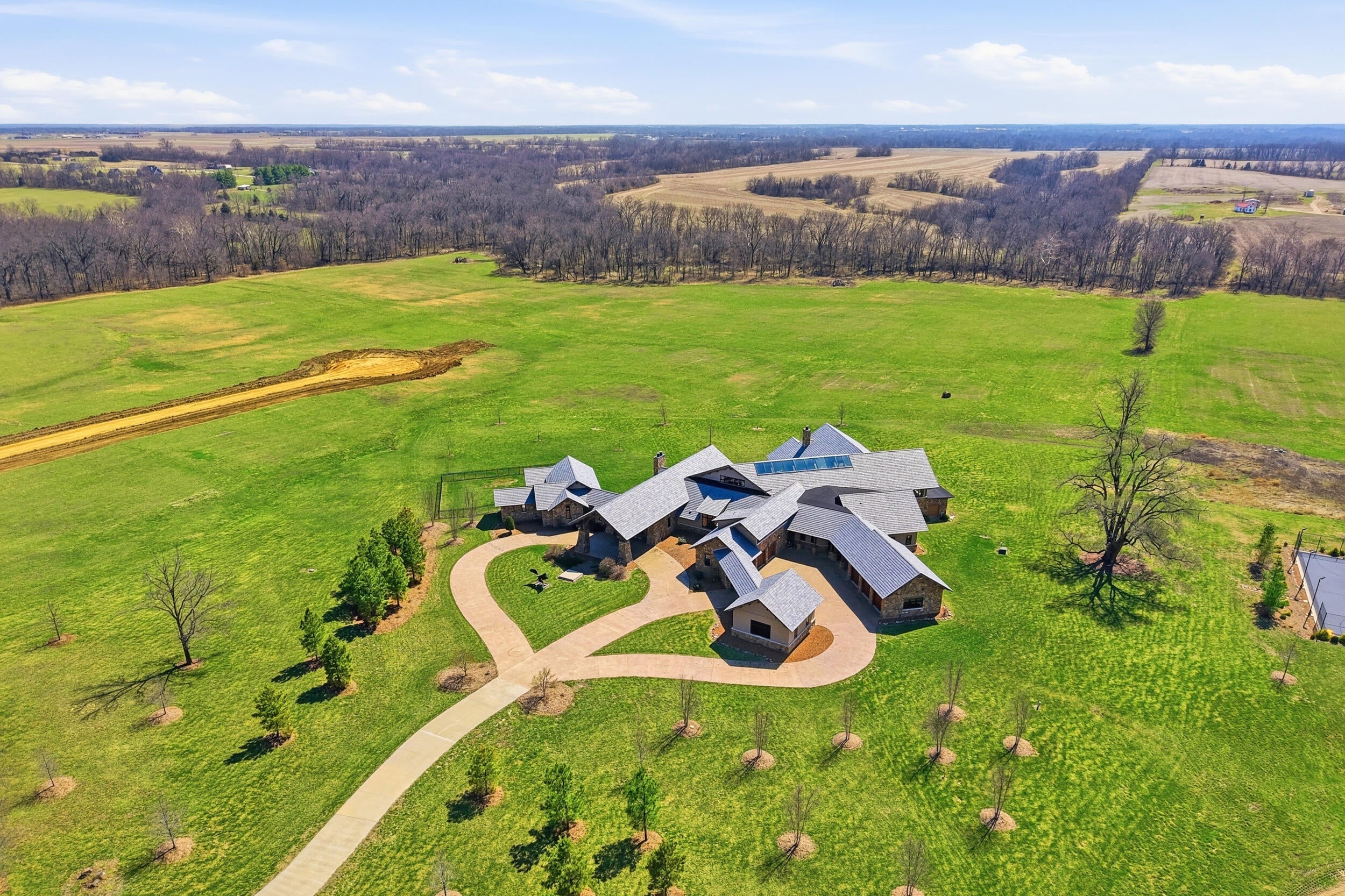 Set on 16 private acres, this custom estate blends refined luxury with breathtaking architectural detail. Designed by Brad Norris, it offers 5 bedrooms, 8 baths, dual living areas, an 8-car garage, and soaring timber-framed ceilings. Expansive Unilux windows capture sweeping views, while the grand kitchen--with top-tier appliances and a large pantry--opens to the spectacular indoor geothermal-heated pool pavilion featuring stone, timber, abundant natural light, and a full wet bar. The primary suite boasts a gorgeous walk-in closet, and the property includes hardwood floors, quartz surfaces, and a custom outdoor basketball court, all just minutes from downtown Columbia and Mizzou. Buyer to verify all measurements.