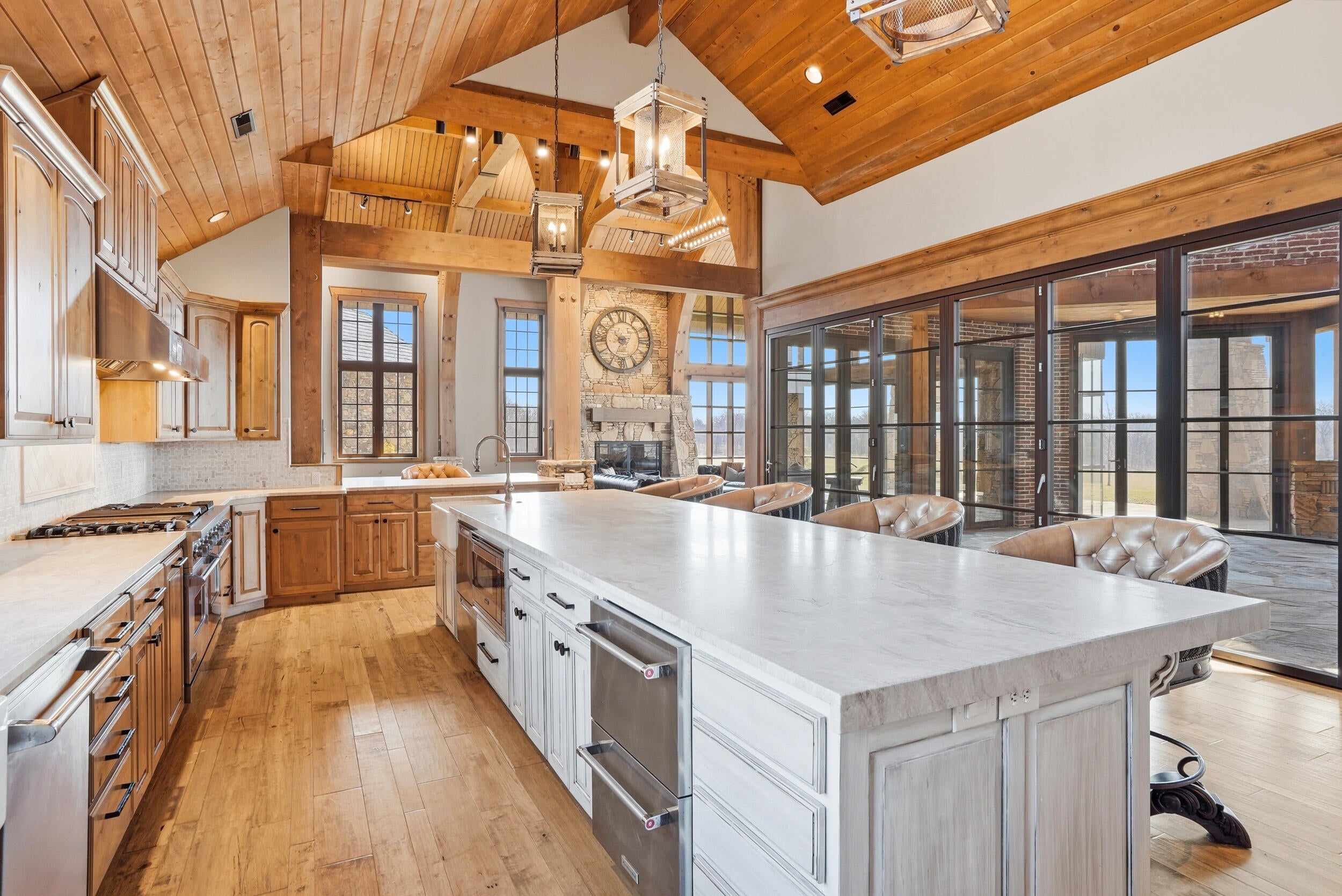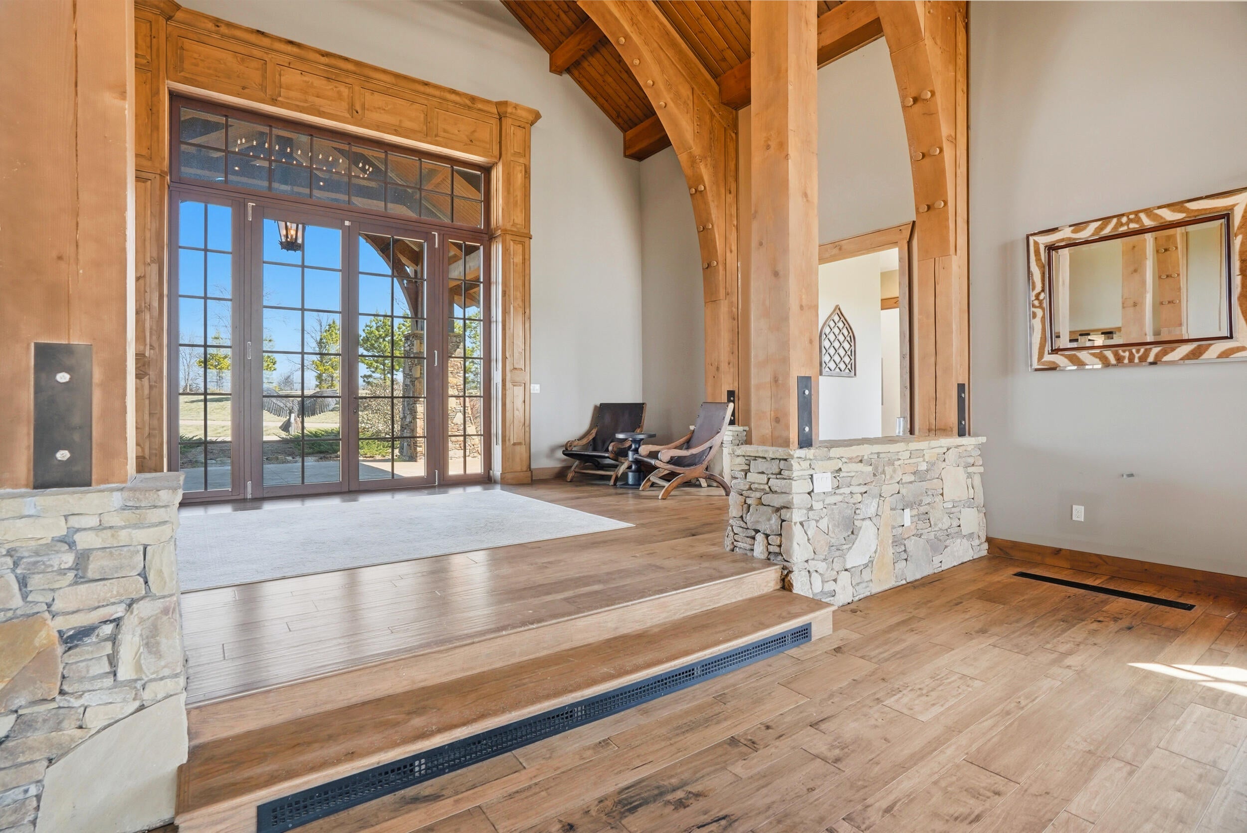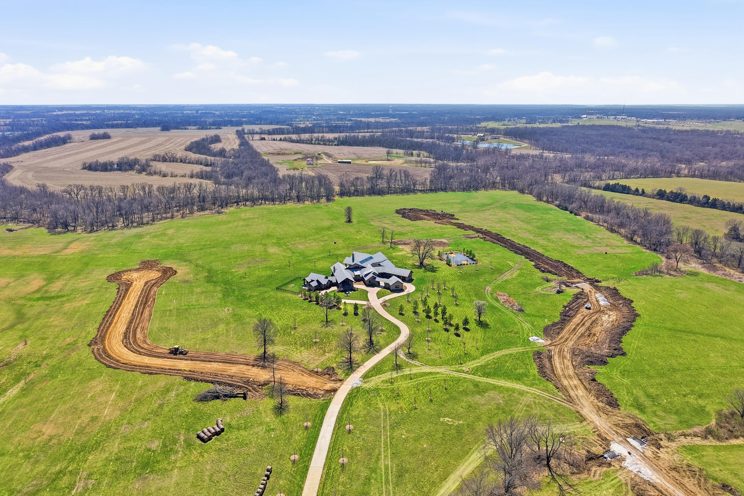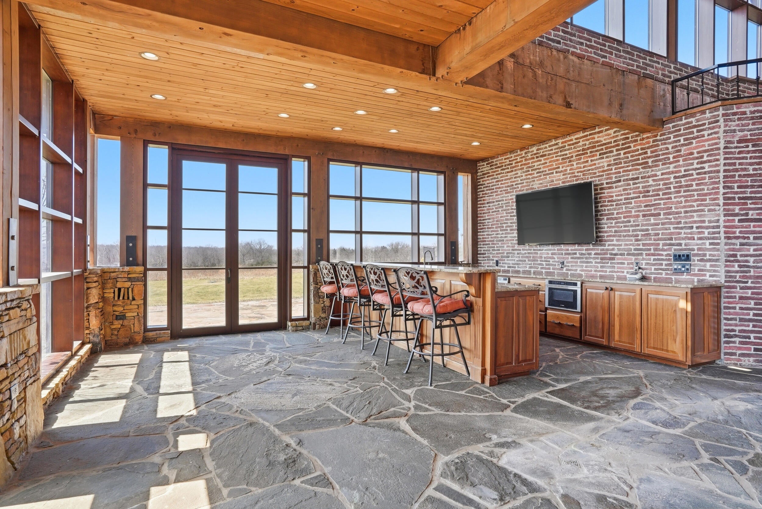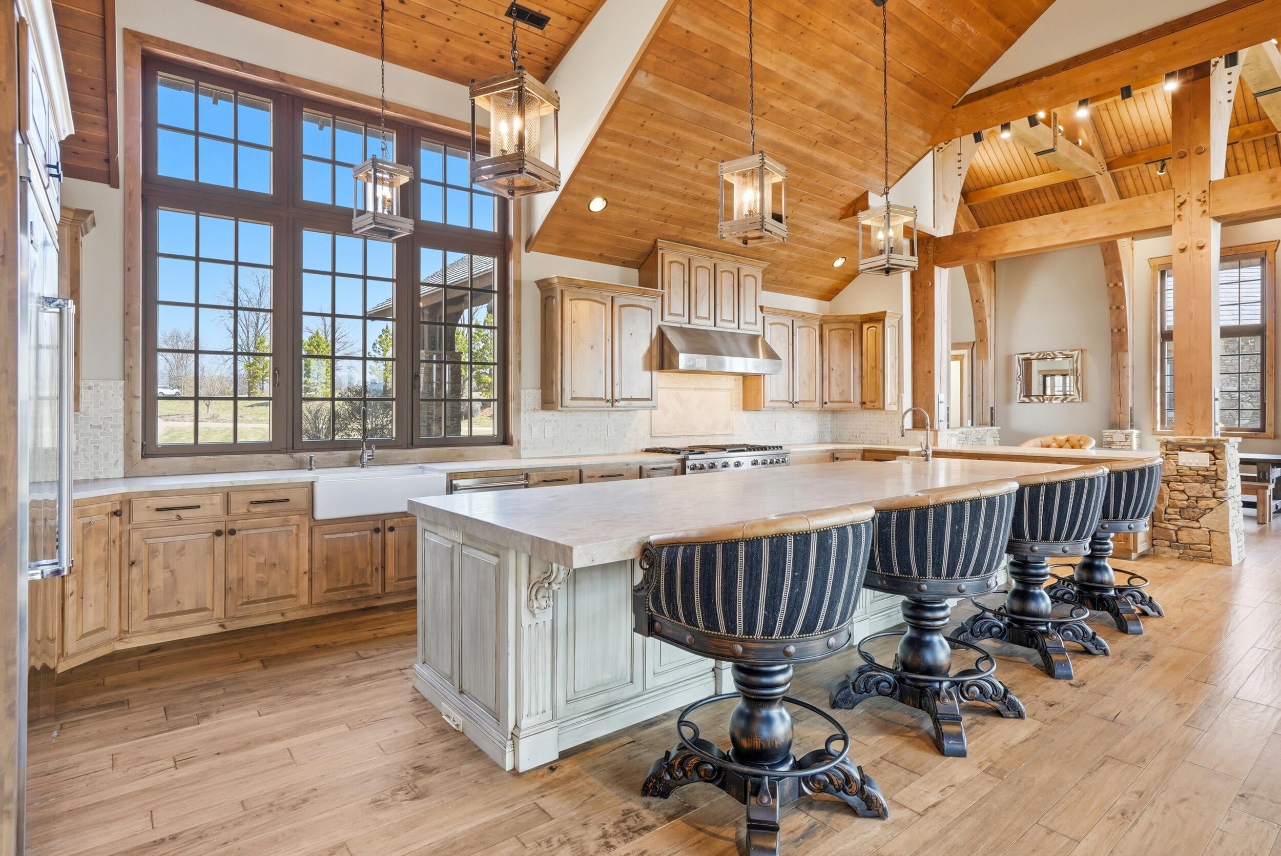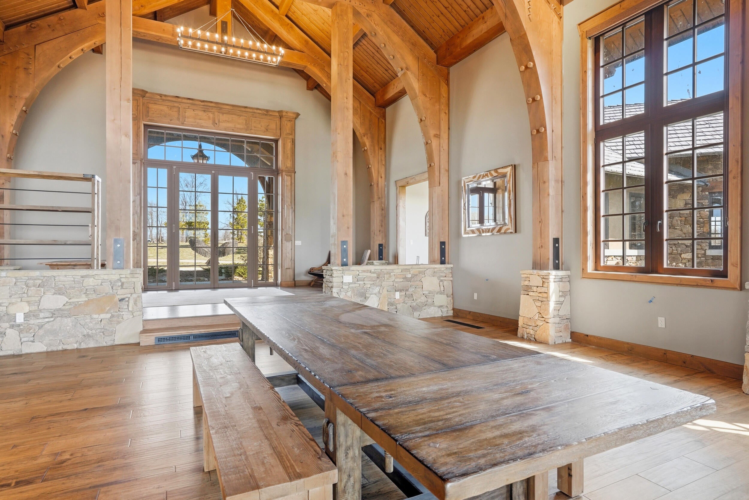 Set on 16 private acres, this custom estate blends refined luxury with breathtaking architectural detail. Designed by Brad Norris, it offers 5 bedrooms, 8 baths, dual living areas, an 8-car garage, and soaring timber-framed ceilings. Expansive Unilux windows capture sweeping views, while the grand kitchen--with top-tier appliances and a large pantry--opens to the spectacular indoor geothermal-heated pool pavilion featuring stone, timber, abundant natural light, and a full wet bar. The primary suite boasts a gorgeous walk-in closet, and the property includes hardwood floors, quartz surfaces, and a custom outdoor basketball court, all just minutes from downtown Columbia and Mizzou. Buyer to verify all measurements.