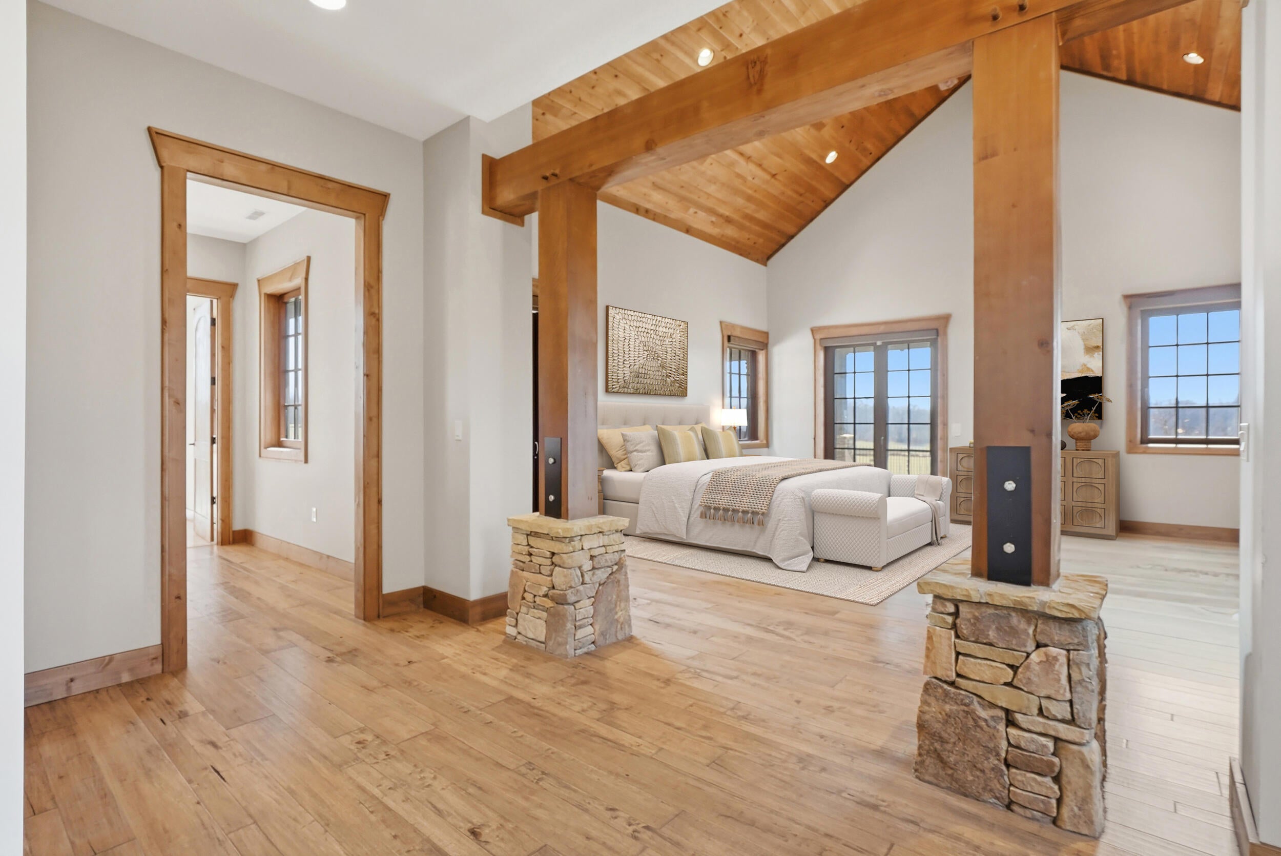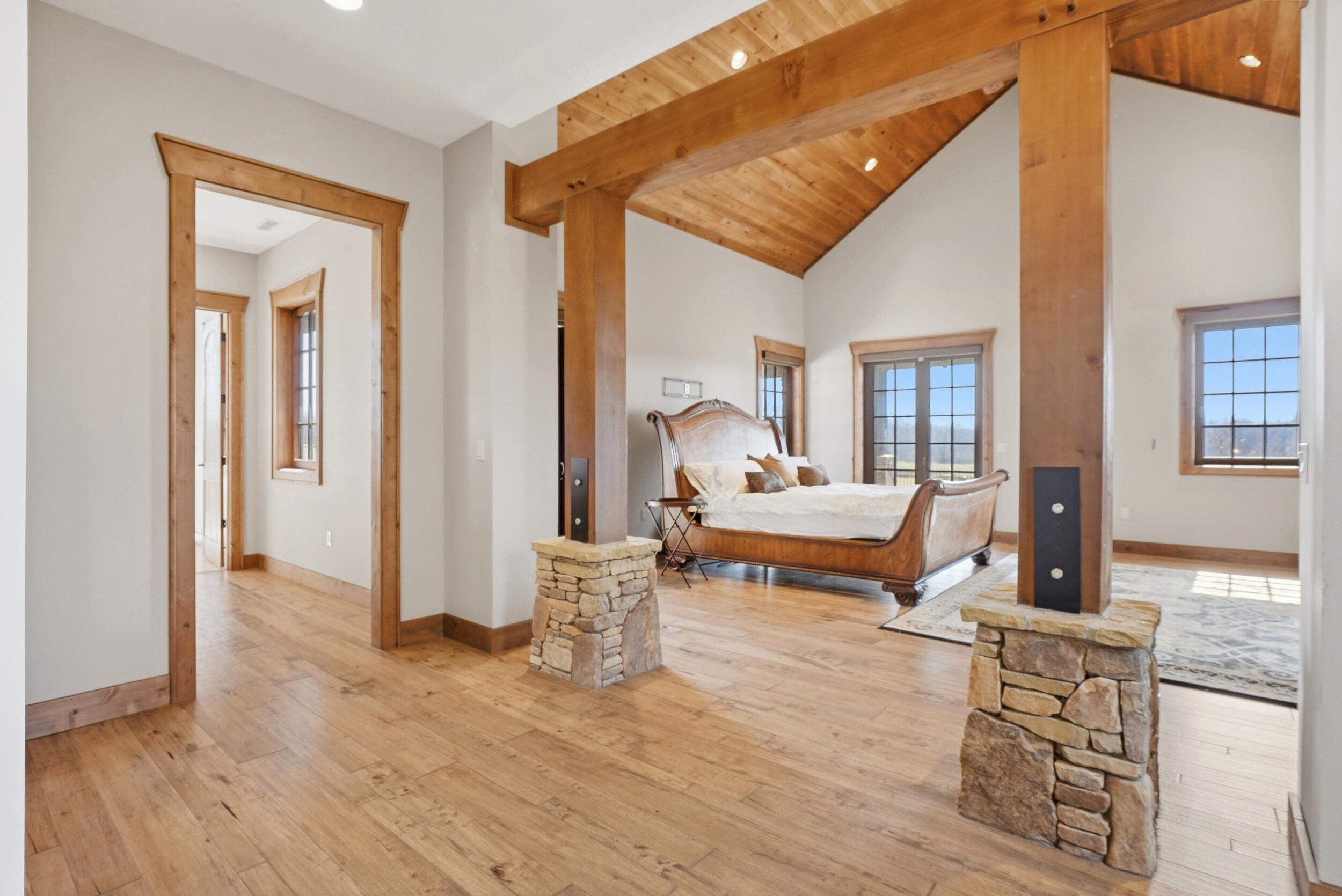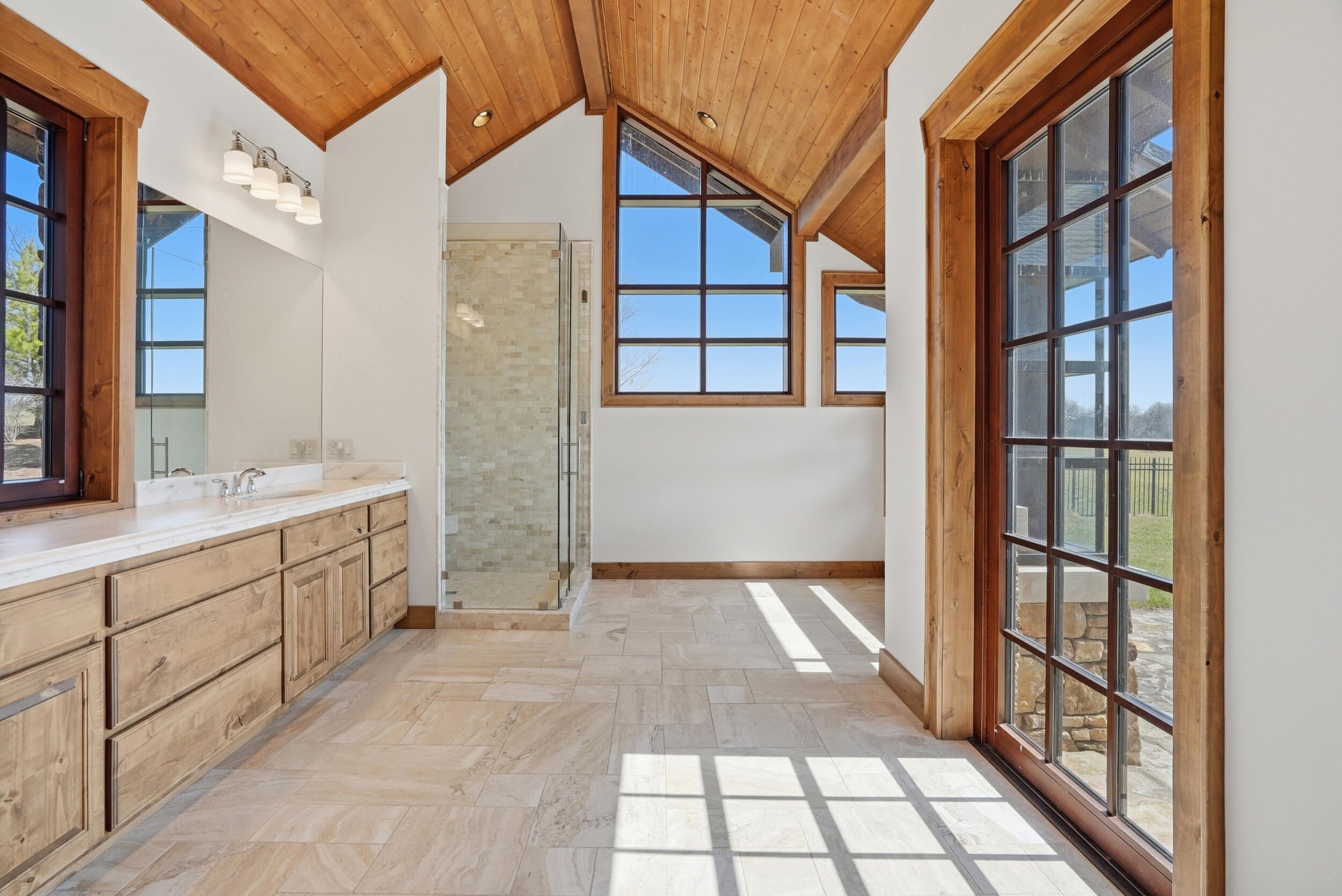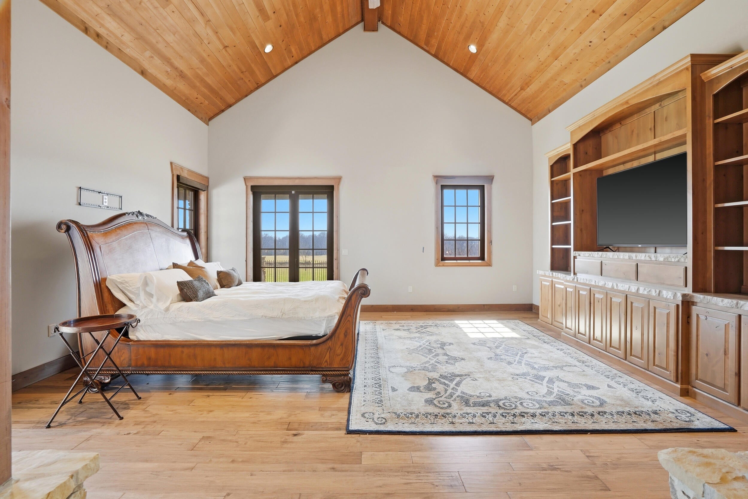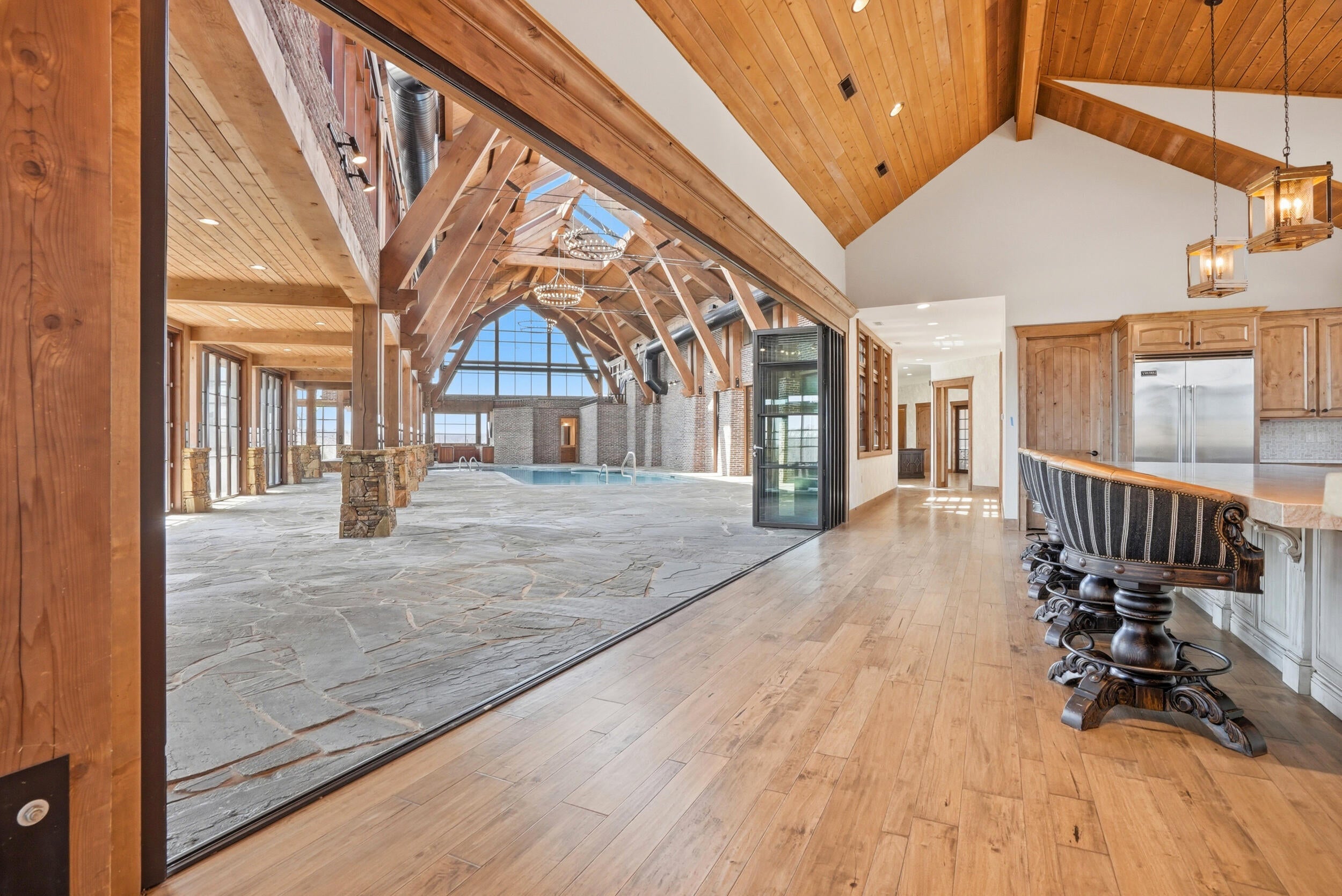 Set on 16 private acres, this custom estate blends refined luxury with breathtaking architectural detail. Designed by Brad Norris, it offers 5 bedrooms, 8 baths, dual living areas, an 8-car garage, and soaring timber-framed ceilings. Expansive Unilux windows capture sweeping views, while the grand kitchen--with top-tier appliances and a large pantry--opens to the spectacular indoor geothermal-heated pool pavilion featuring stone, timber, abundant natural light, and a full wet bar. The primary suite boasts a gorgeous walk-in closet, and the property includes hardwood floors, quartz surfaces, and a custom outdoor basketball court, all just minutes from downtown Columbia and Mizzou. Buyer to verify all measurements.